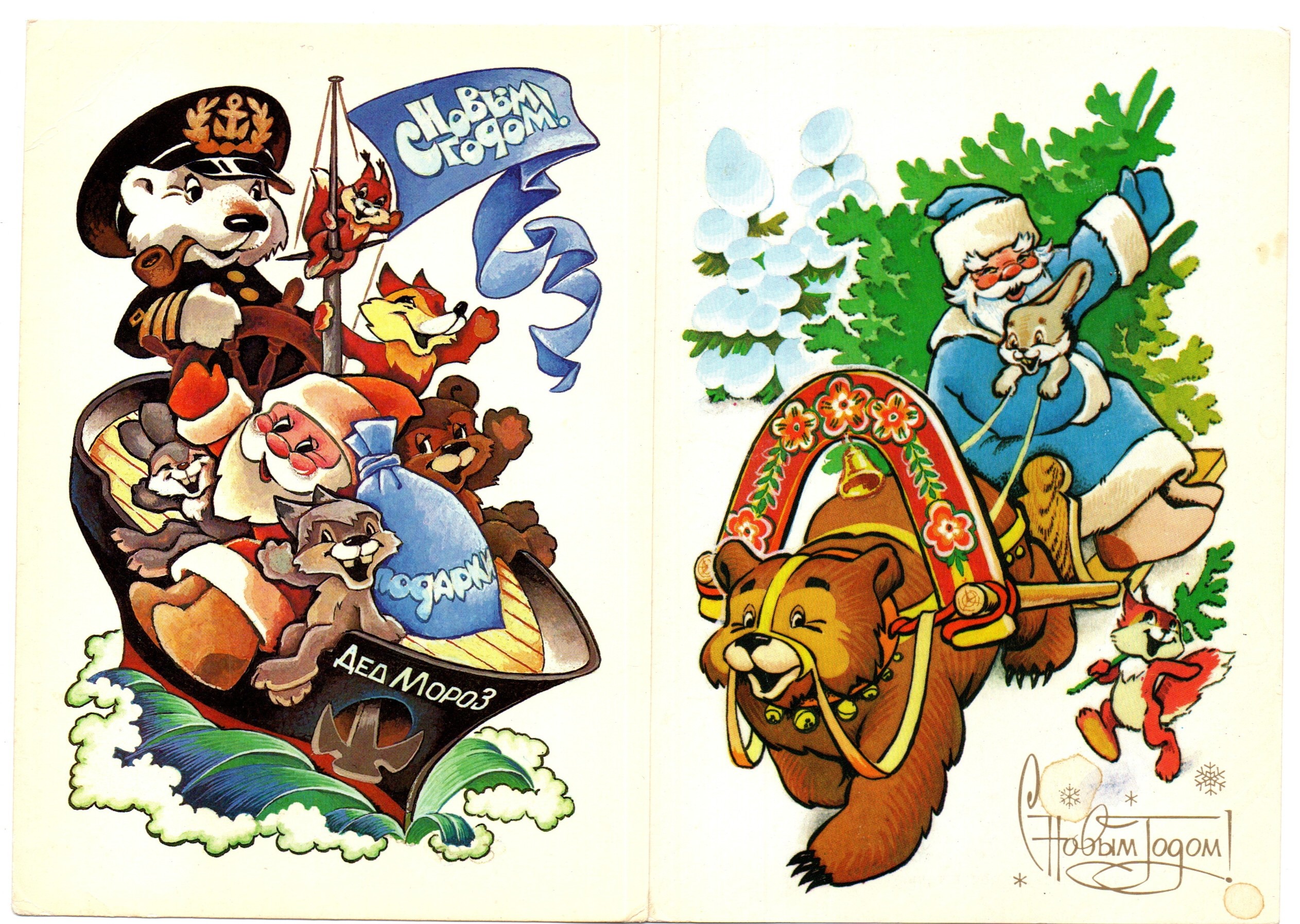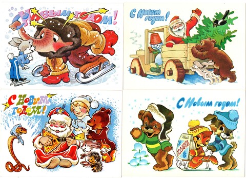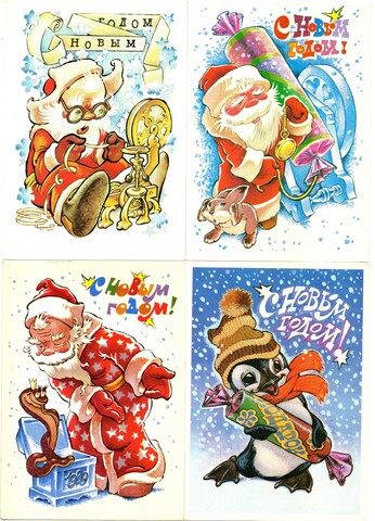 Подборка поздравительных Новогодних открыток — 10 штук— художник В. Четвериков —чистые, без повторов, времен СССР