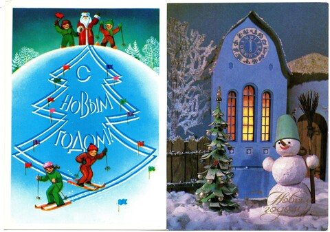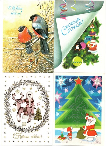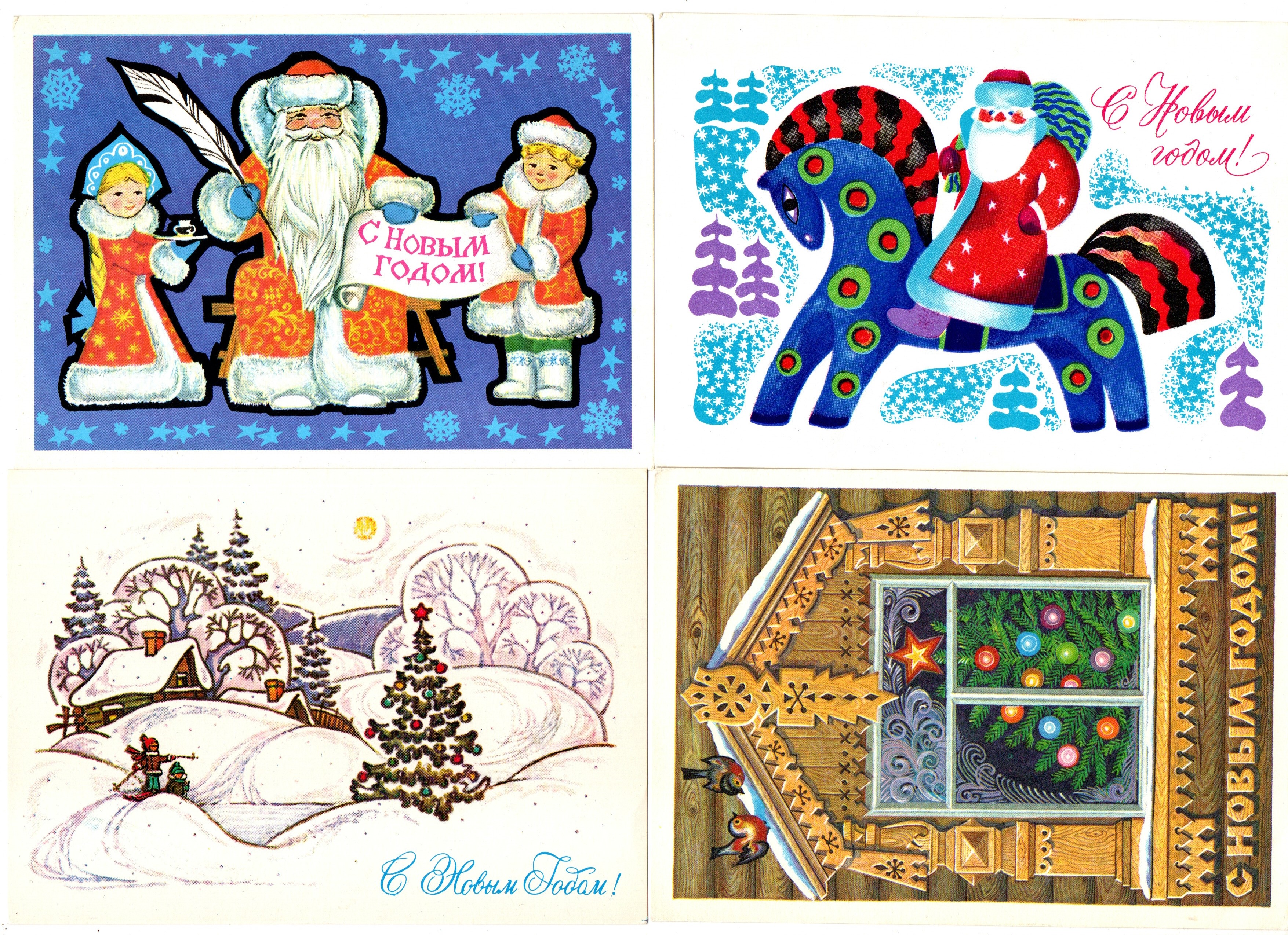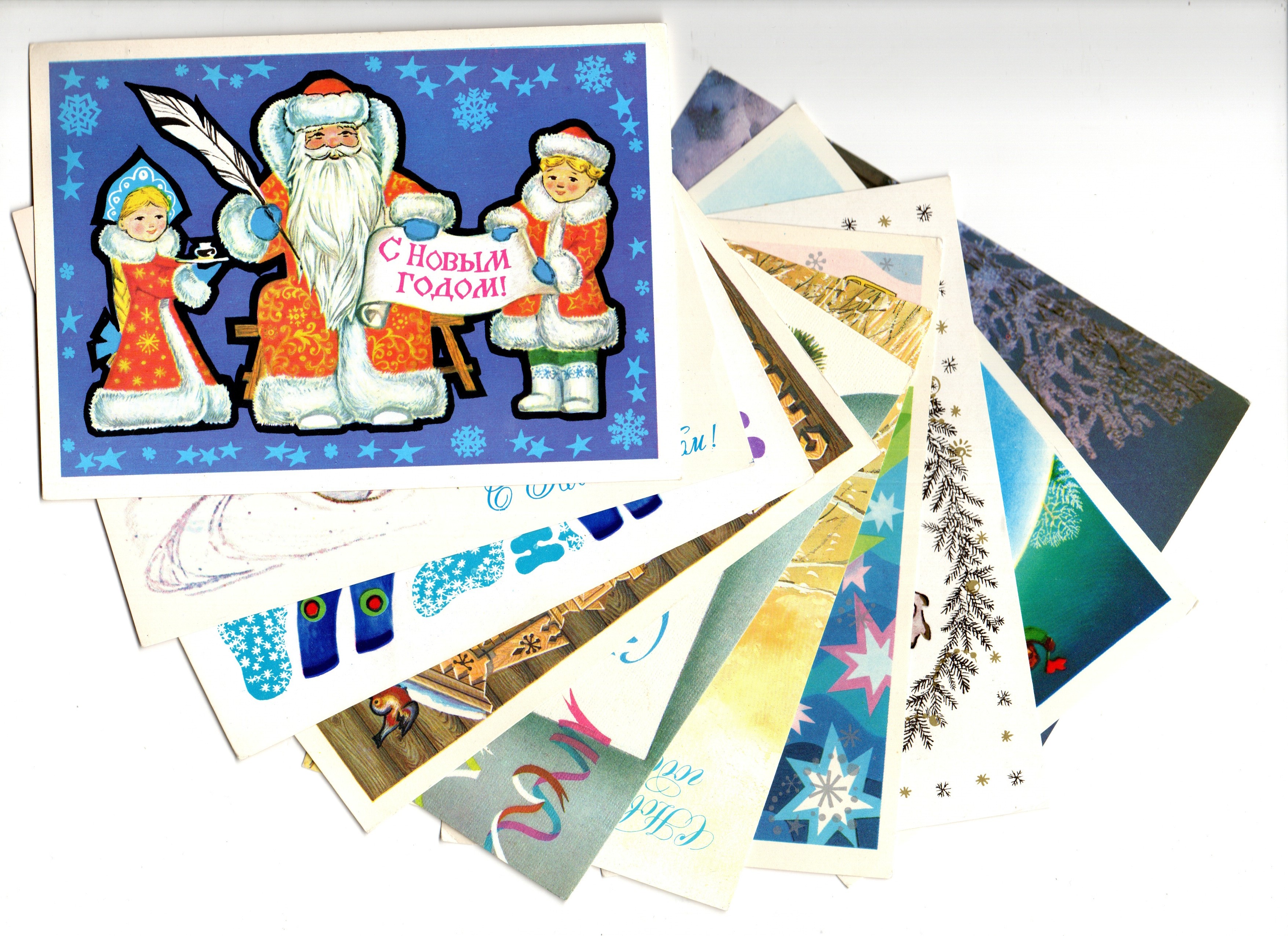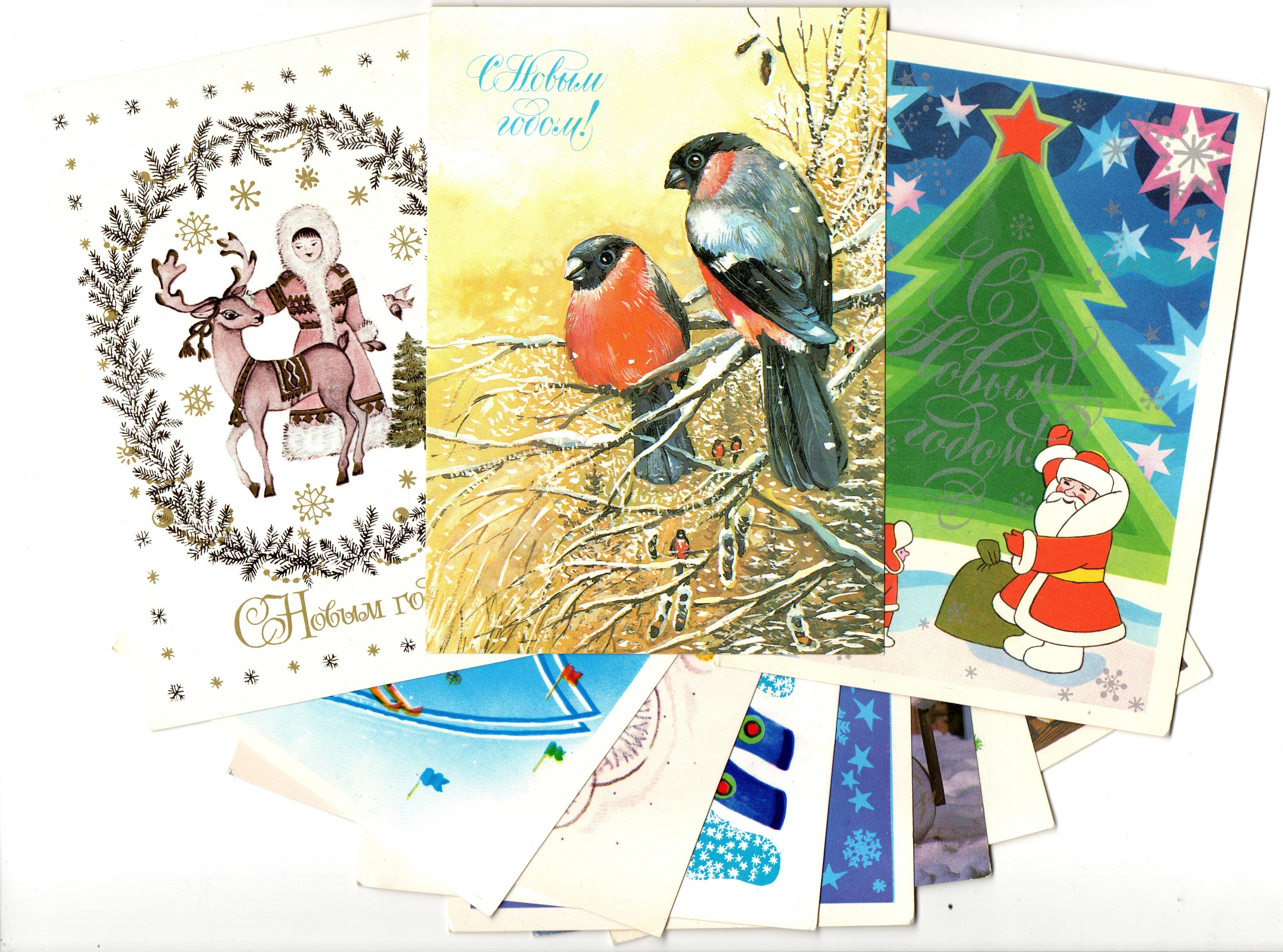 Подборка поздравительных Новогодних открыток — 10 штук— разные художники —чистые, без повторов, времен СССР