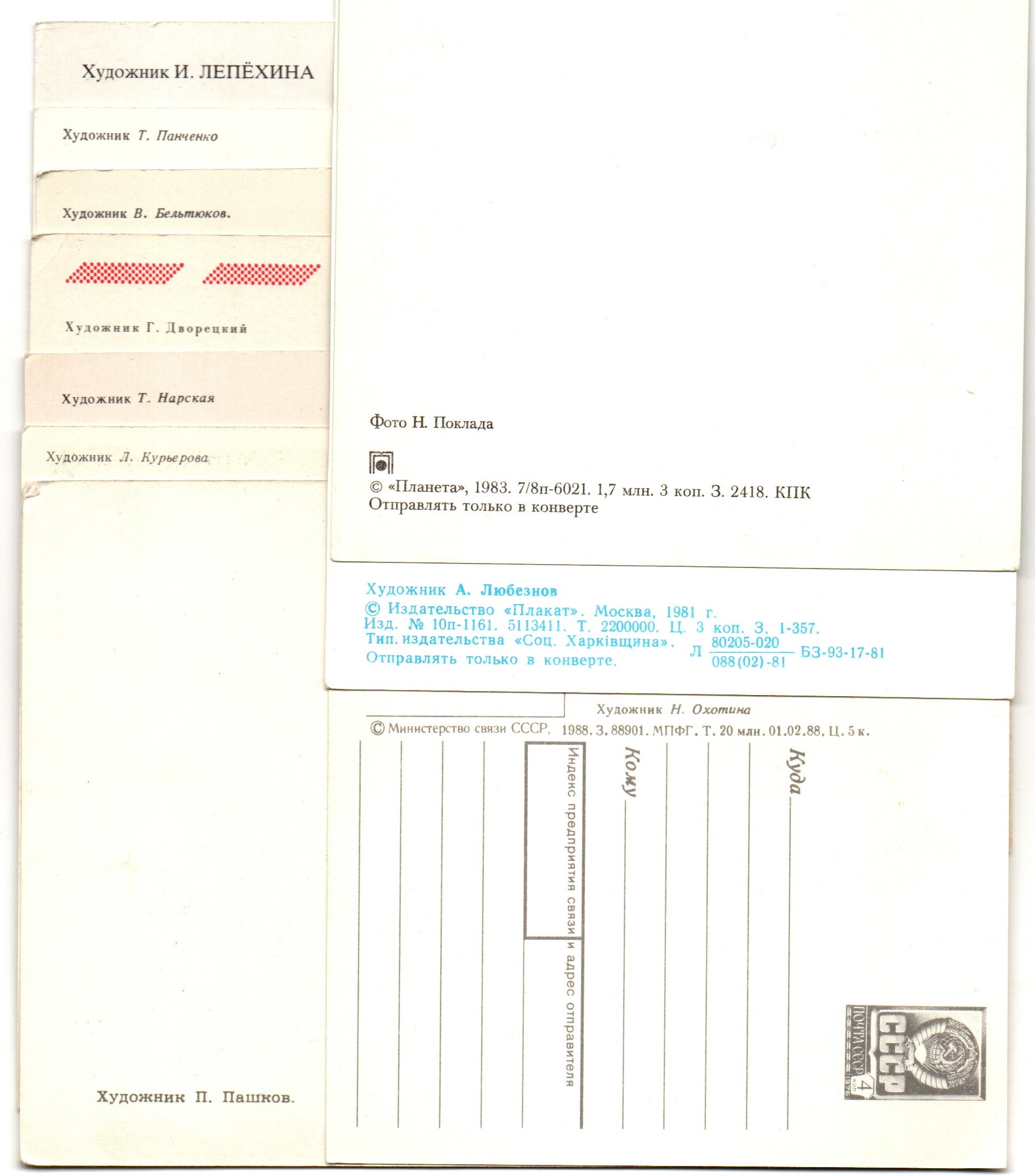 Оригинальная подборка раритетных Новогодних поздравительных открыток — 10 штук — разные художники Лепёхина, Любезнов, Нарская, Бельтюгов, Пашков, Дворецкий, Поклада, Охотина, Курьерова, Панченко — чистые, без повторов, времён СССР 1960-1990 гг. Каждая открытка эксклюзивна и создана талантливыми художниками Советского Союза. Старинные открытки имеют неповторимый стиль СССР и набирают все больше и больше популярности среди коллекционеров. Советские открытки С Новым годом отлично подойдут в личную коллекцию и на подарок коллекционерам открыток. Состояние и комплектация на фото.