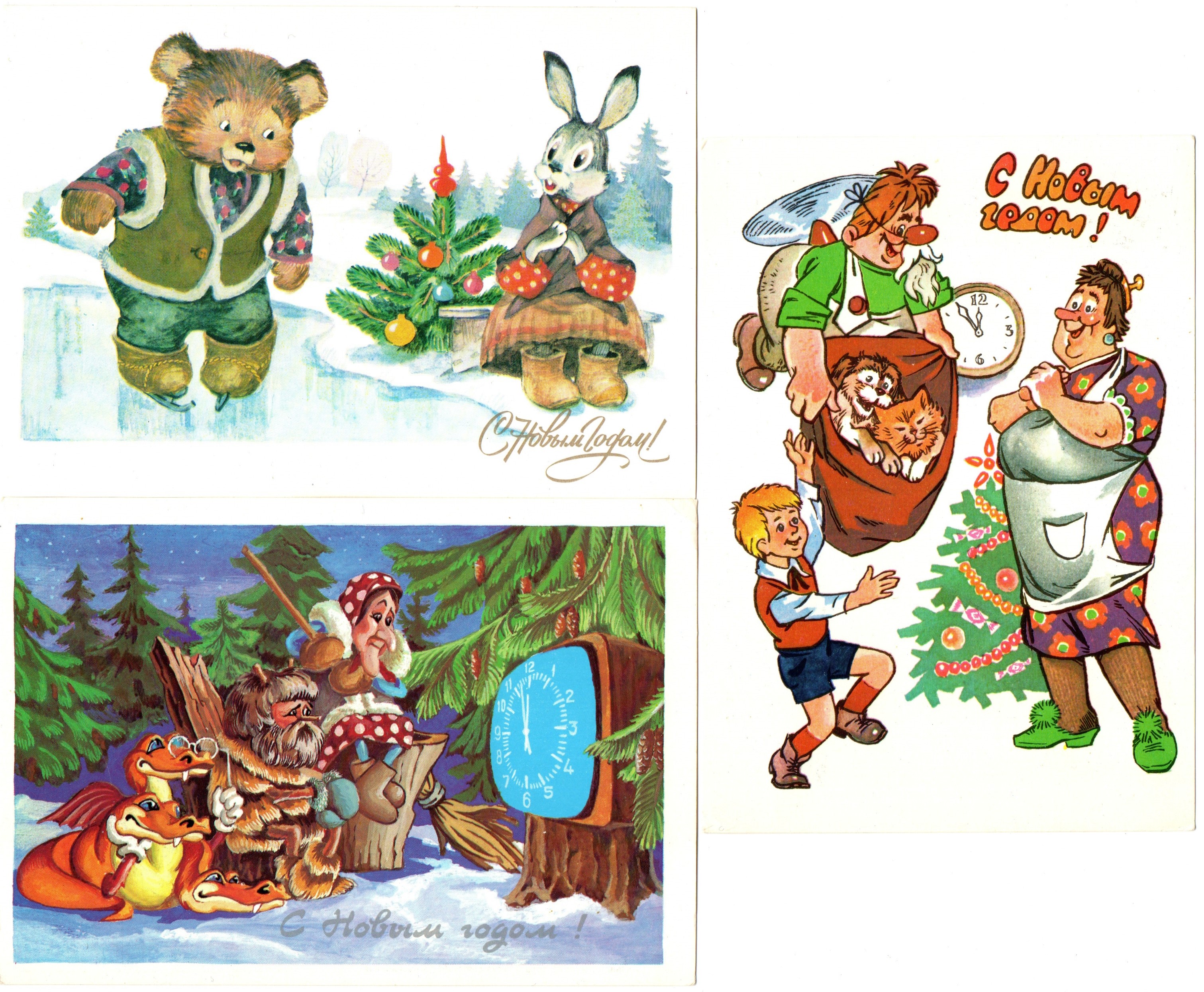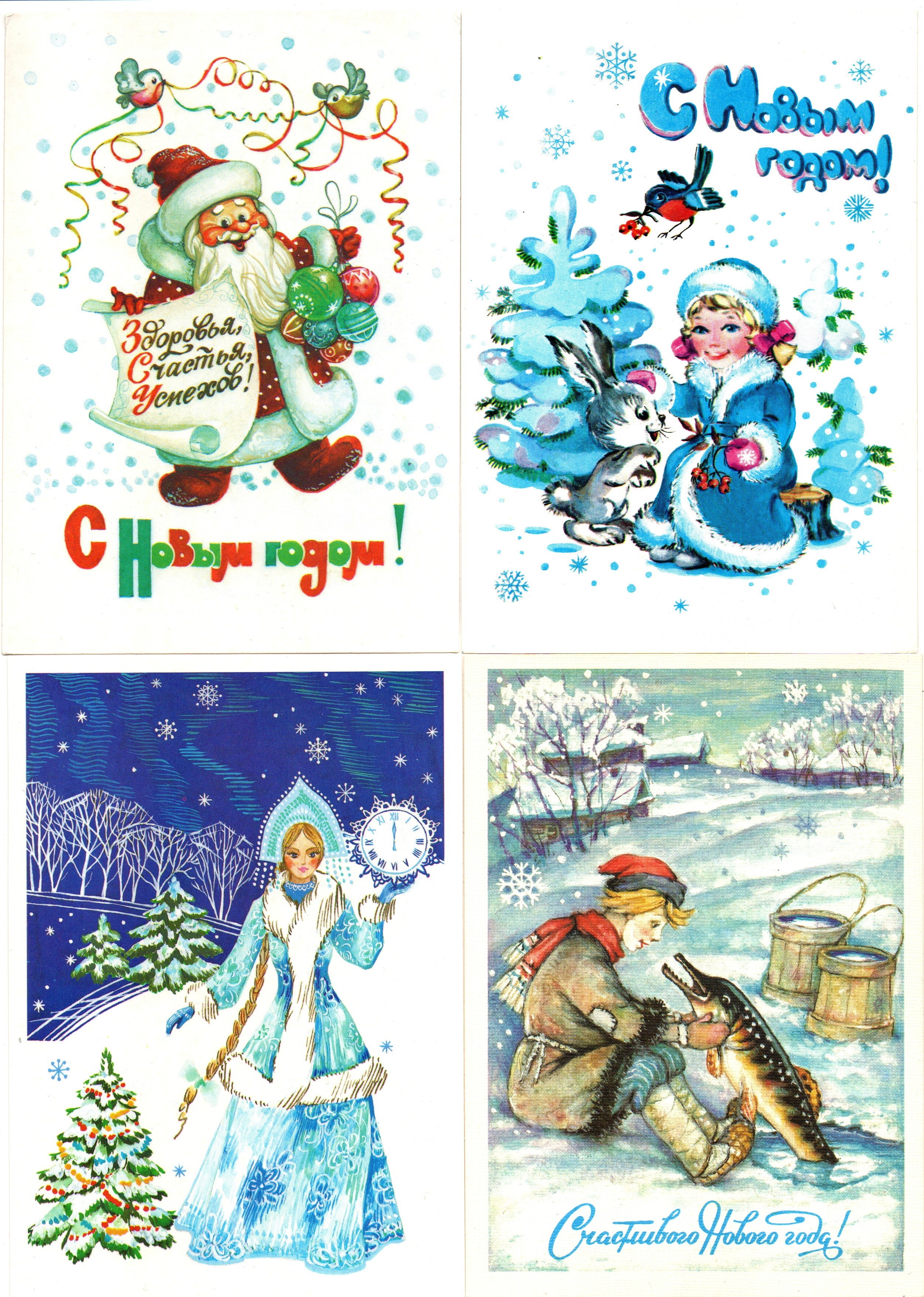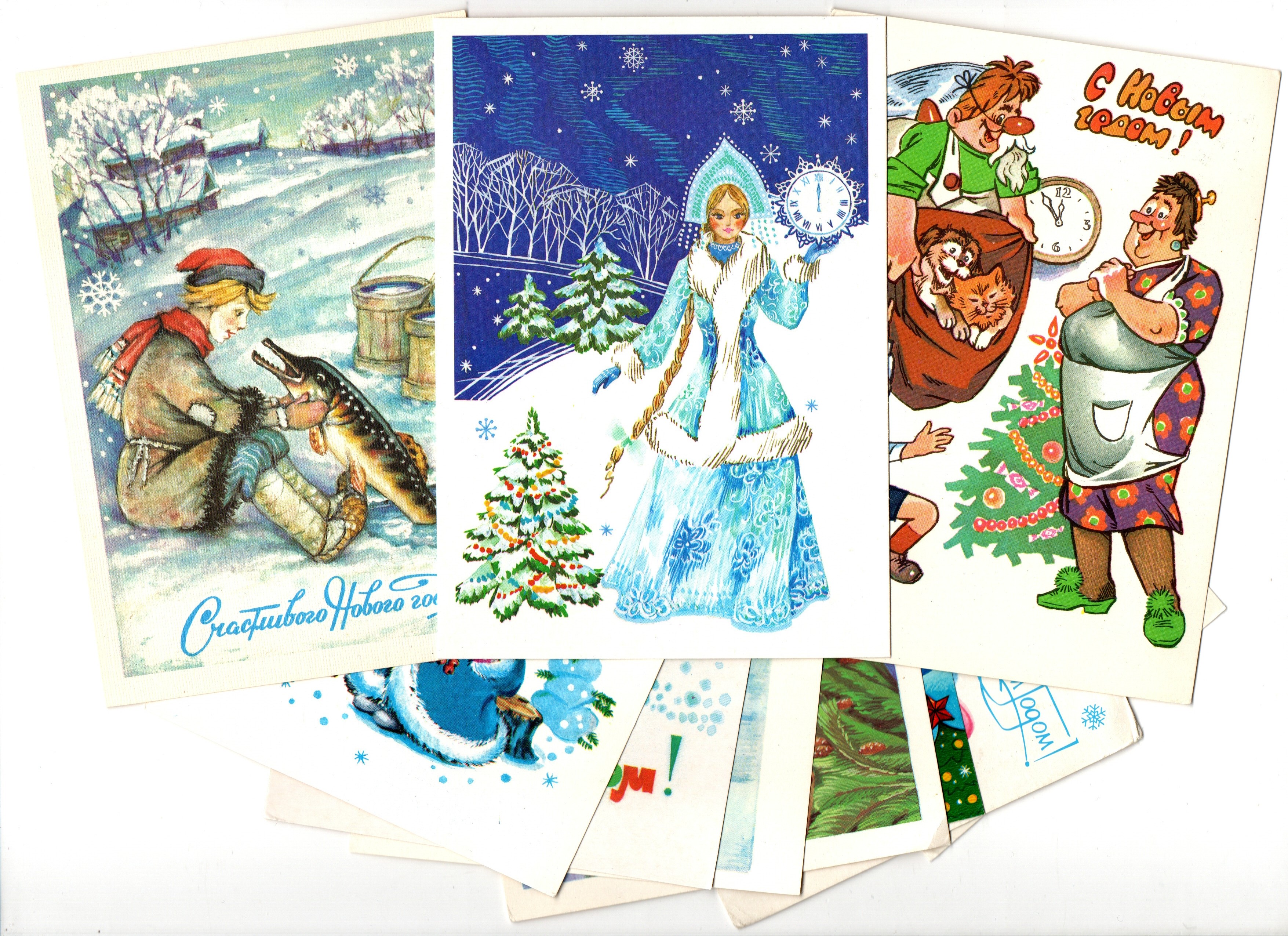 Подборка поздравительных новогодних открыток — 10 штук— разные художники, — чистые, без повторов времен СССР