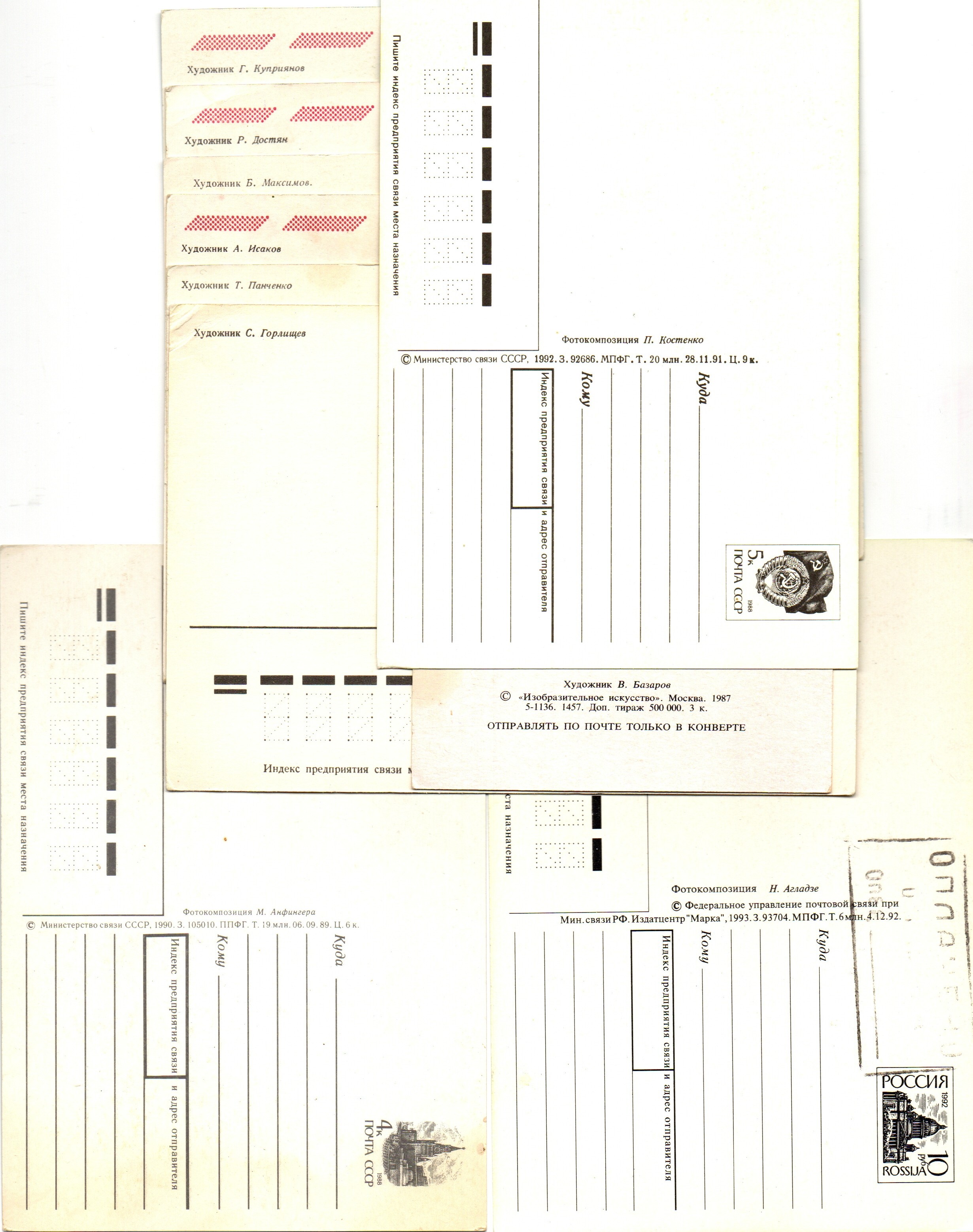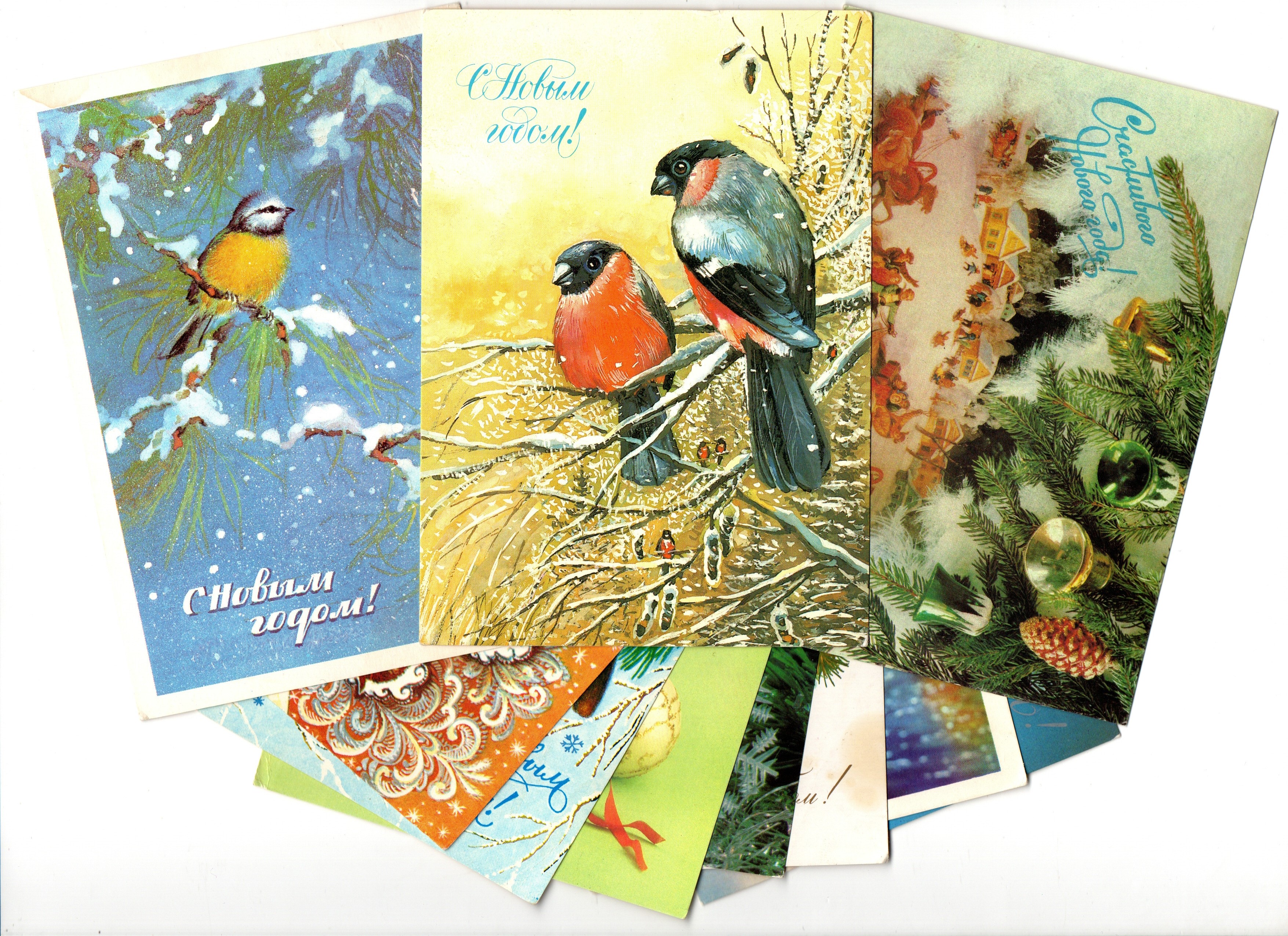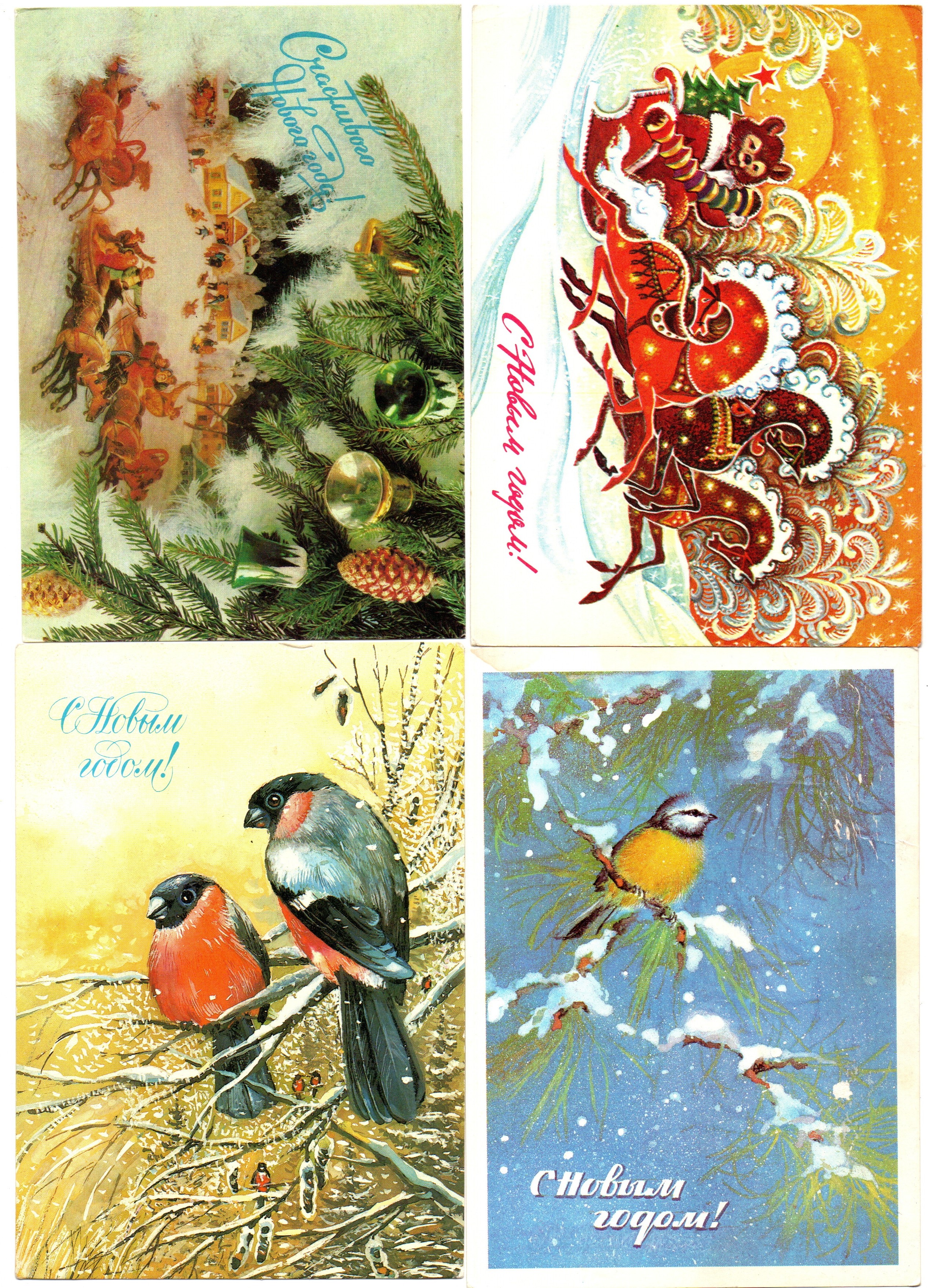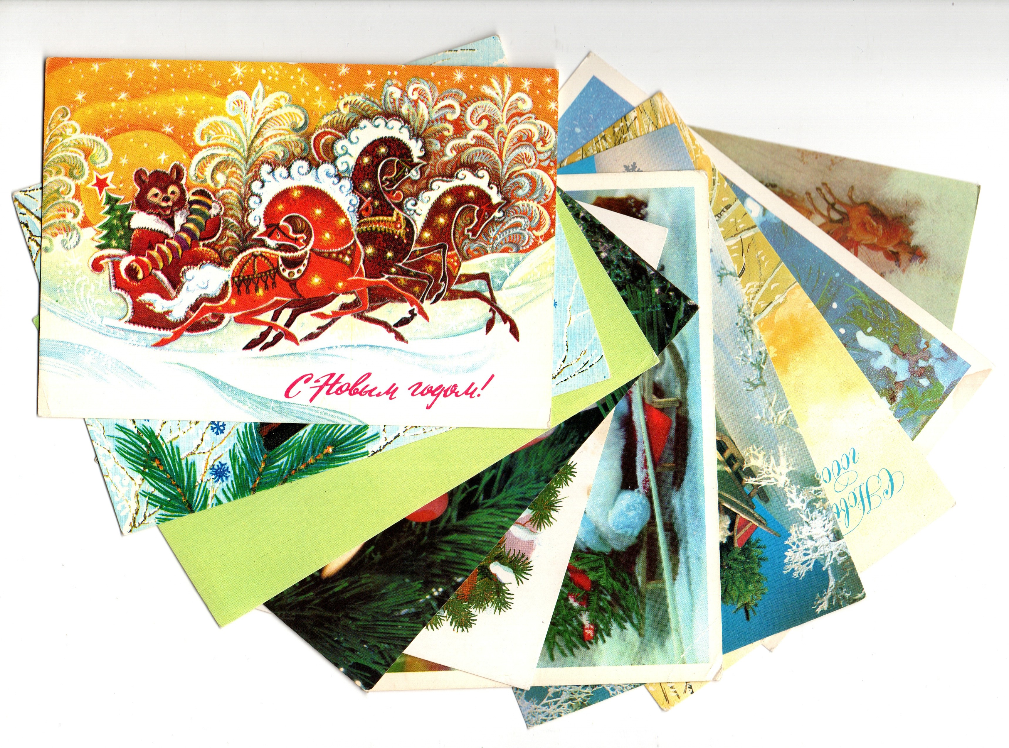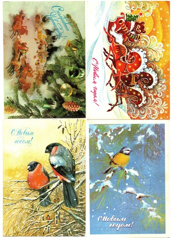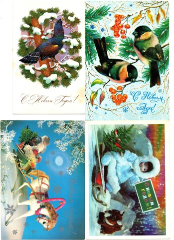 Подборка поздравительных Новогодних открыток — 10 штук— разные художники —чистые, без повторов, времен СССР