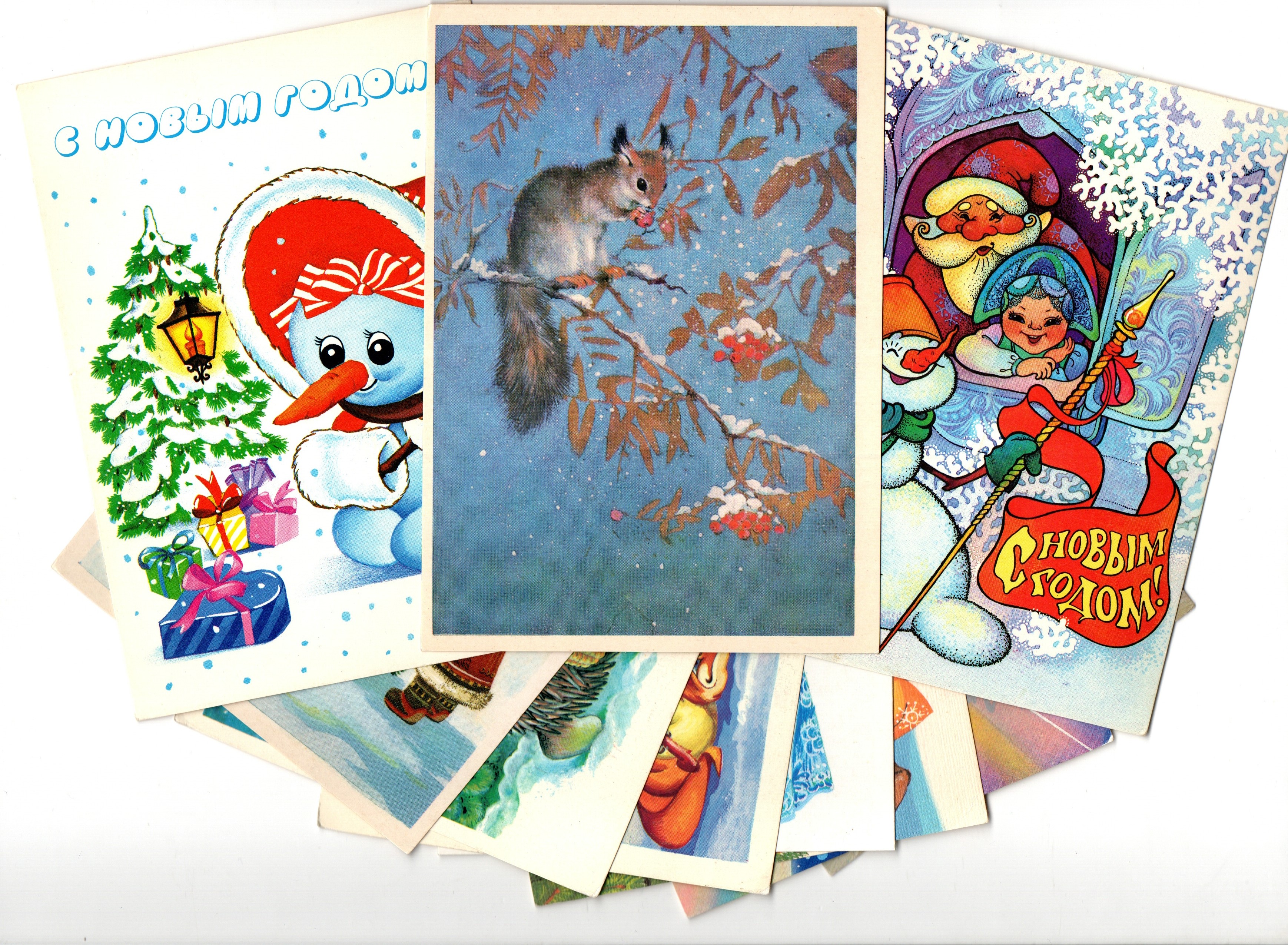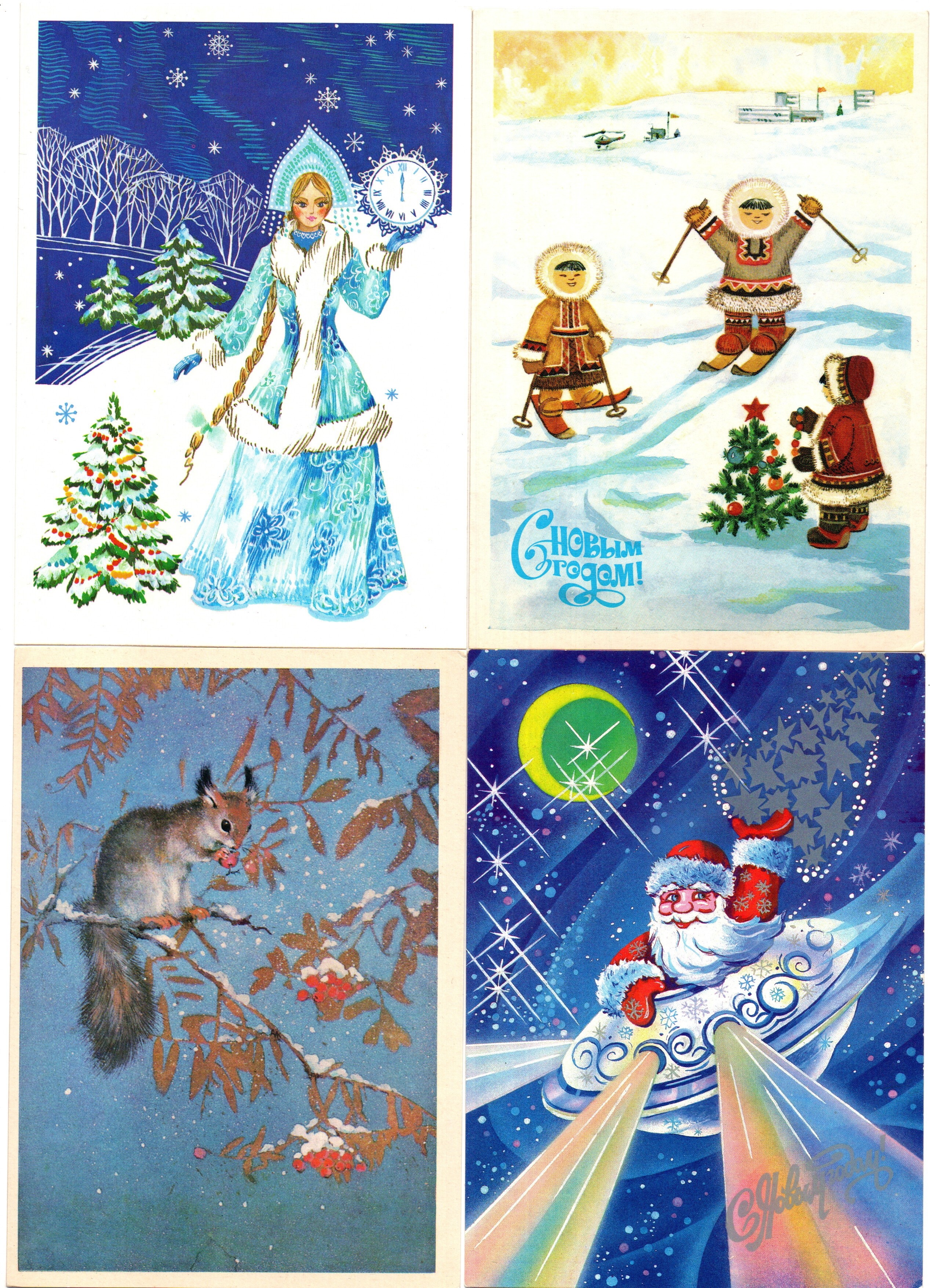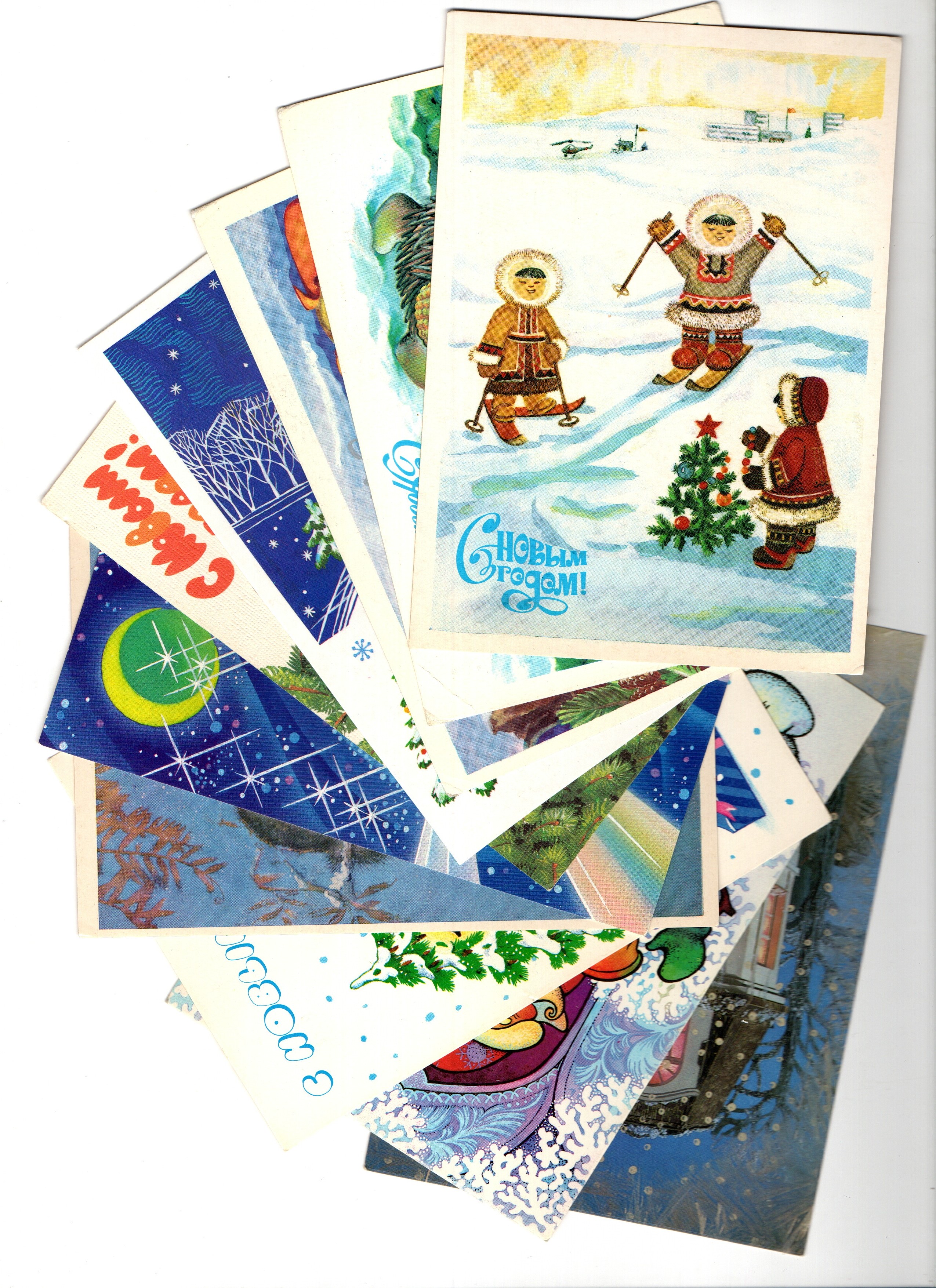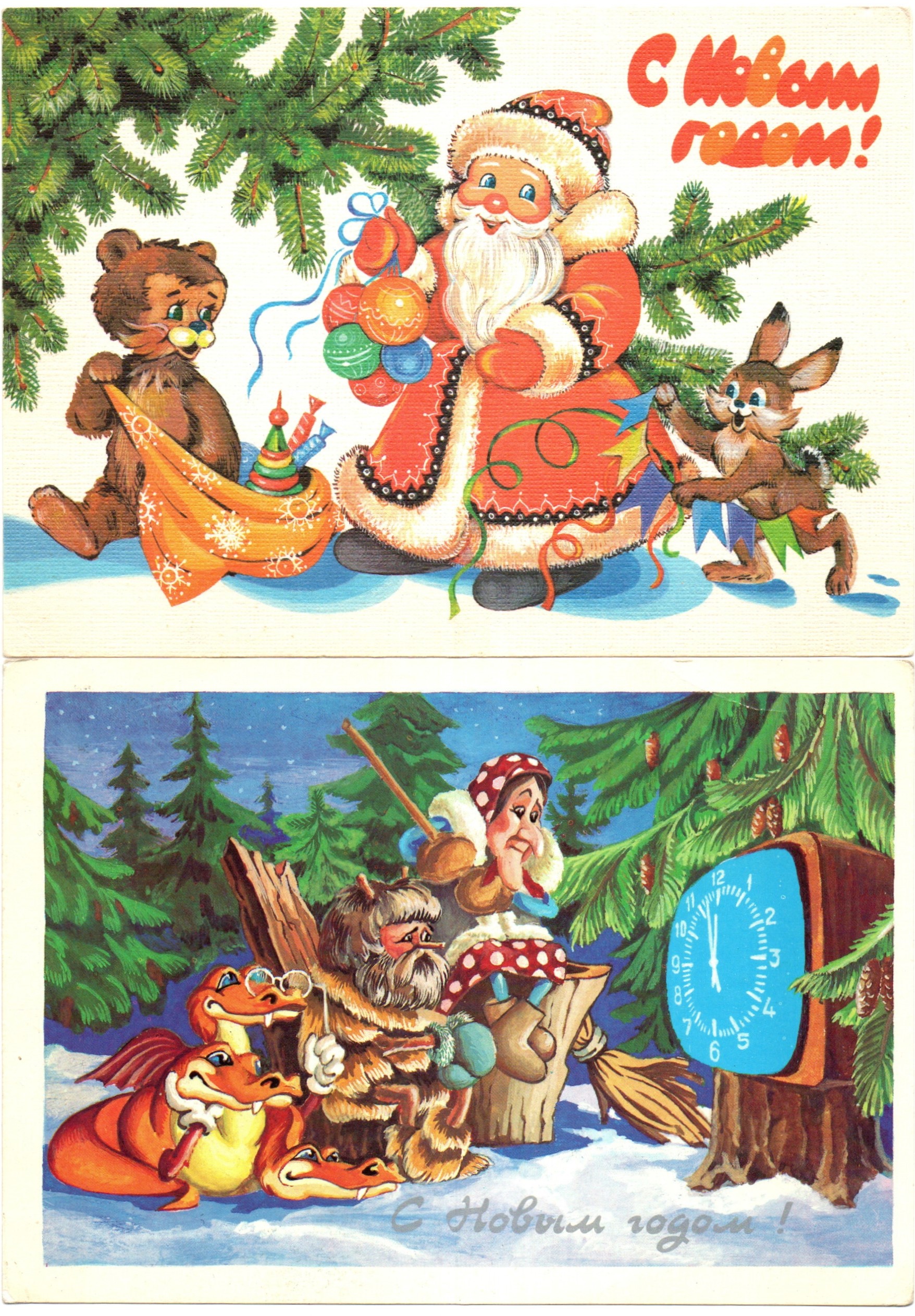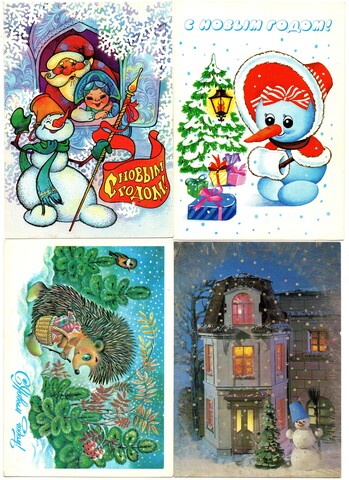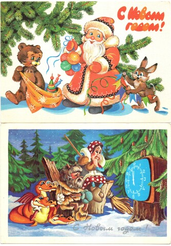 Подборка поздравительных Новогодних открыток — 10 штук— разные художники —чистые, без повторов, времен СССР