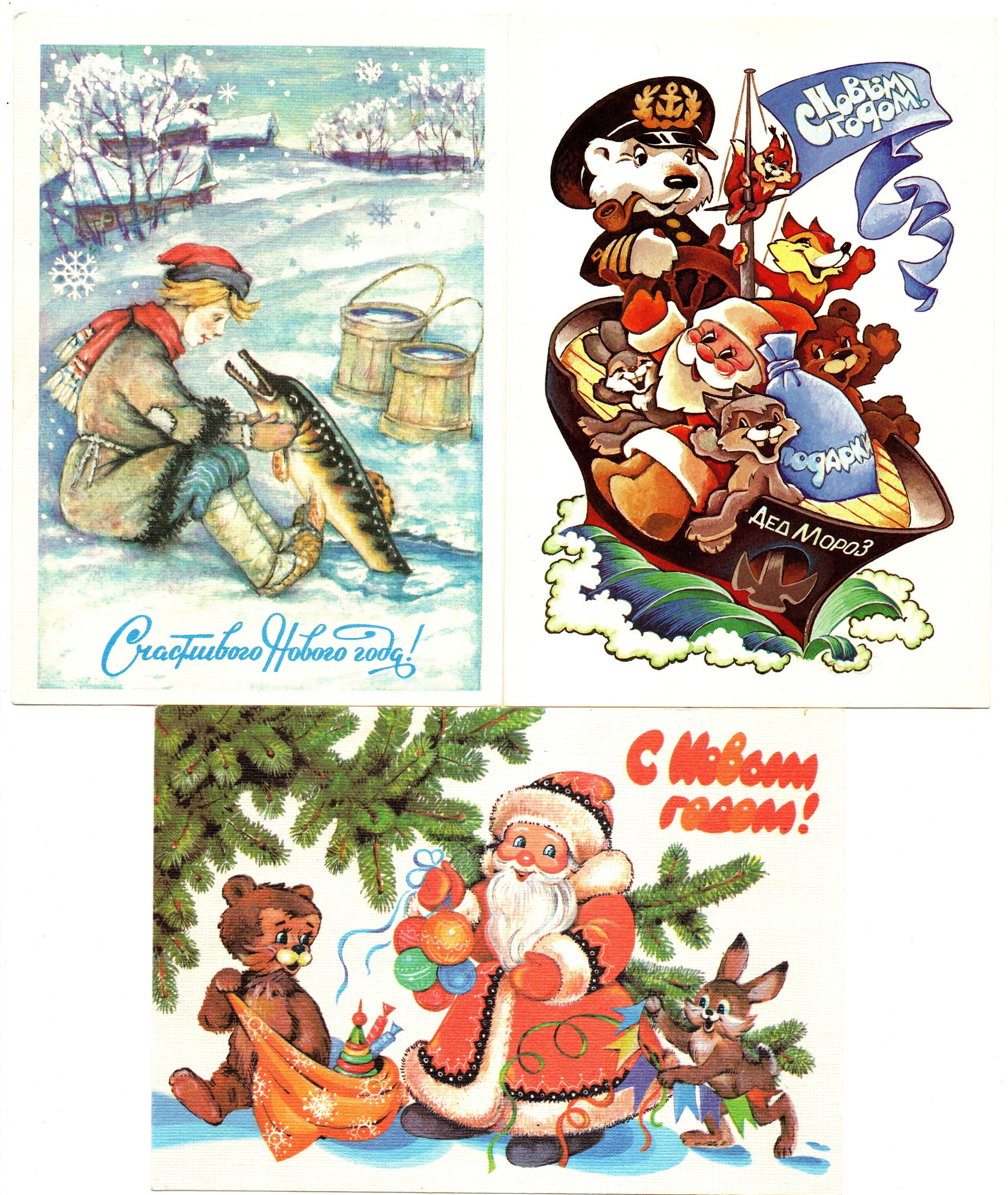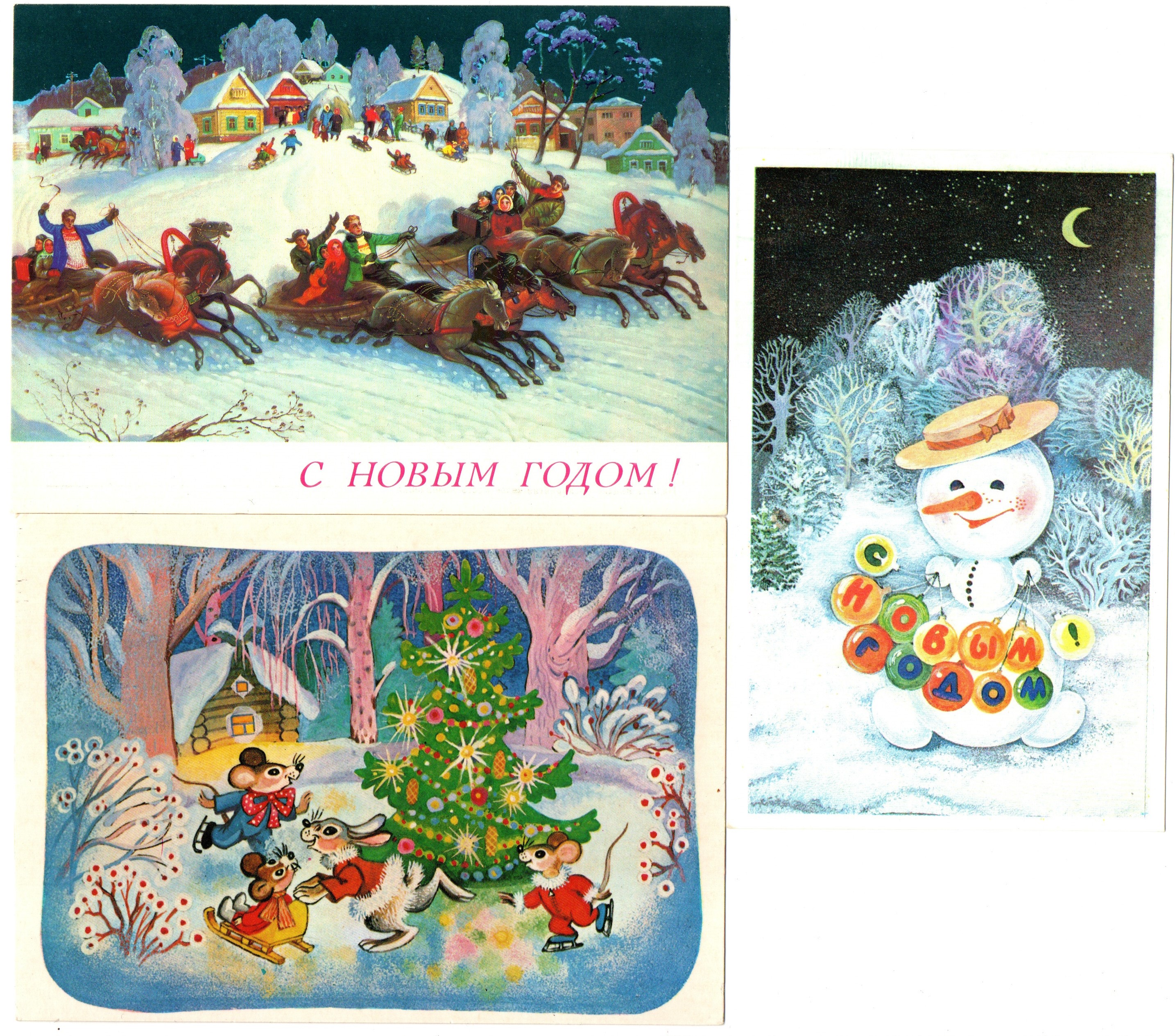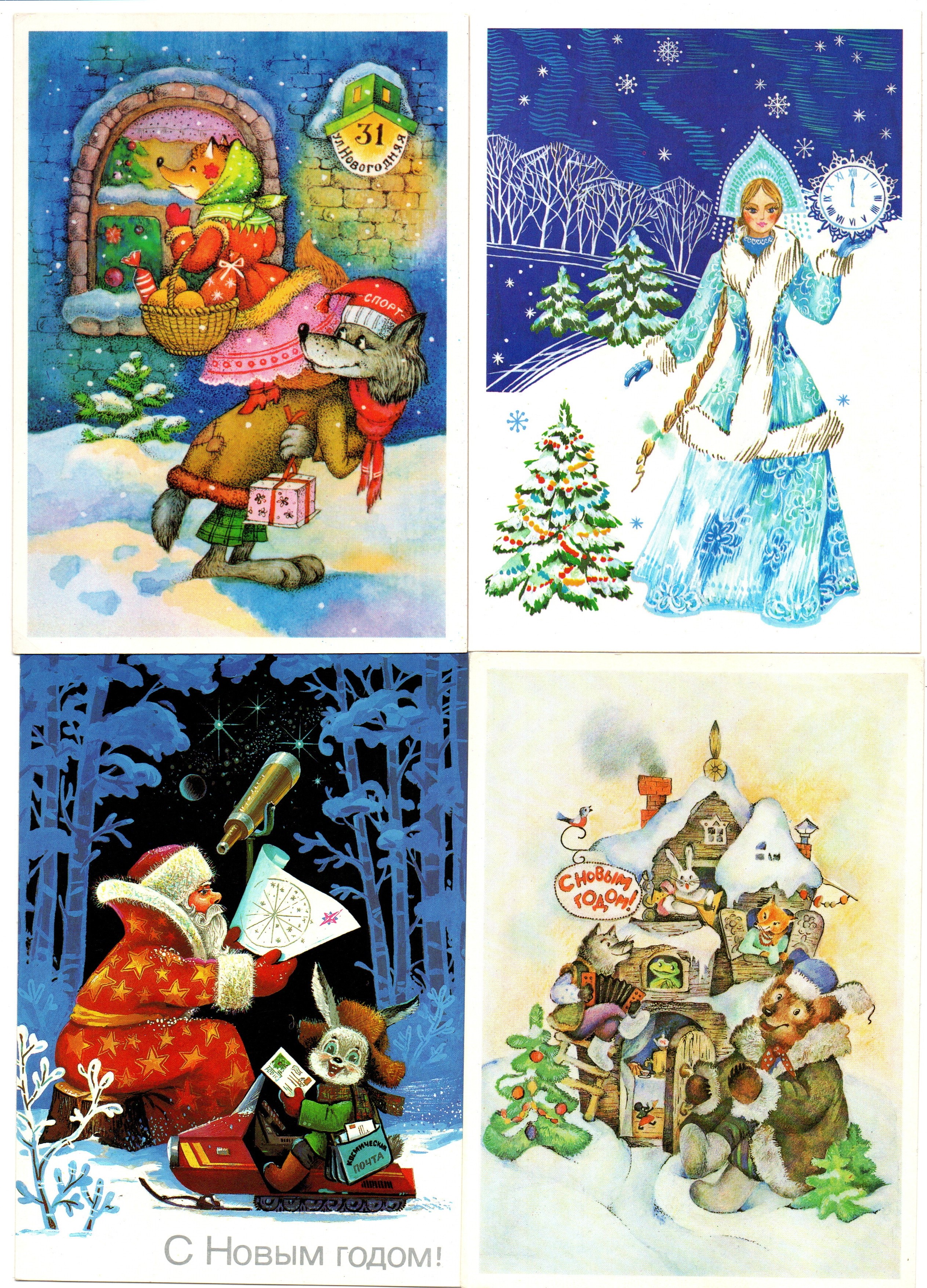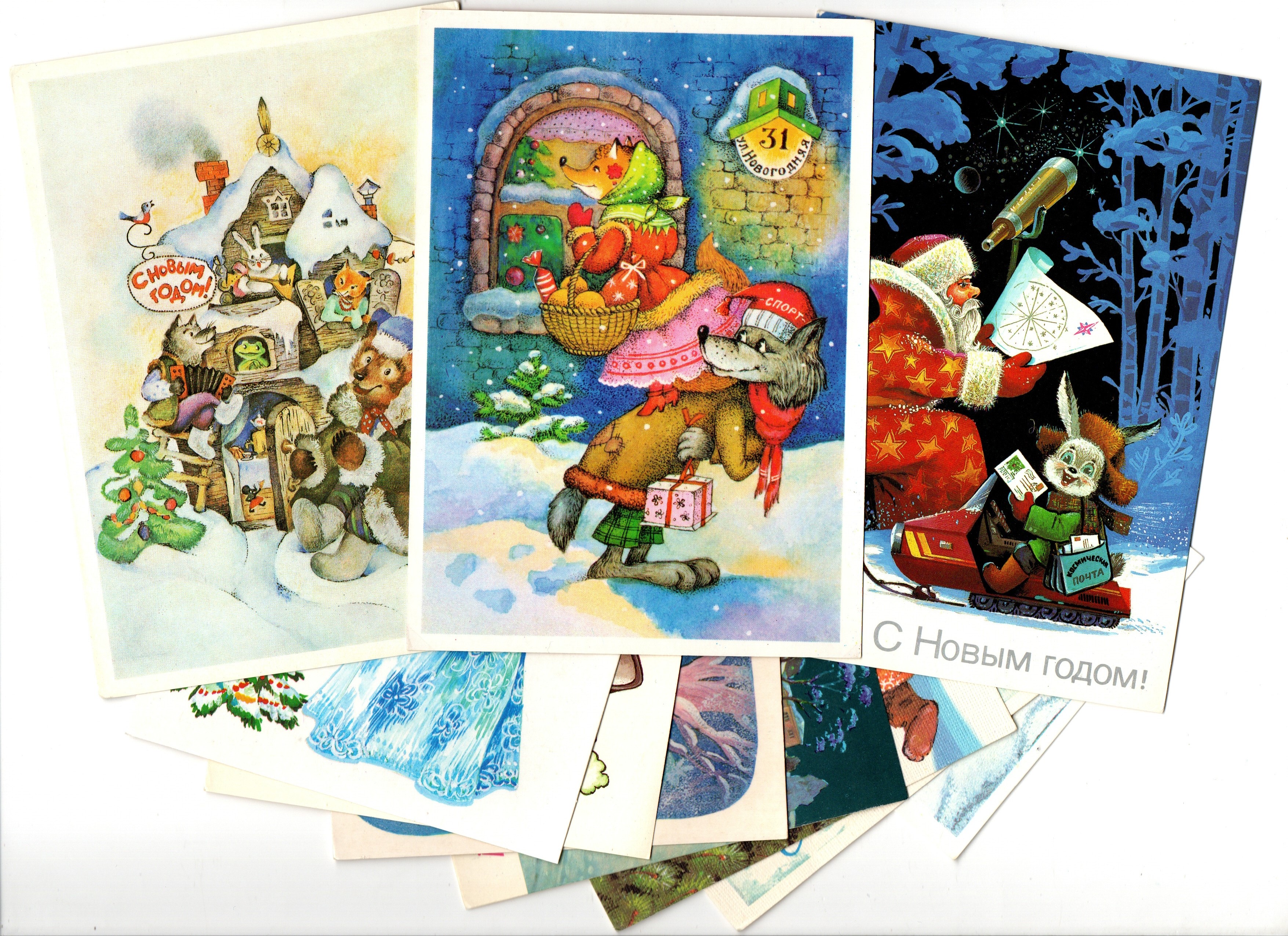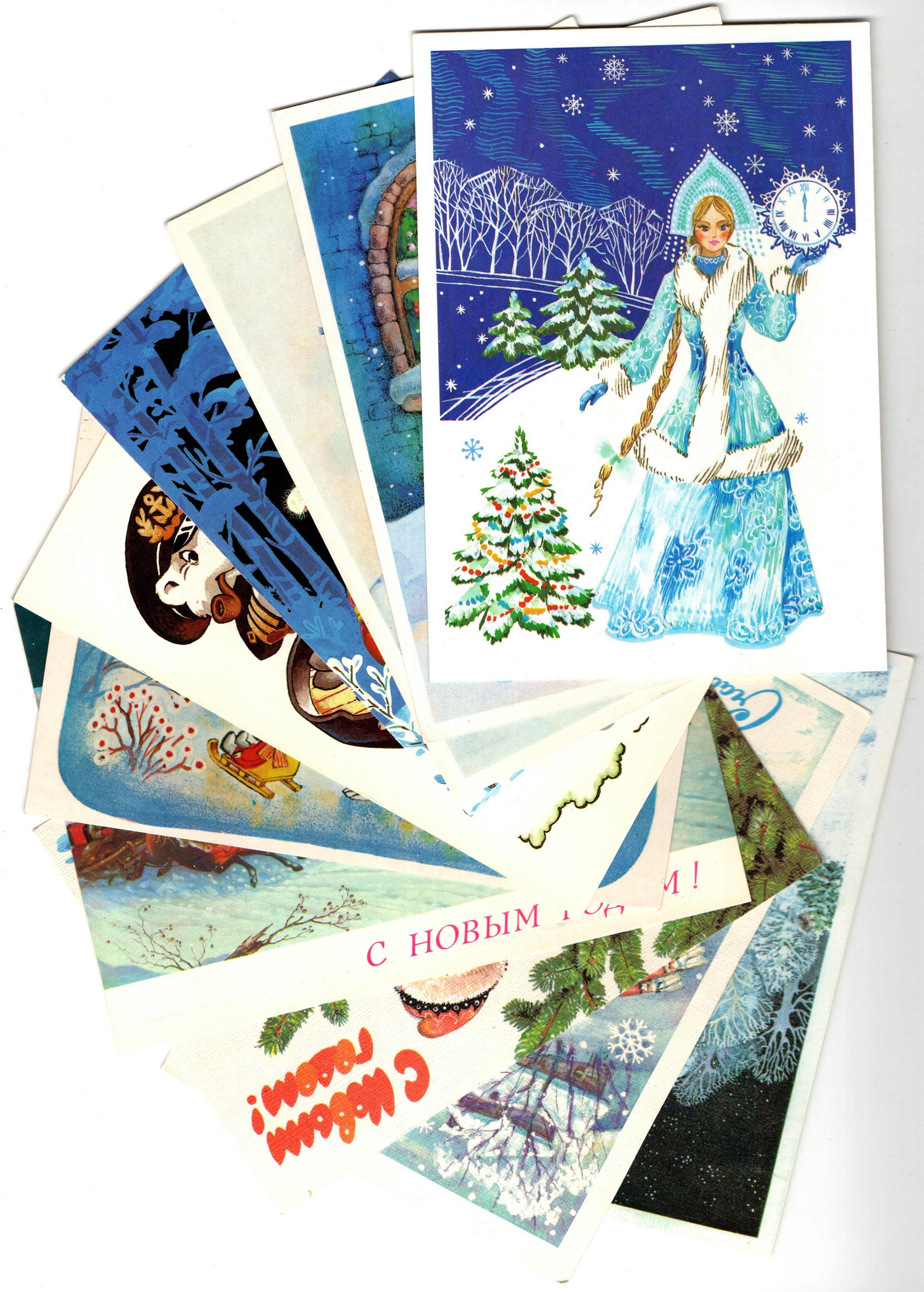 Подборка поздравительных новогодних открыток — 10 штук— разные художники, — чистые, без повторов времен СССР
