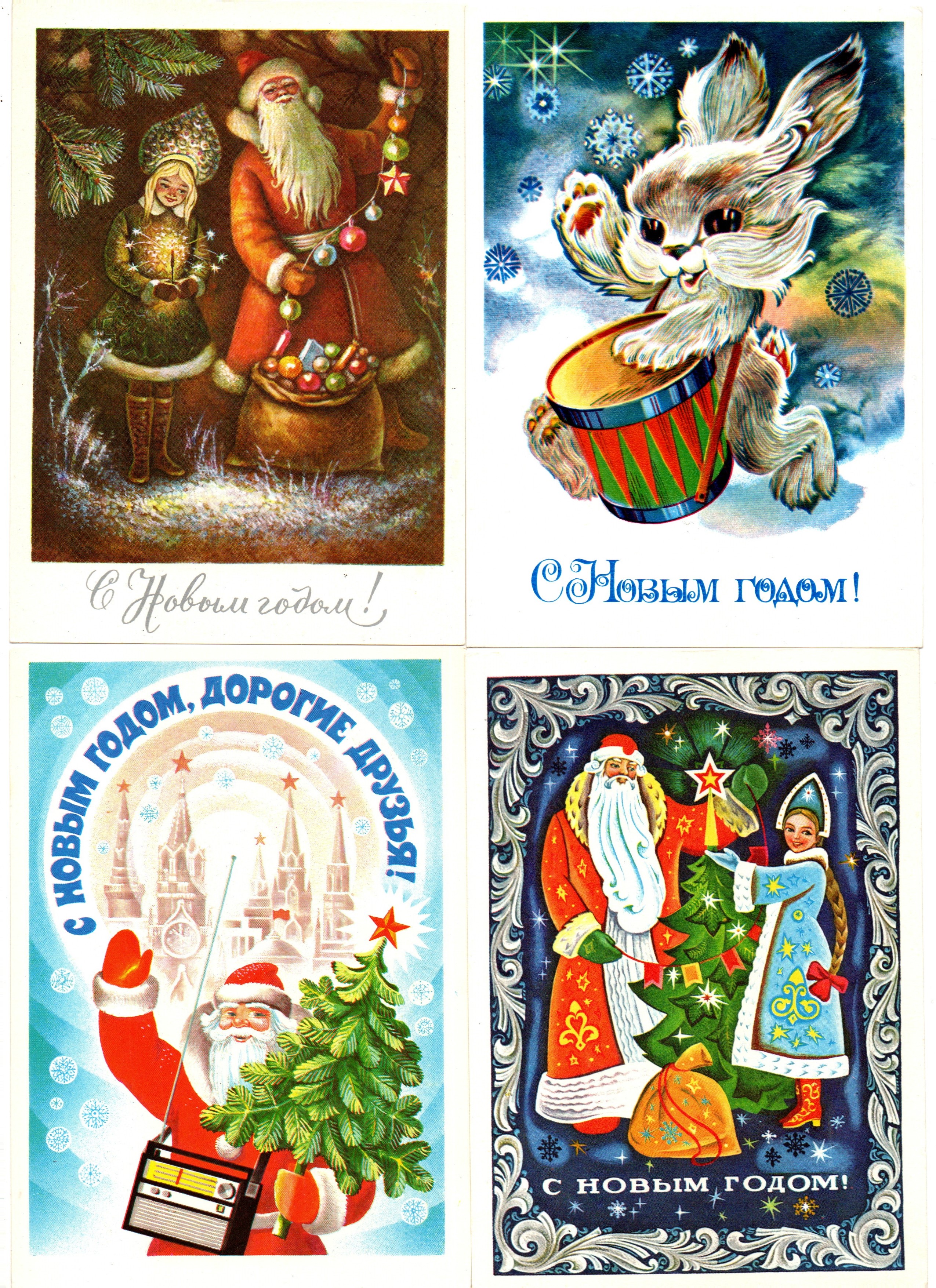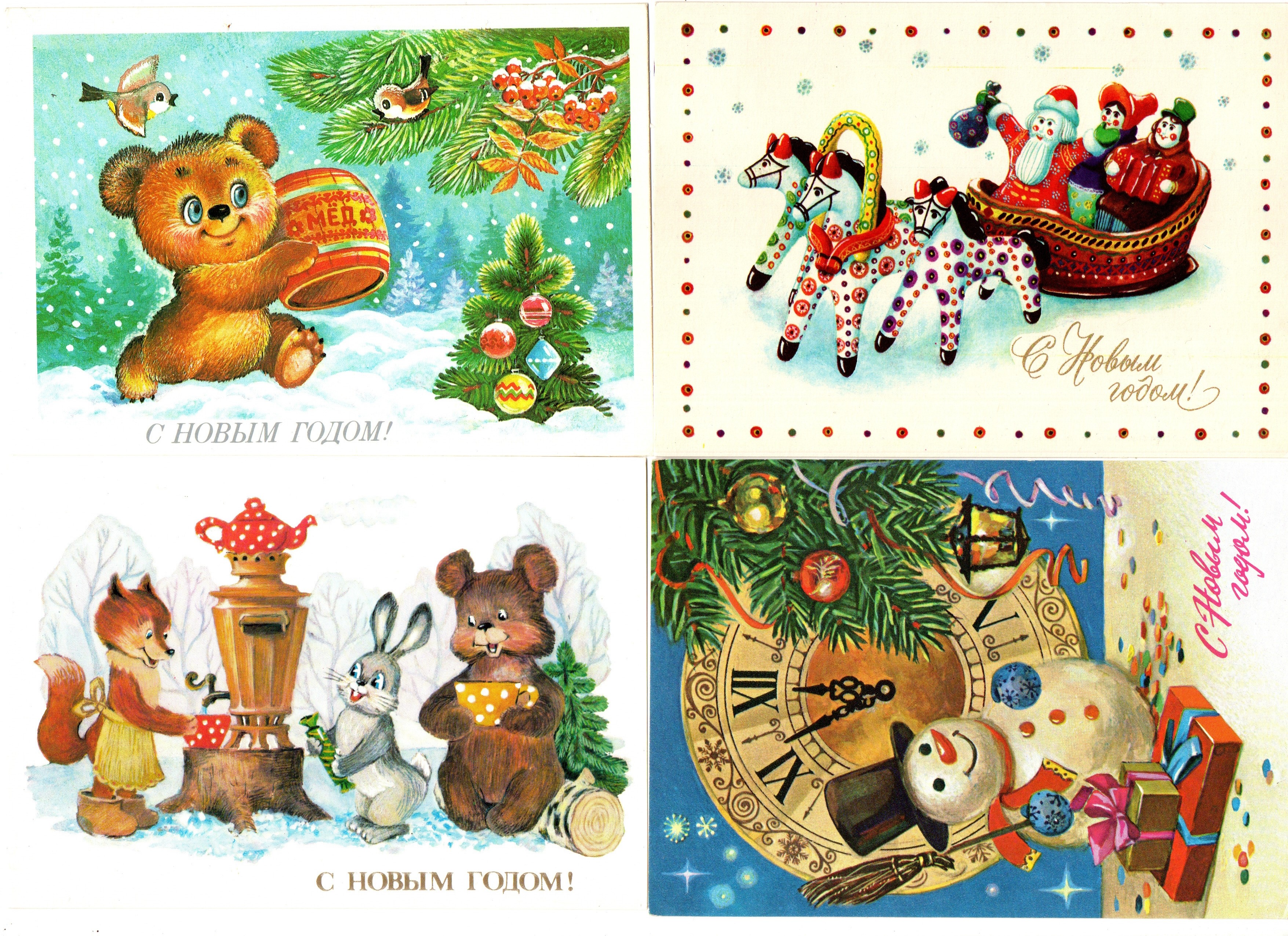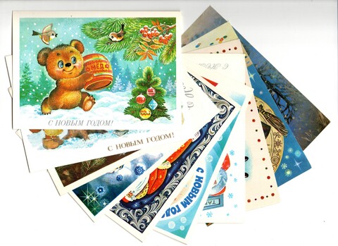 Подборка поздравительных Новогодних открыток — 10 штук— разные художники —чистые, без повторов, времен СССР