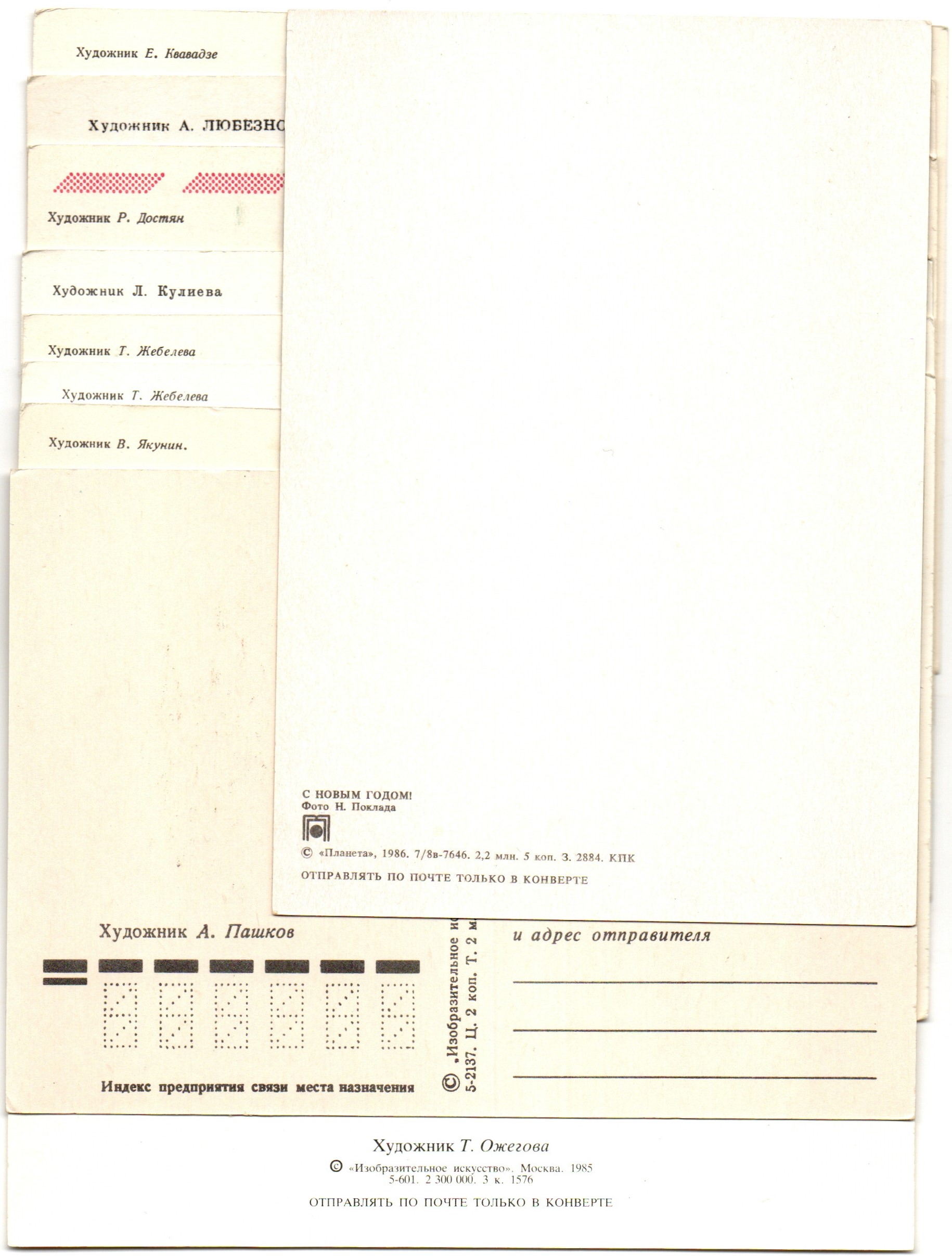 Оригинальная подборка раритетных Новогодних поздравительных открыток — 10 штук — разные художники Поклада, Любезнов, Ожегова, Кавадзе, Жебелева, Якунин, Пашков, Кулиева, Достян — чистые, без повторов, времён СССР 1960-1990 гг. Каждая открытка эксклюзивна и создана талантливыми художниками Советского Союза. Старинные открытки имеют неповторимый стиль СССР и набирают все больше и больше популярности среди коллекционеров. Советские открытки С Новым годом отлично подойдут в личную коллекцию и на подарок коллекционерам открыток. Состояние и комплектация на фото.