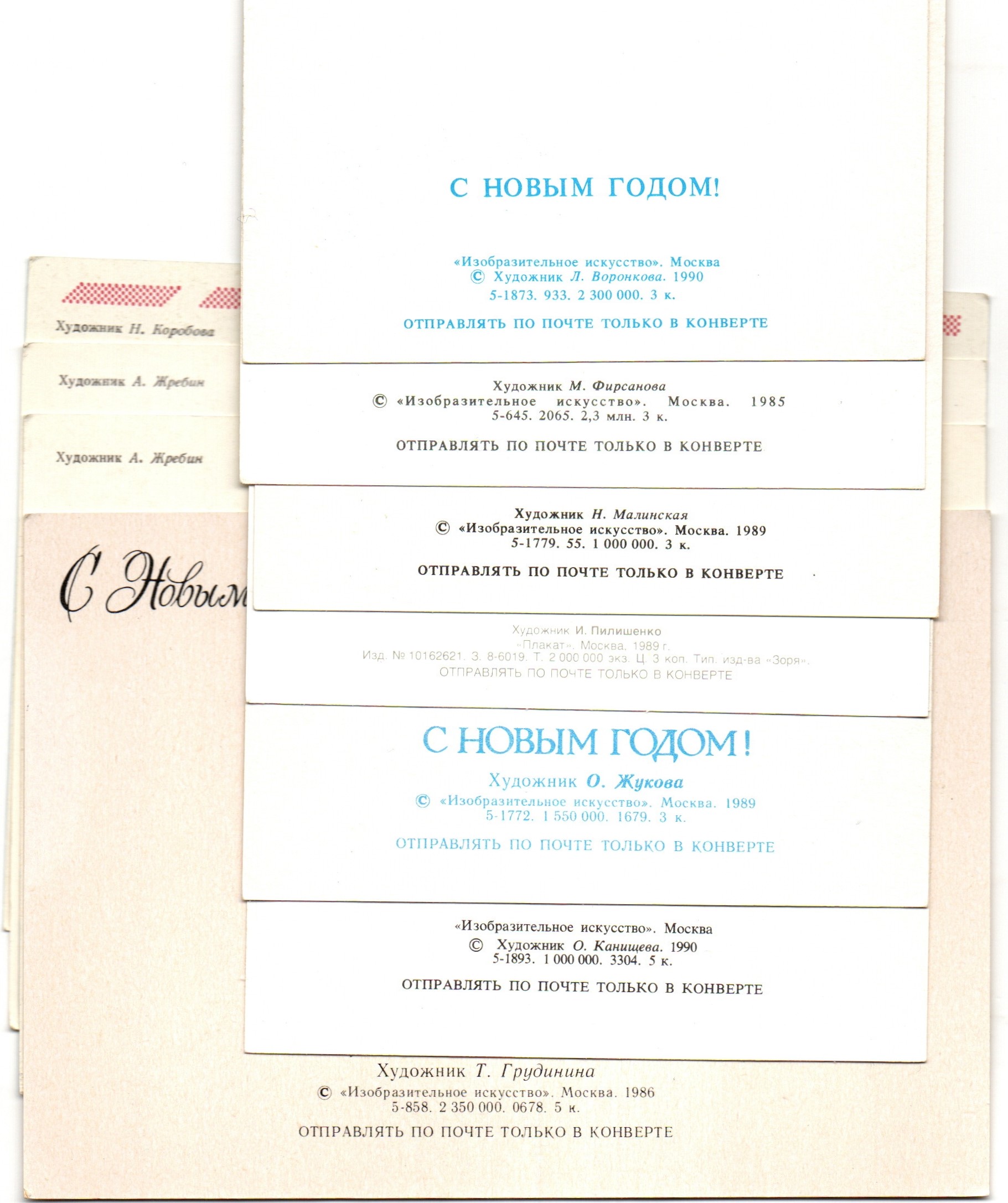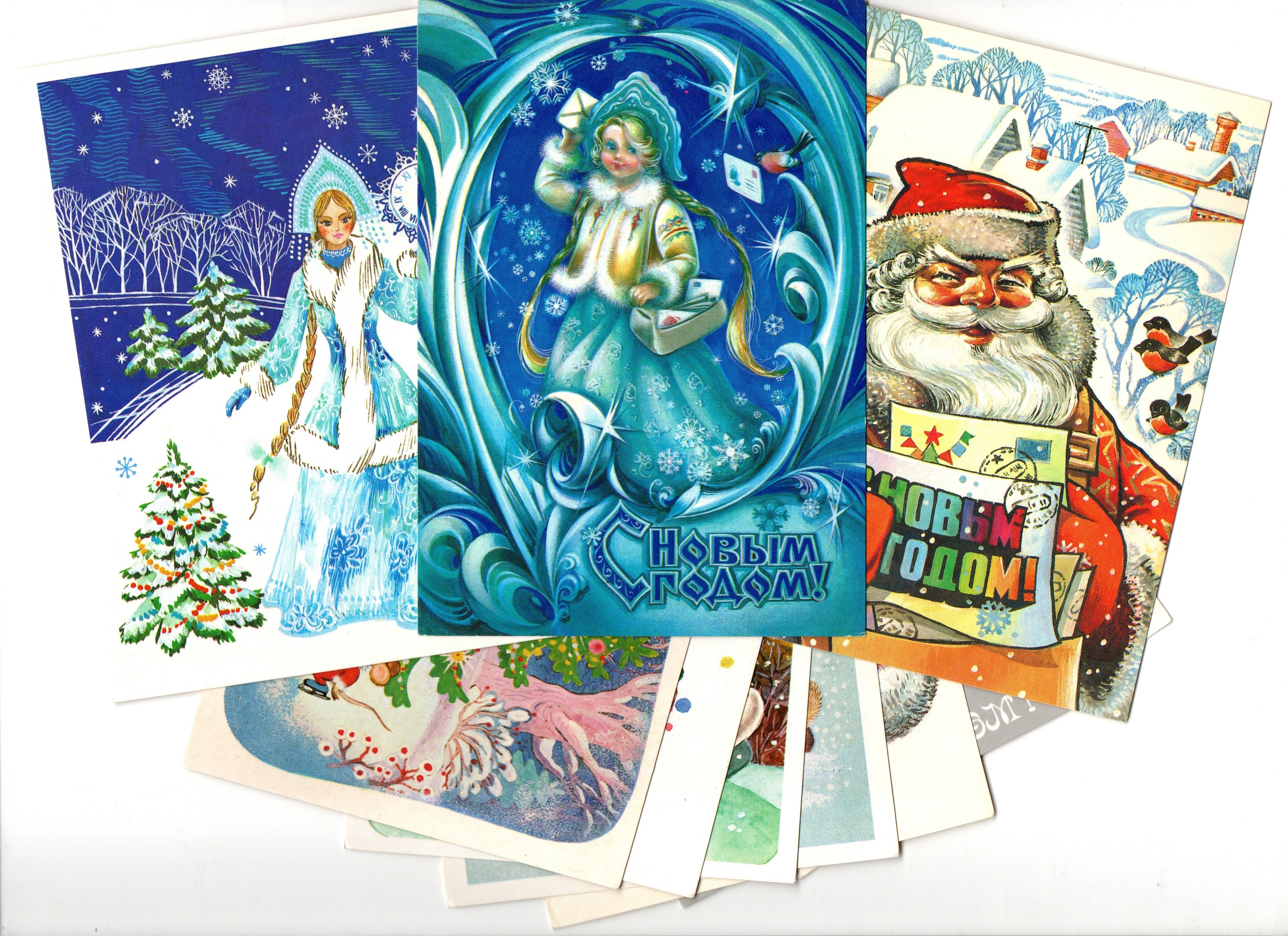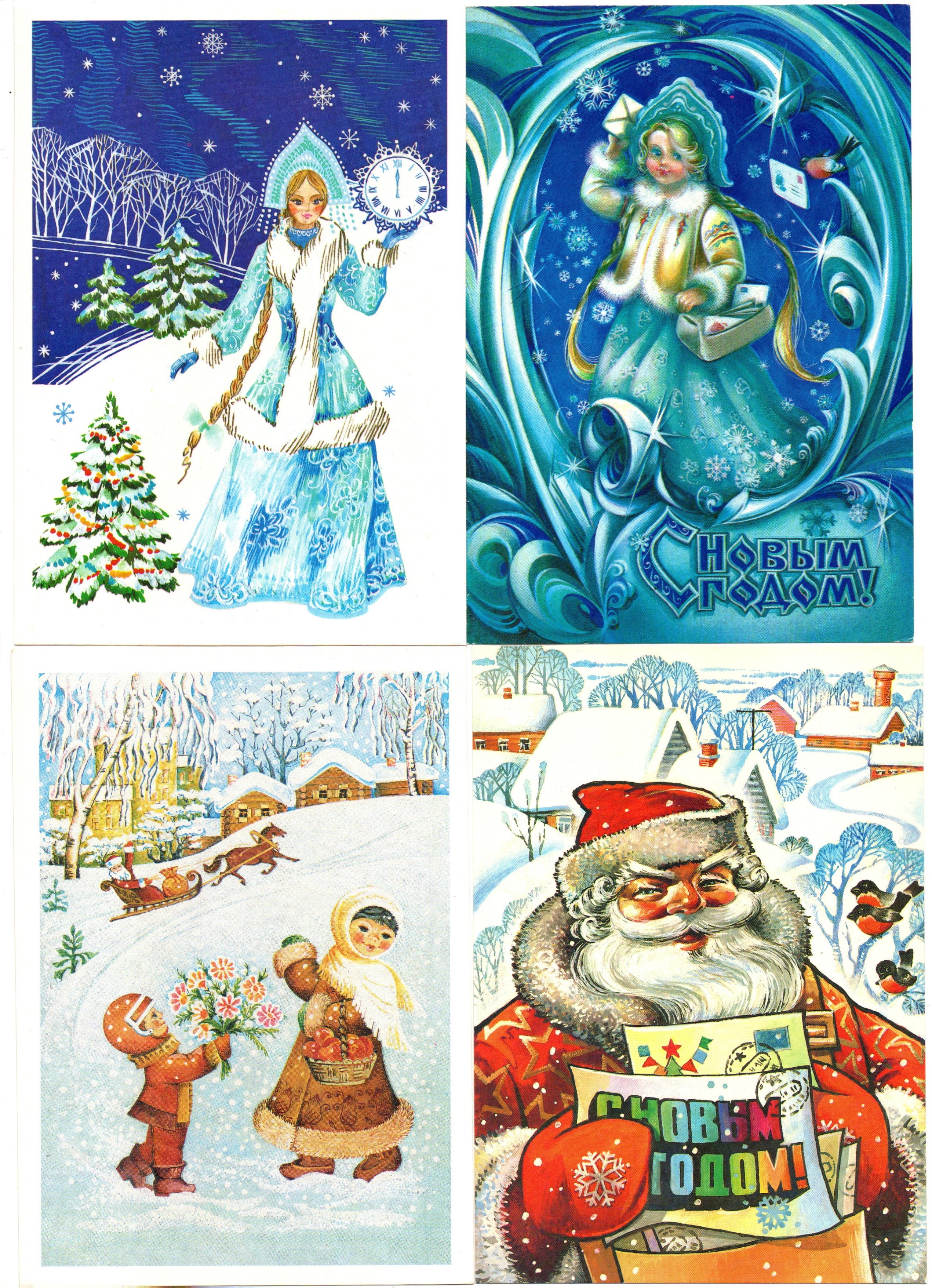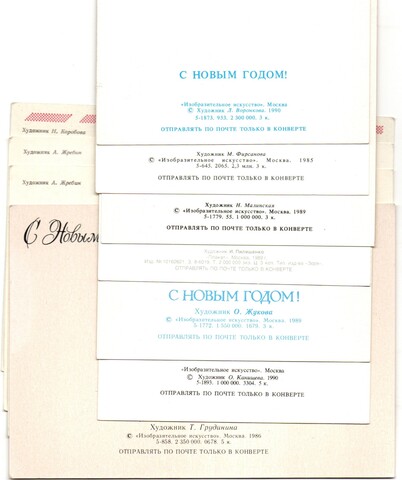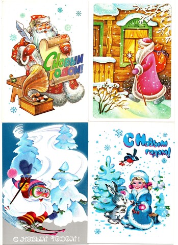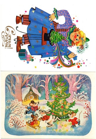 Подборка поздравительных Новогодних открыток — 10 штук— разные художники —чистые, без повторов, времен СССР