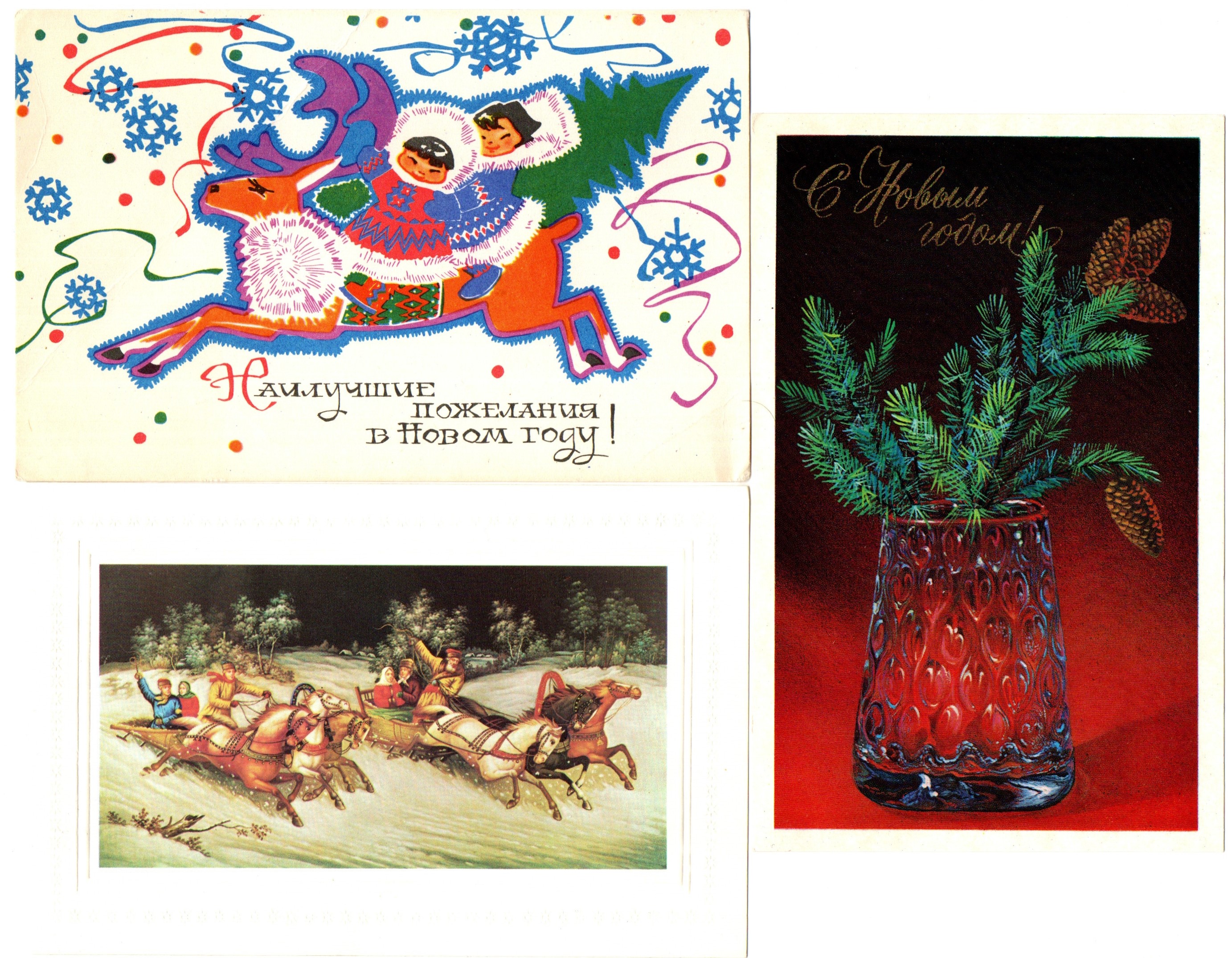 Подборка поздравительных новогодних открыток — 10 штук— разные художники, — чистые, без повторов времен СССР