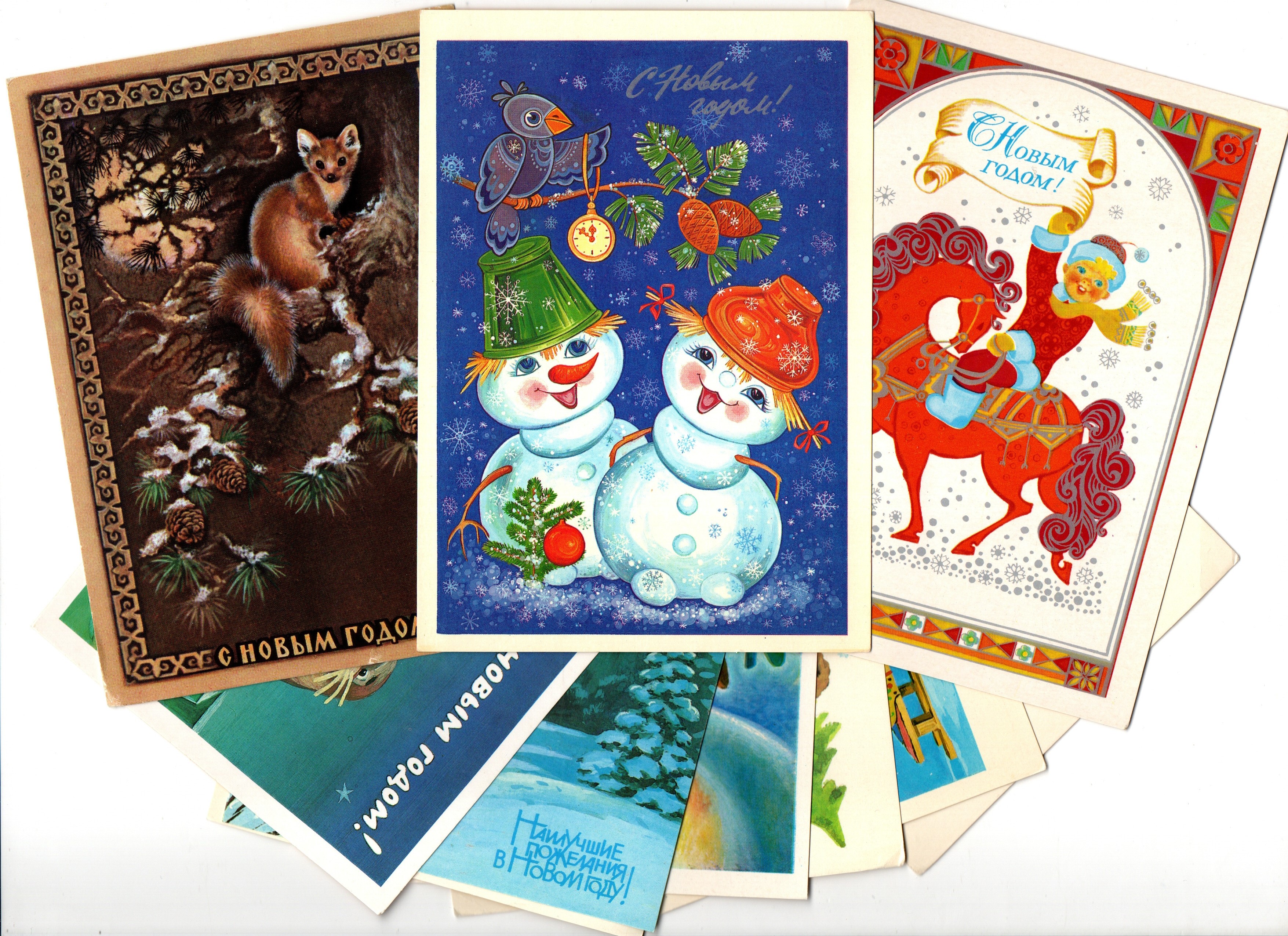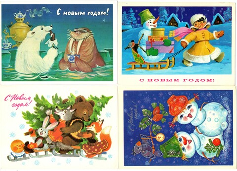 Подборка поздравительных новогодних открыток — 10 штук— разные художники, — чистые, без повторов времен СССР