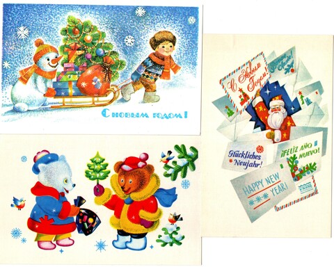 Подборка поздравительных новогодних открыток — 10 штук— разные художники, — чистые, без повторов времен СССР