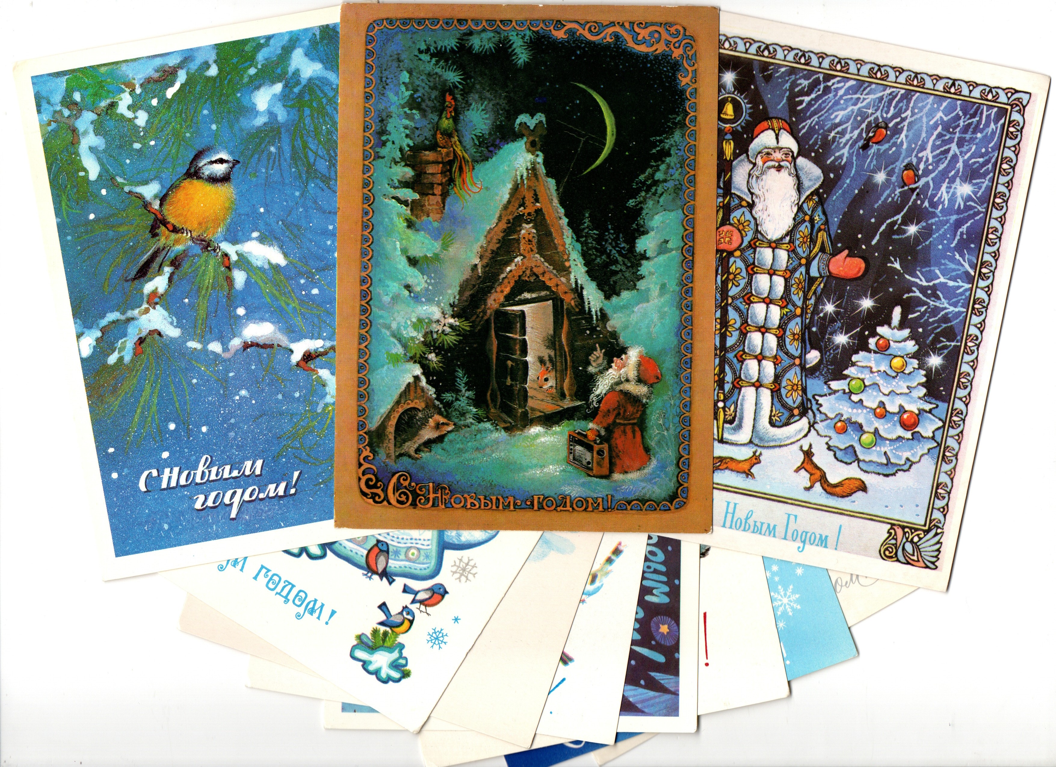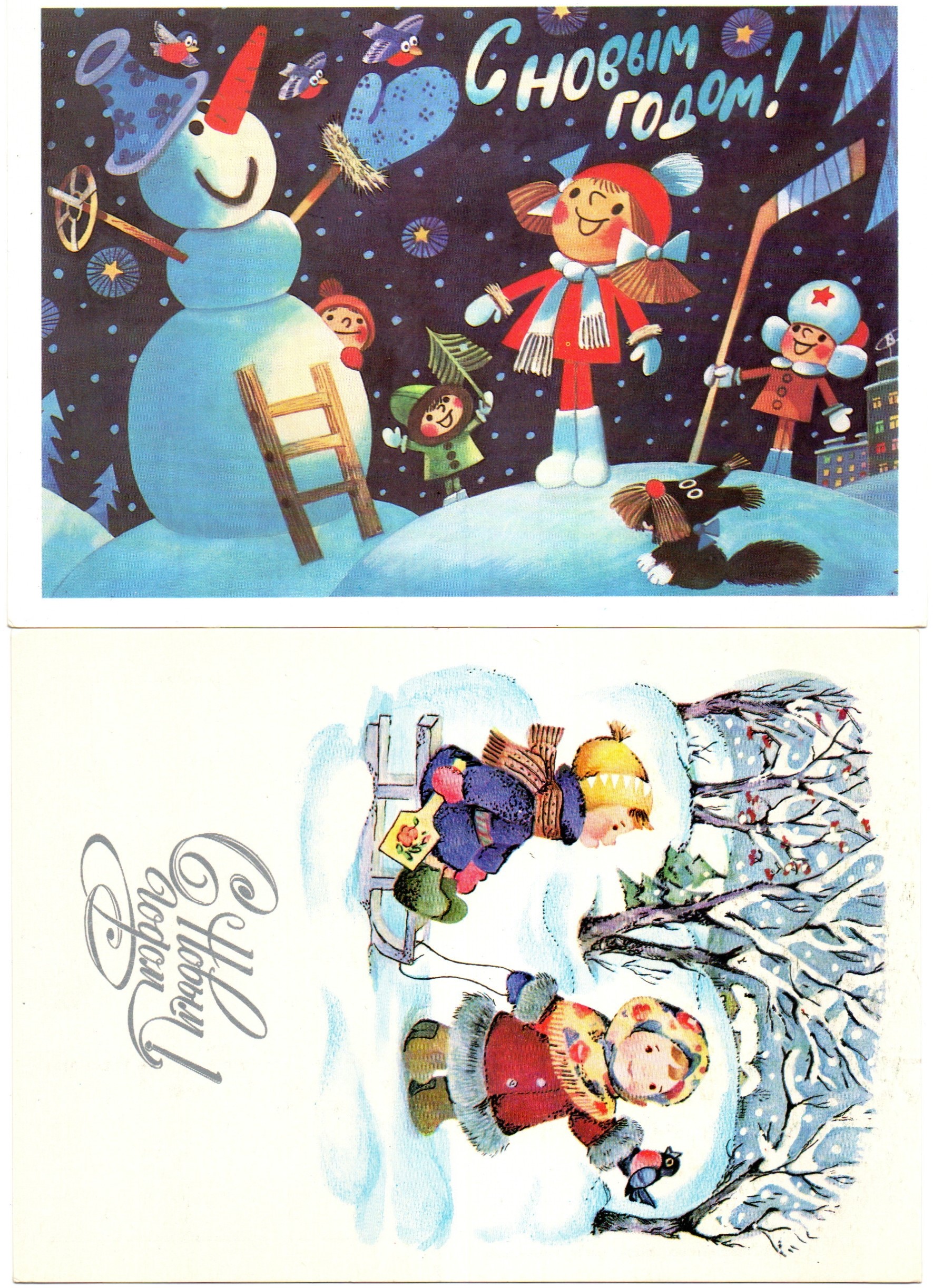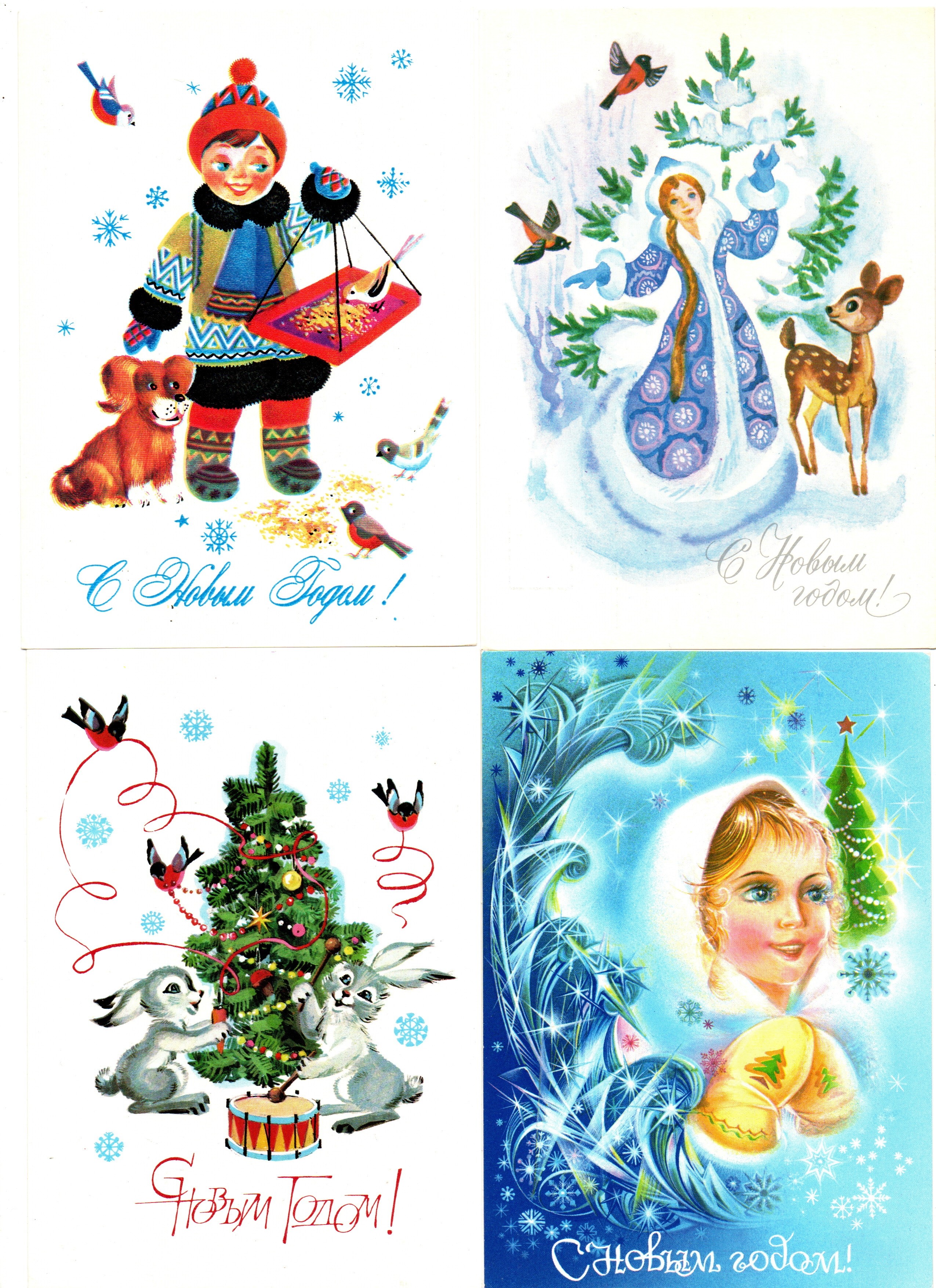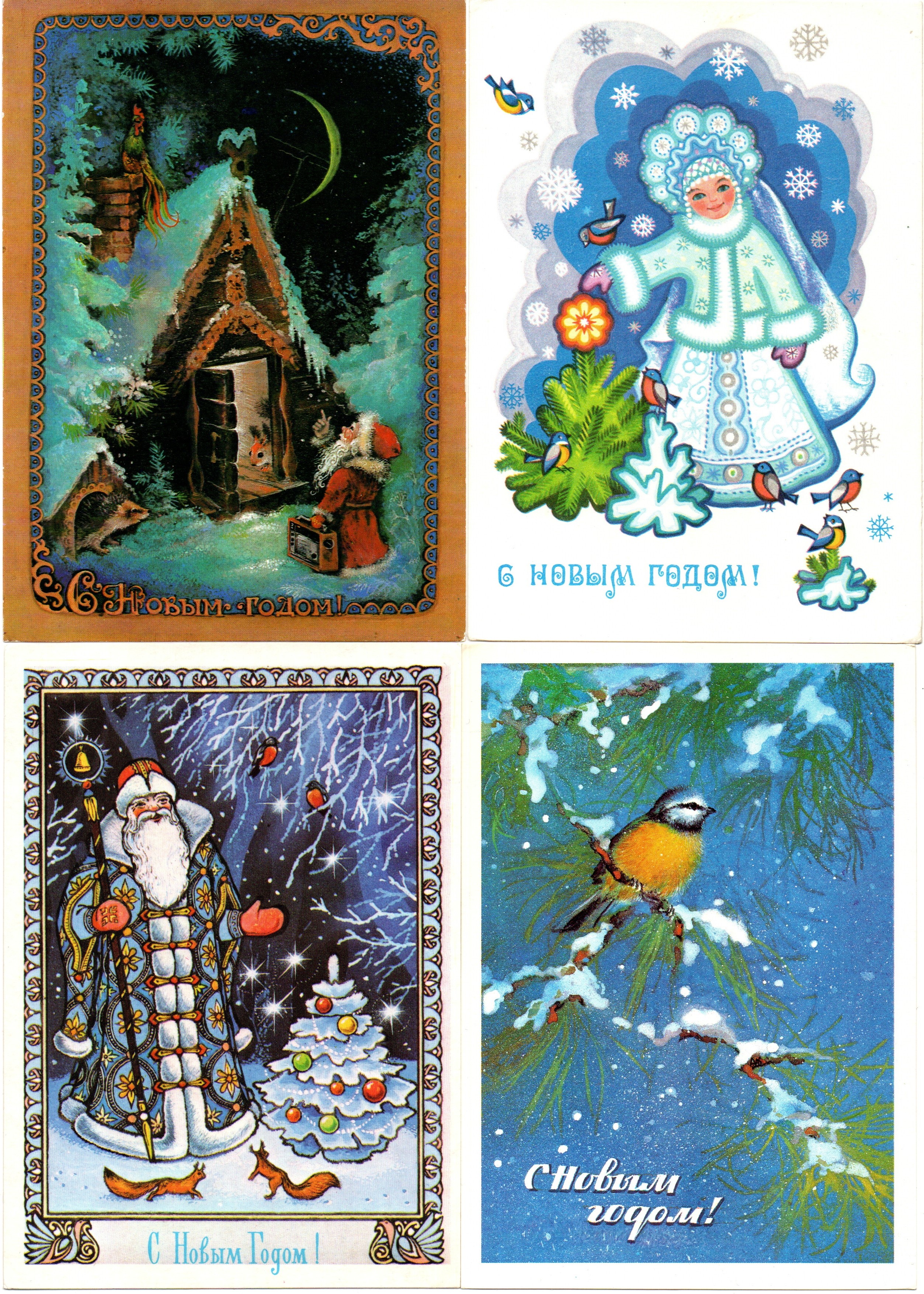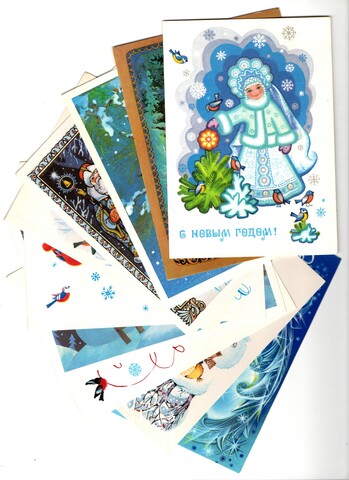 Подборка поздравительных Новогодних открыток — 10 штук— разные художники —чистые, без повторов, времен СССР