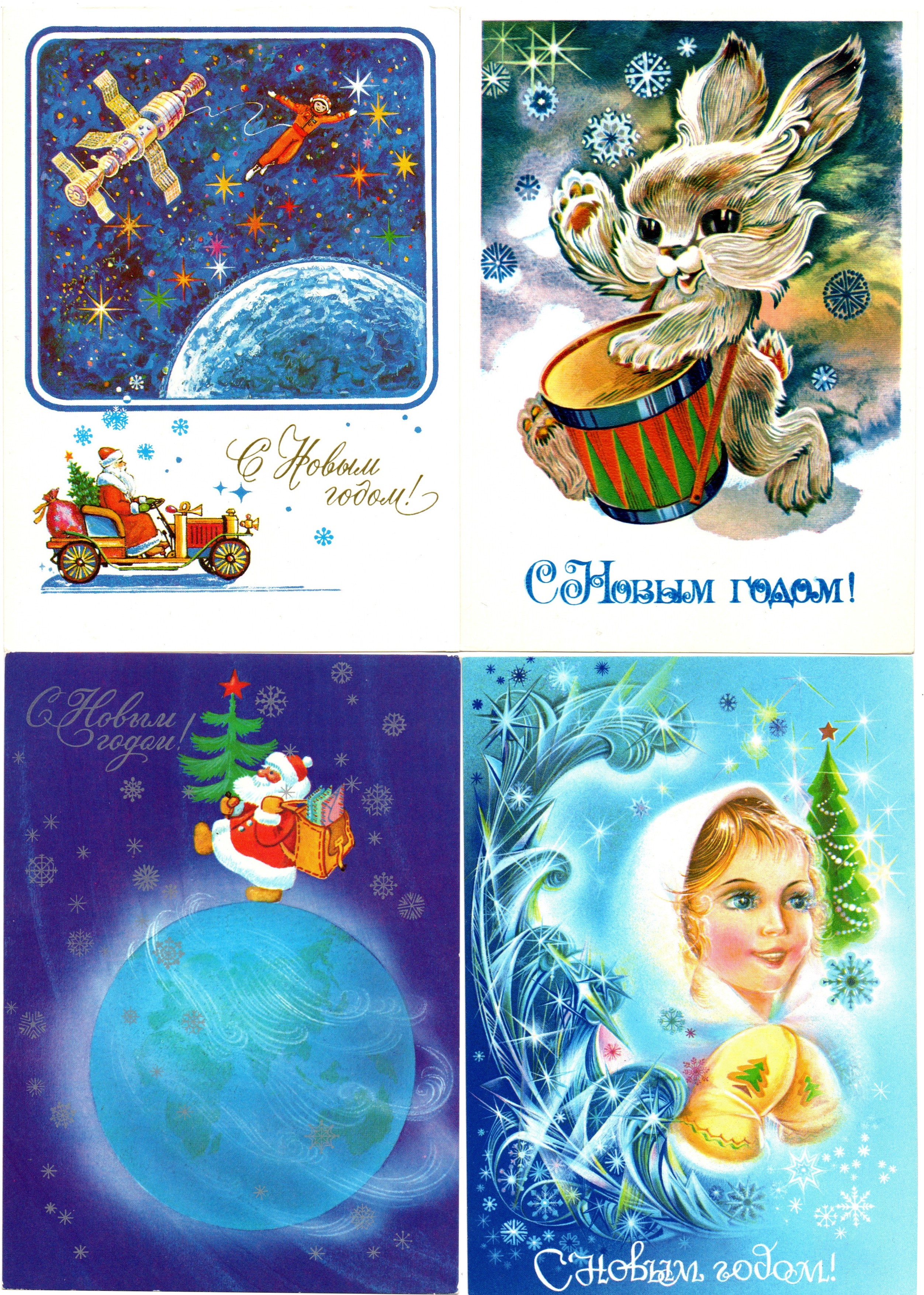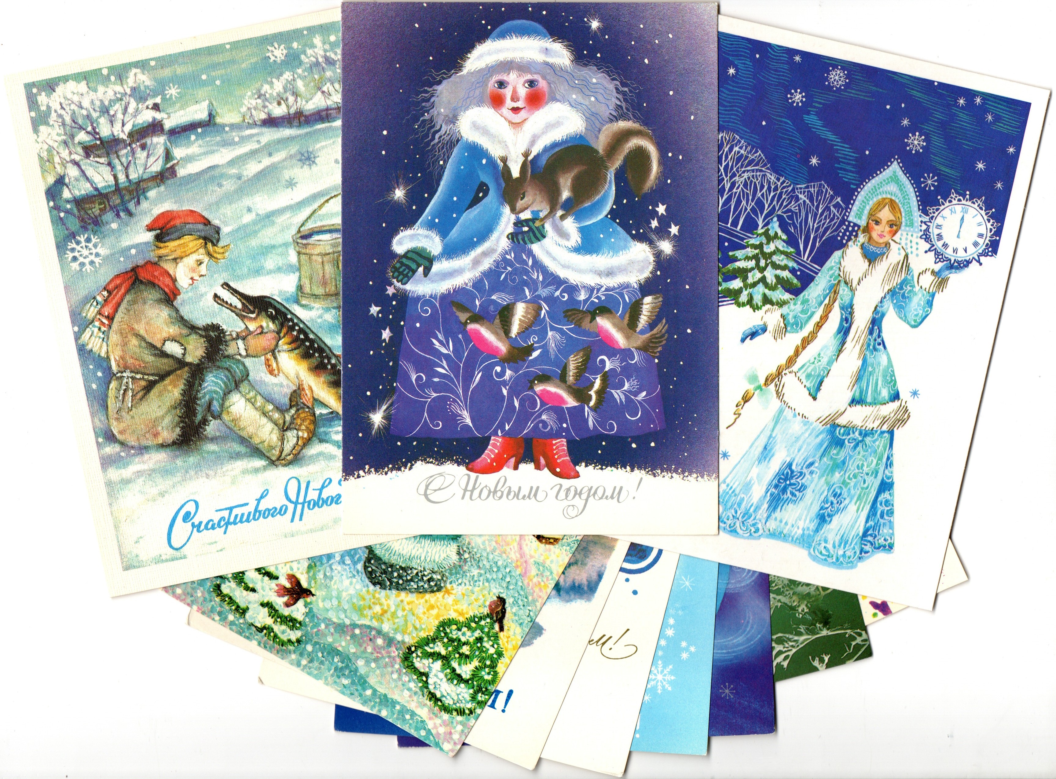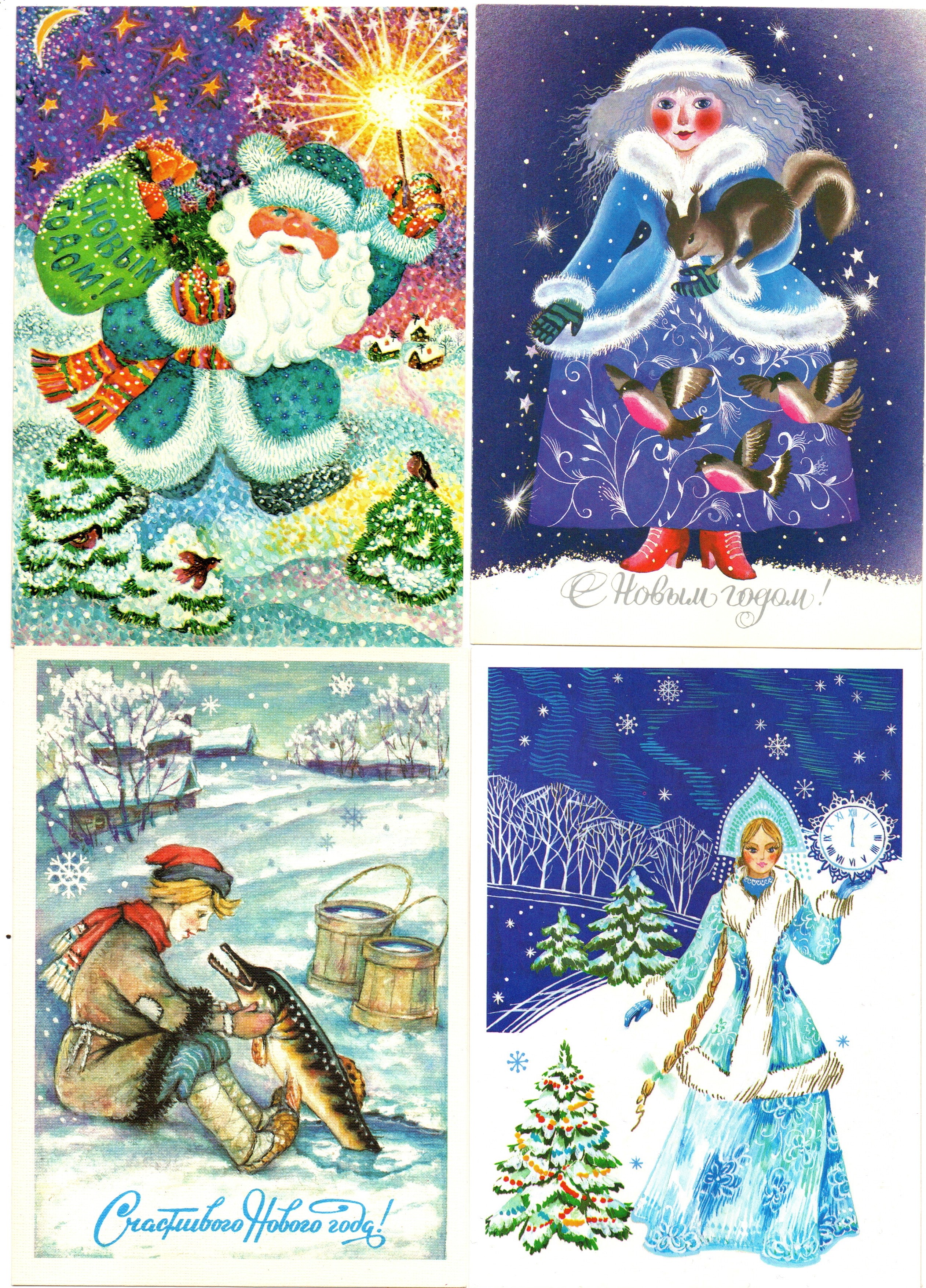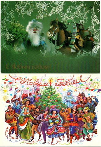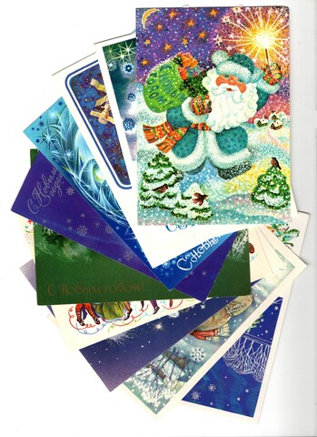 Подборка поздравительных Новогодних открыток — 10 штук— разные художники —чистые, без повторов, времен СССР