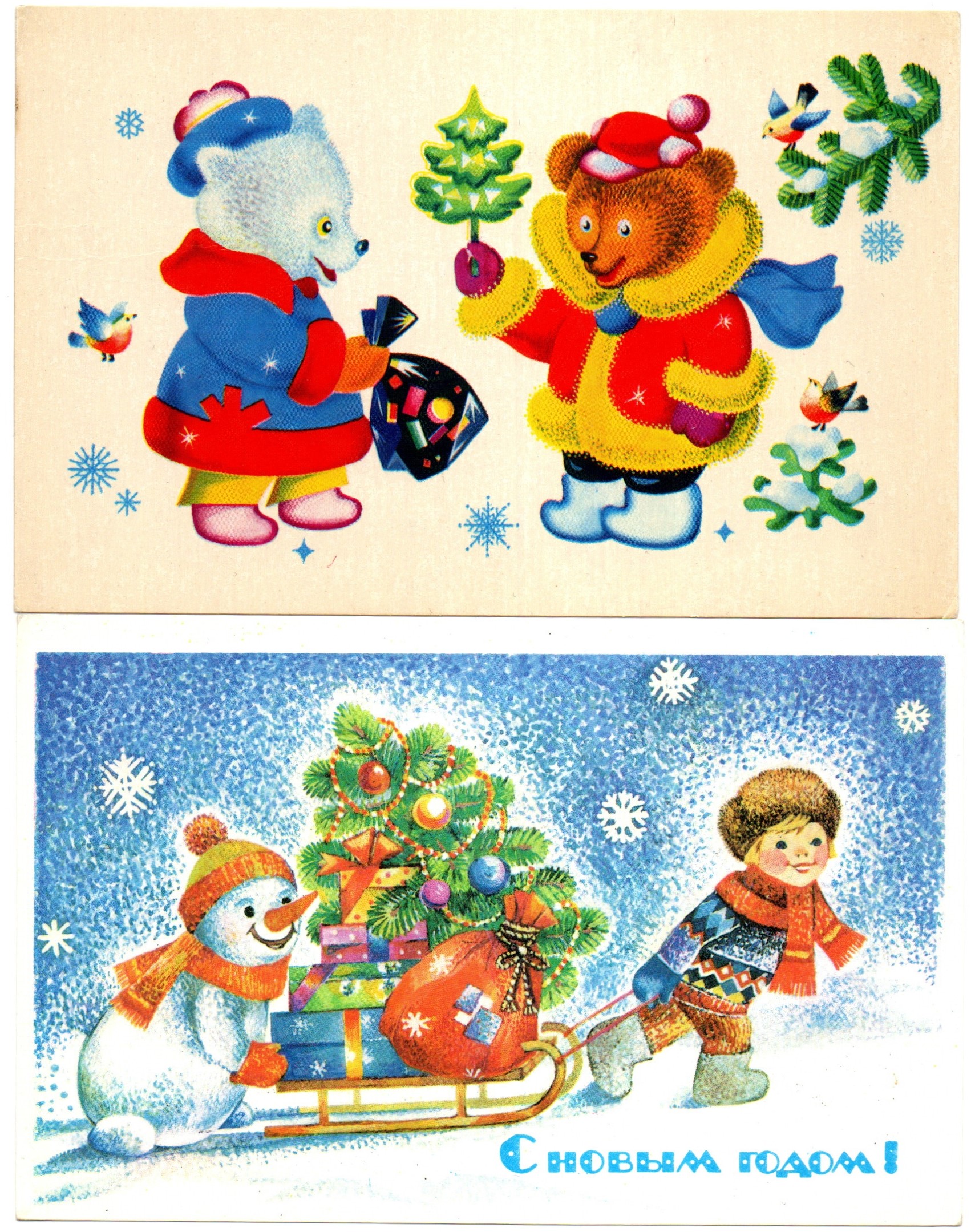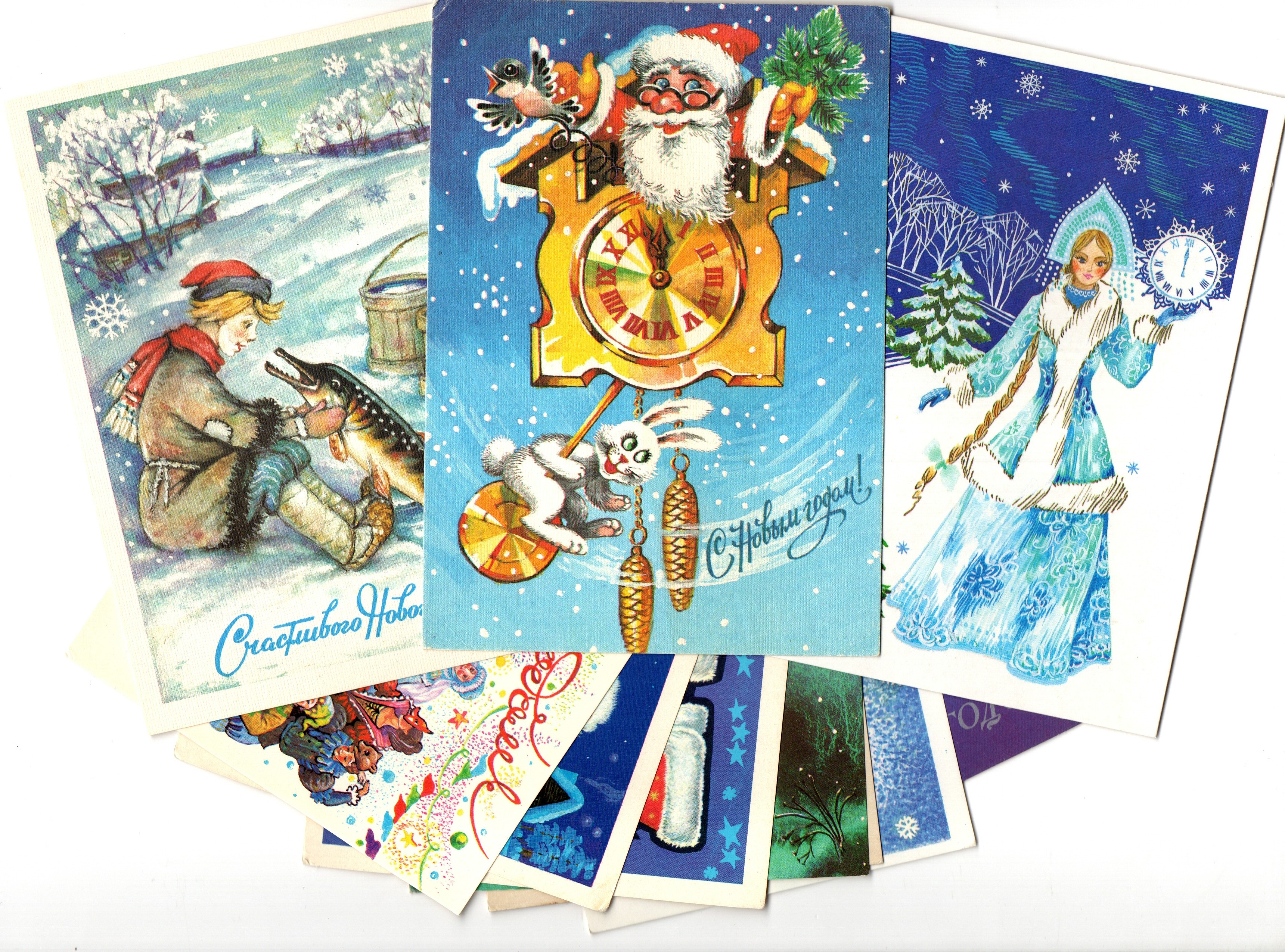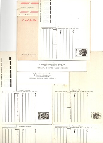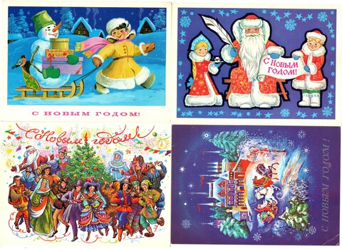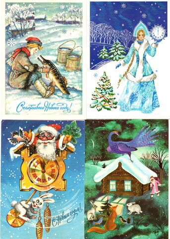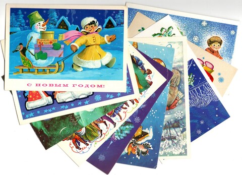 Подборка поздравительных Новогодних открыток — 10 штук— разные художники —чистые, без повторов, времен СССР