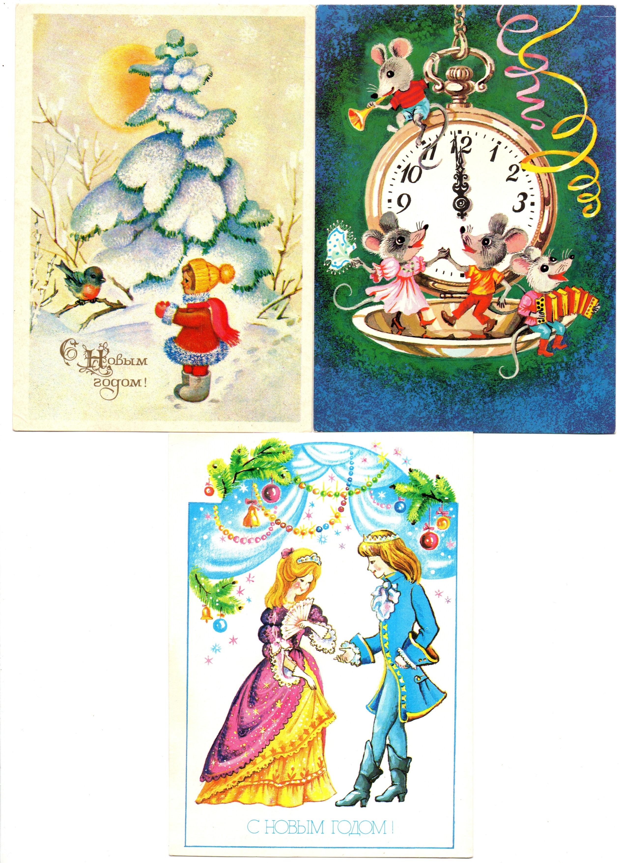 Подборка поздравительных новогодних открыток — 10 штук— разные художники, — чистые, без повторов времен СССР