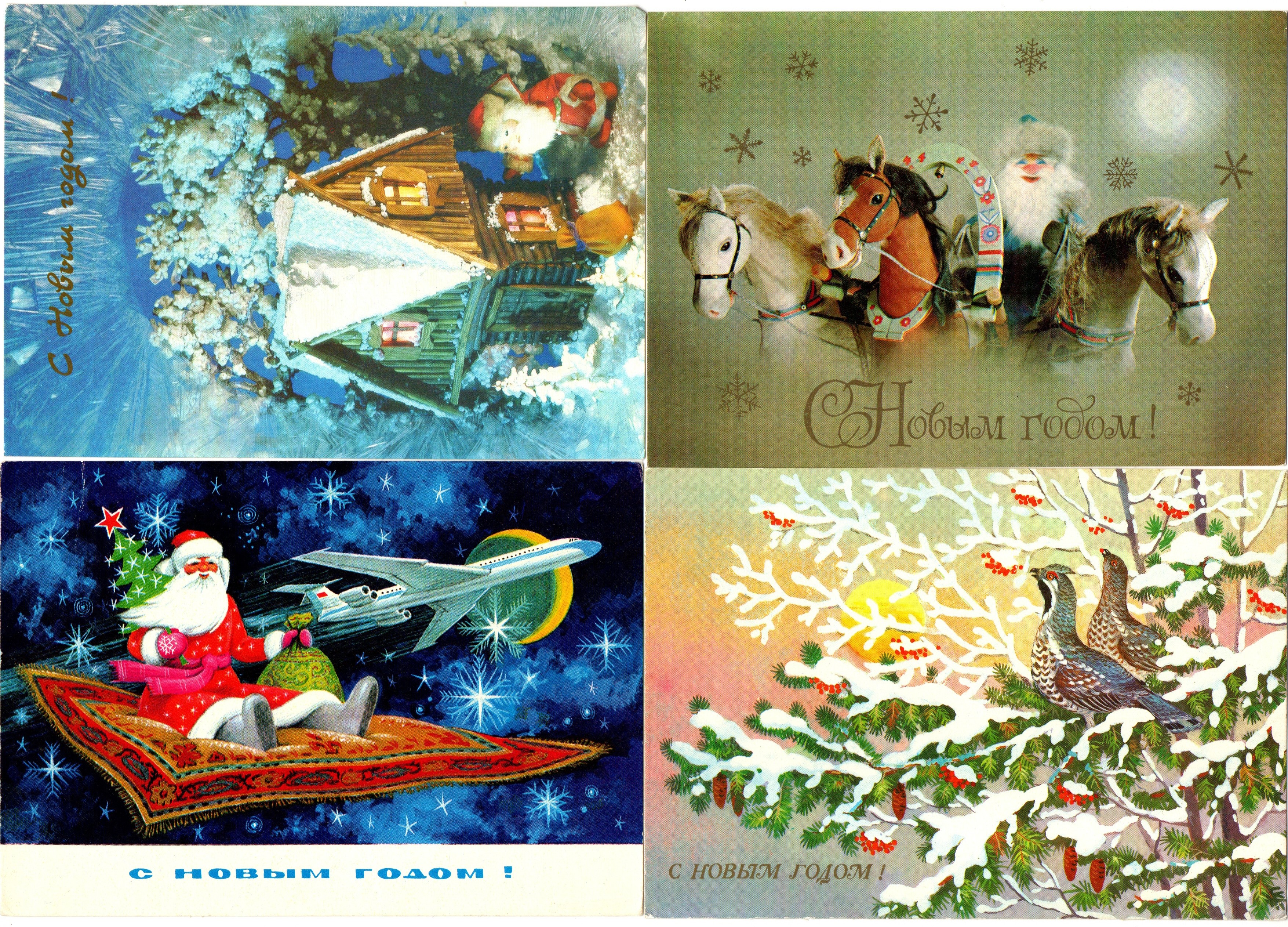 Подборка поздравительных новогодних открыток — 10 штук— разные художники, — чистые, без повторов времен СССР