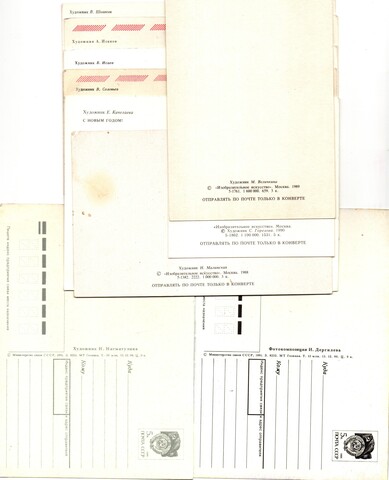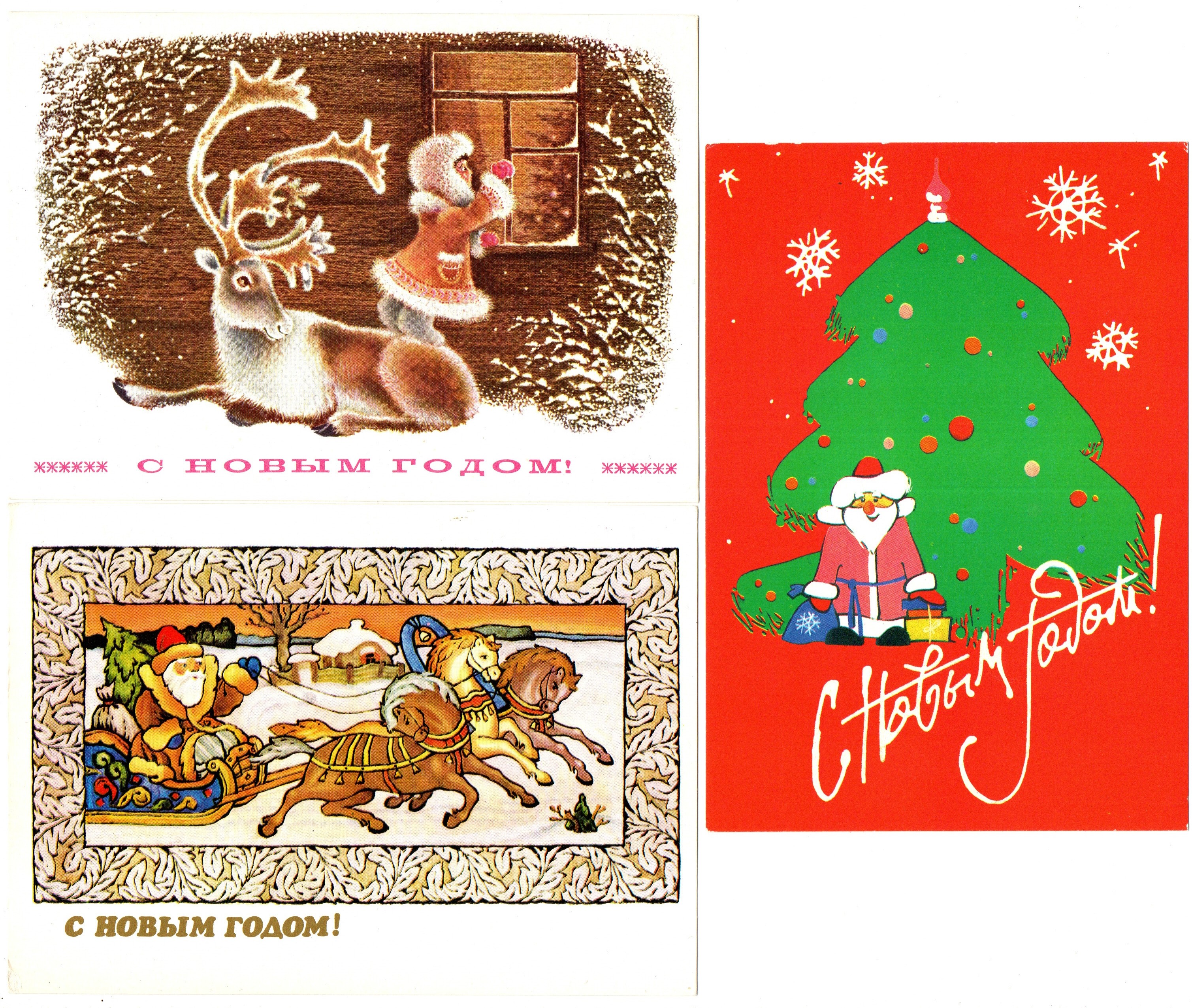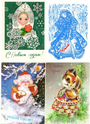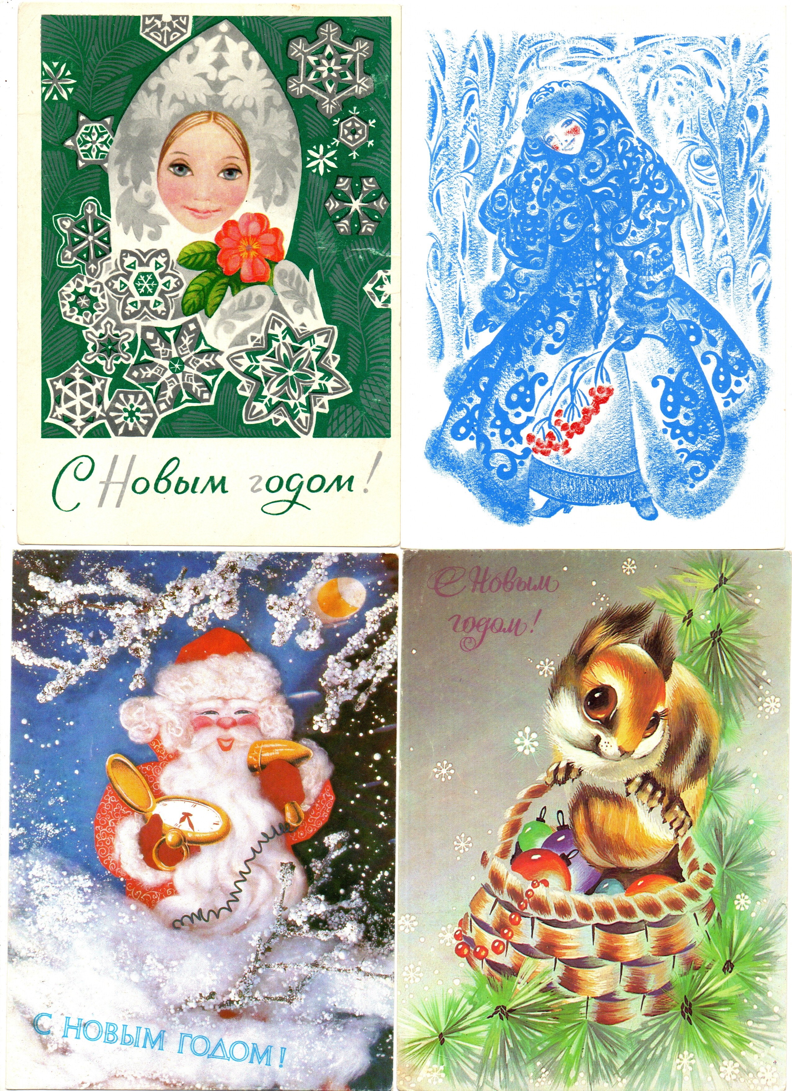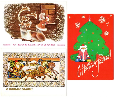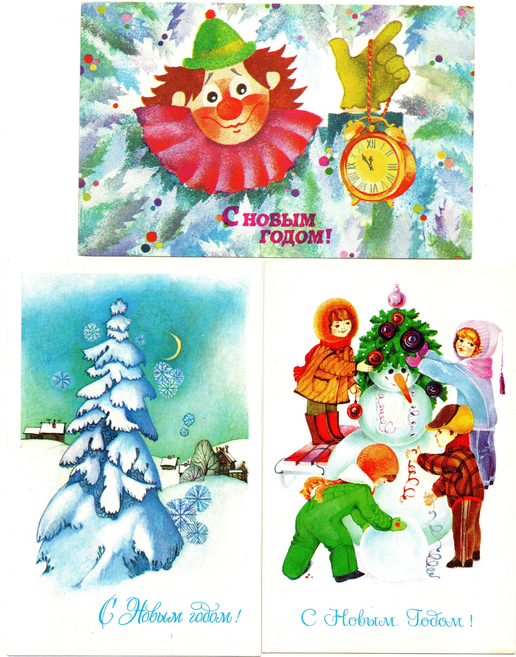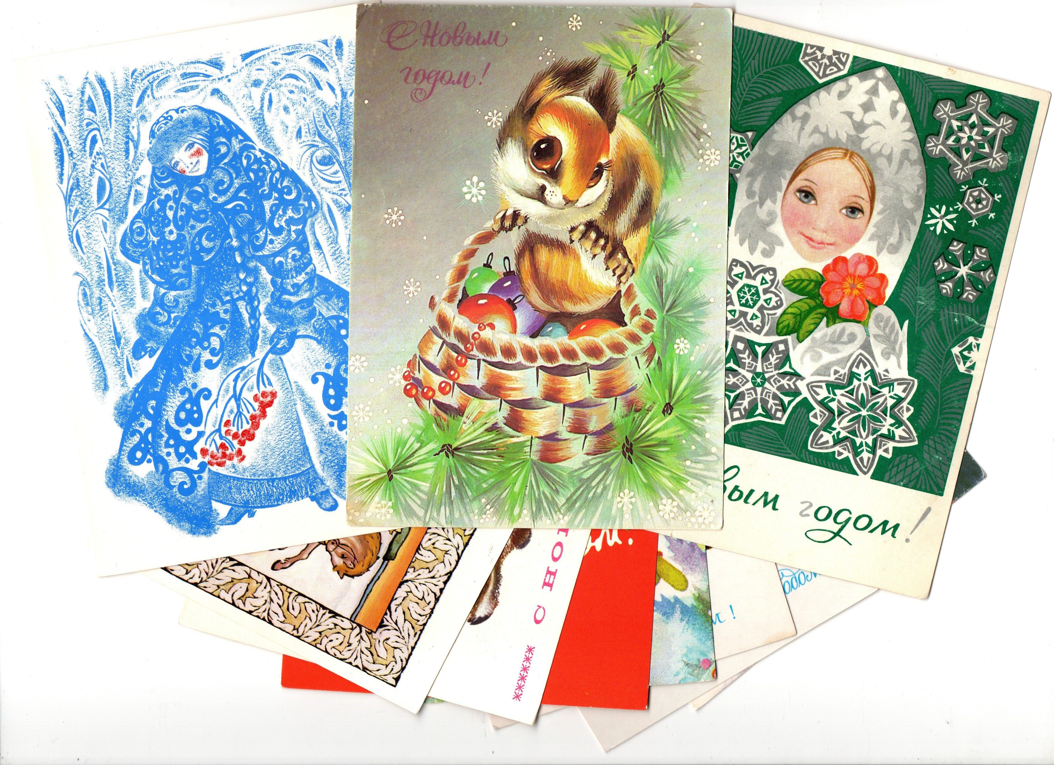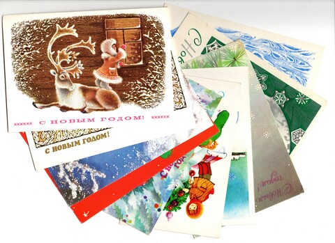 Подборка поздравительных Новогодних открыток — 10 штук— разные художники —чистые, без повторов, времен СССР