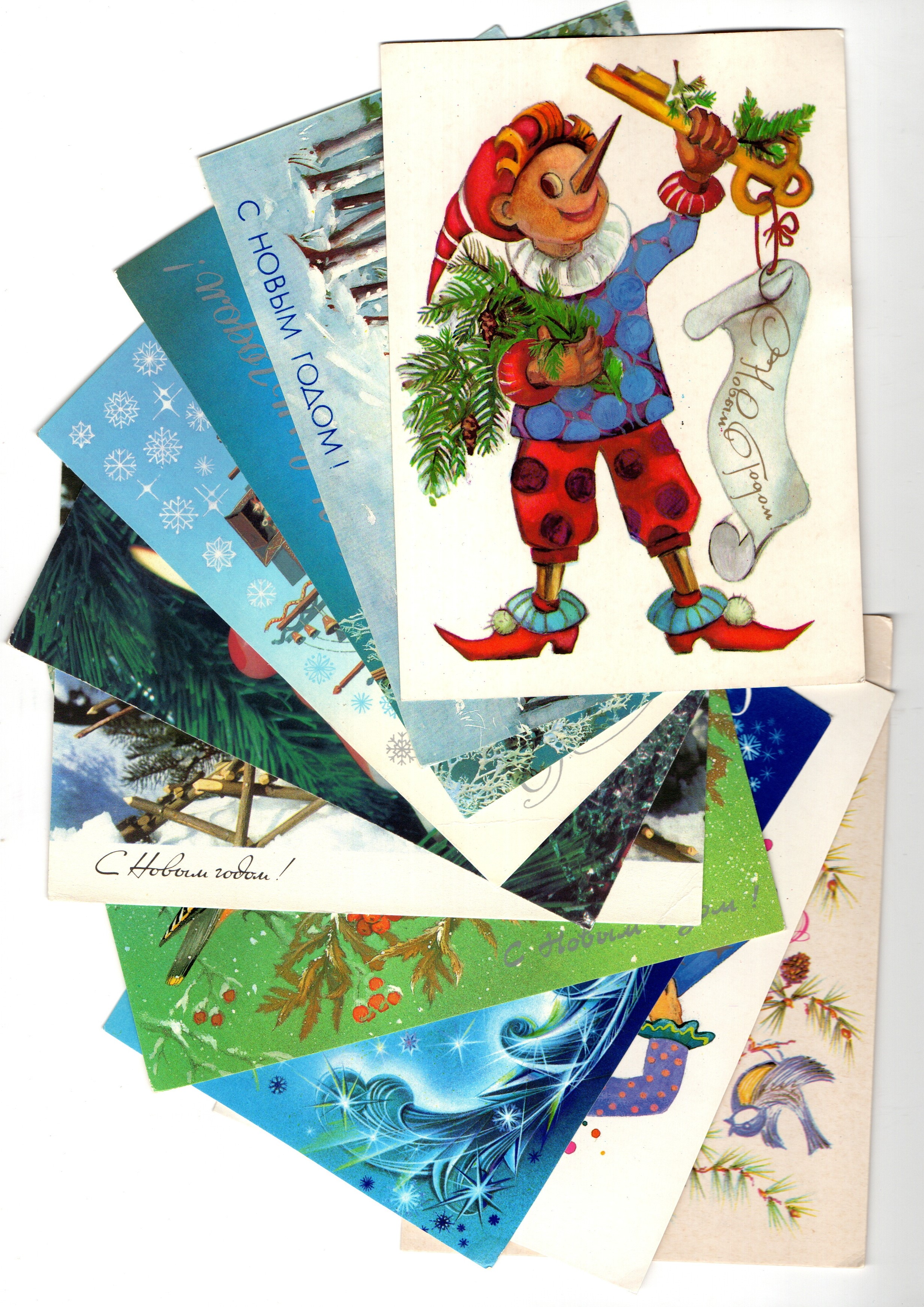 Подборка поздравительных новогодних открыток — 10 штук— разные художники, — чистые, без повторов времен СССР. Винтажные новогодние открытки времён СССР это отличный выбор для создания новогоднего настроения! Уникальная подборка из 10 праздничных открыток от разных советских художников под любое настроение! Без повторений – каждая открытка эксклюзивна! Отлично подойдет в личную коллекцию и на подарок коллекционерам открыток.