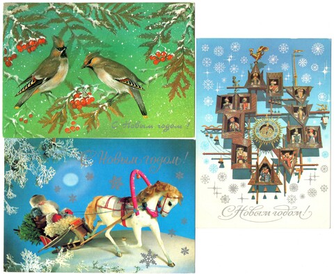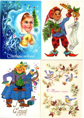 Подборка поздравительных новогодних открыток — 10 штук— разные художники, — чистые, без повторов времен СССР