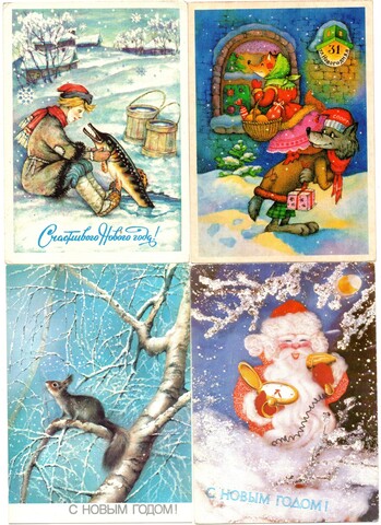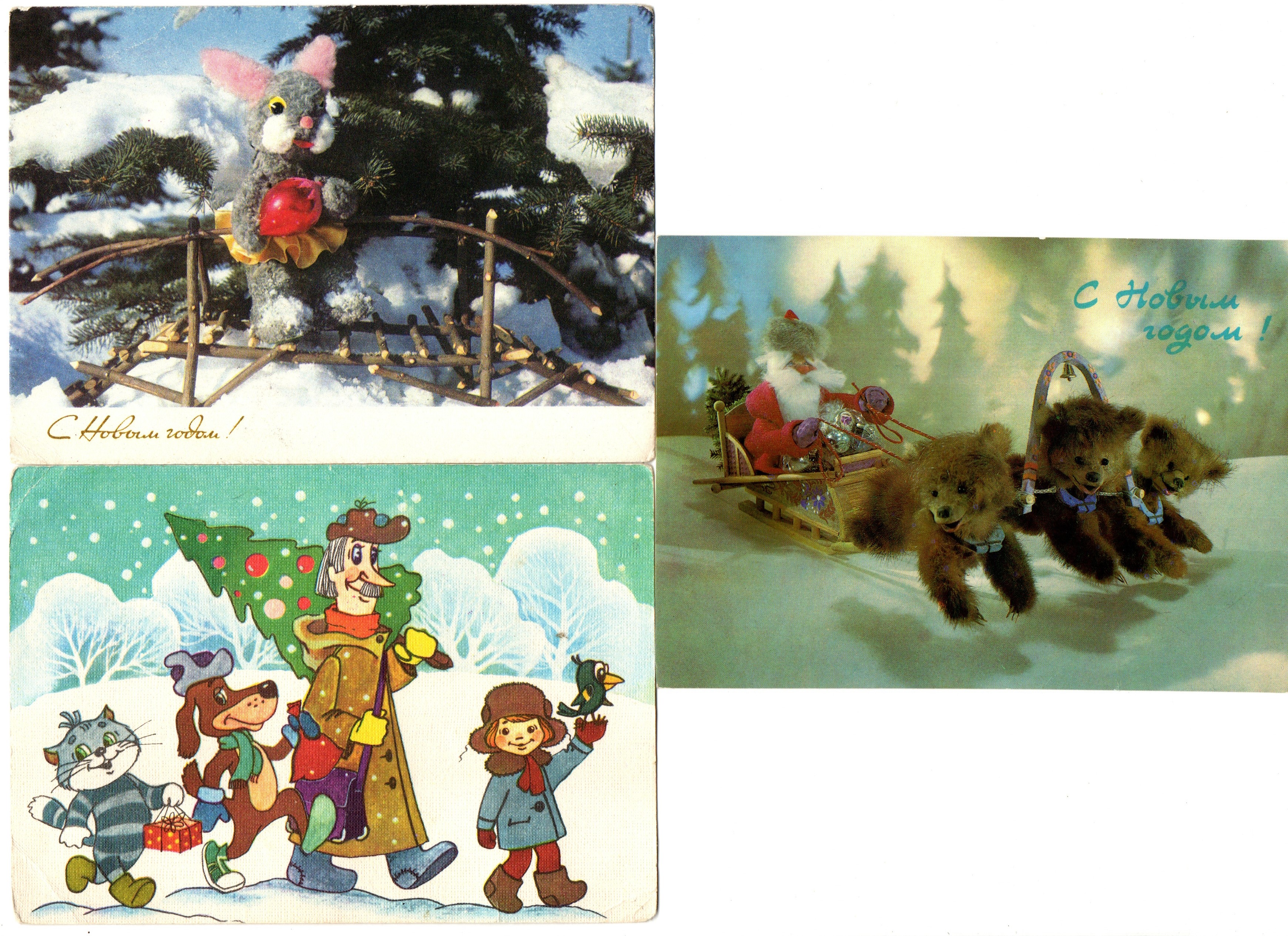 Подборка поздравительных новогодних открыток — 10 штук— разные художники, — чистые, без повторов времен СССР