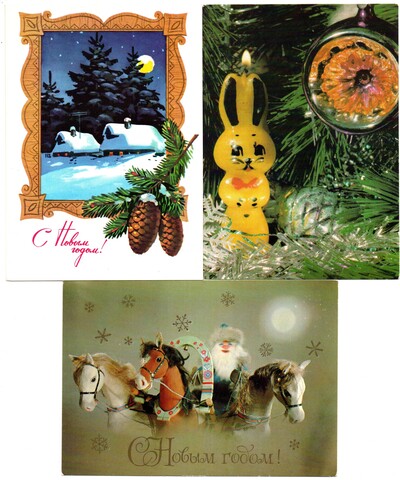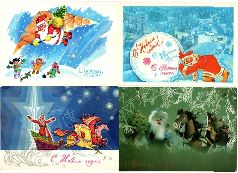 Подборка поздравительных новогодних открыток — 10 штук— разные художники, — чистые, без повторов времен СССР
