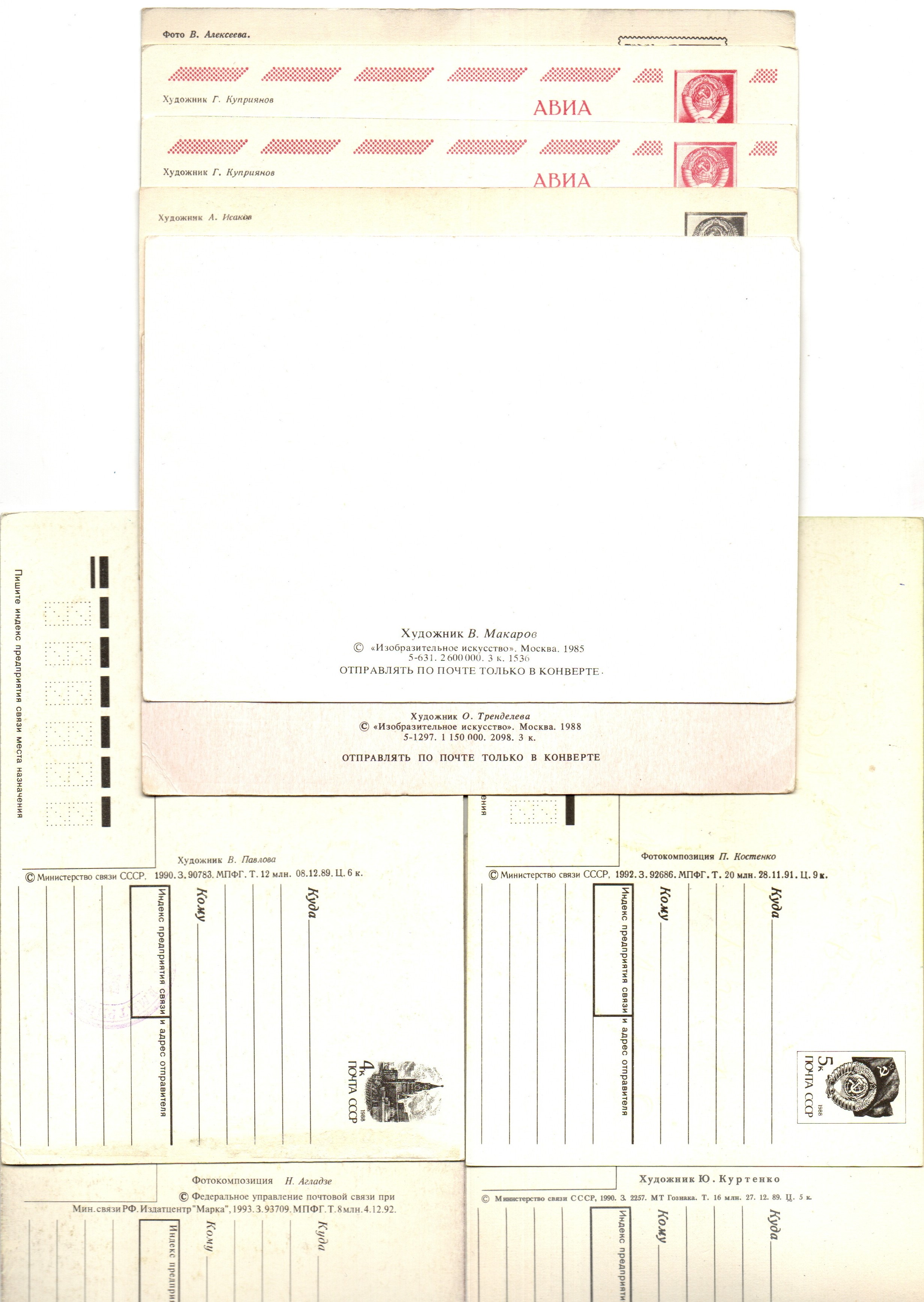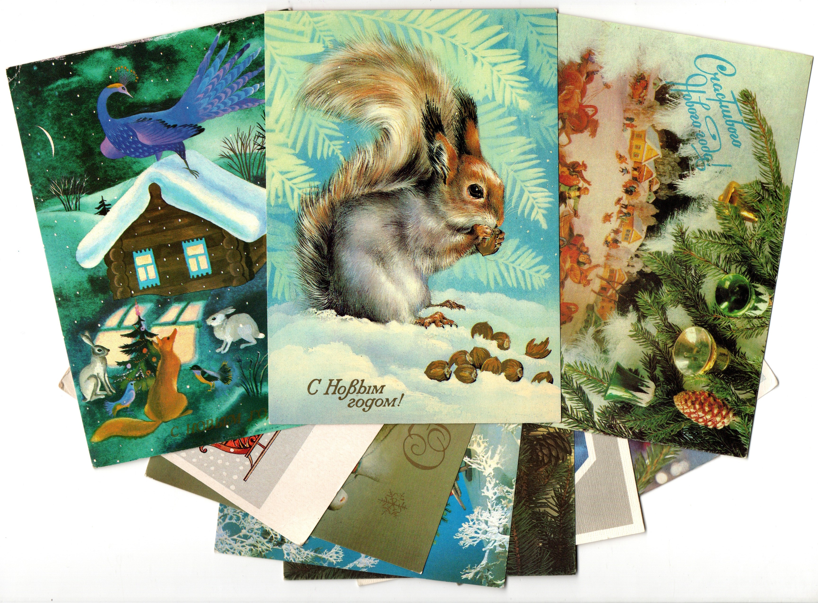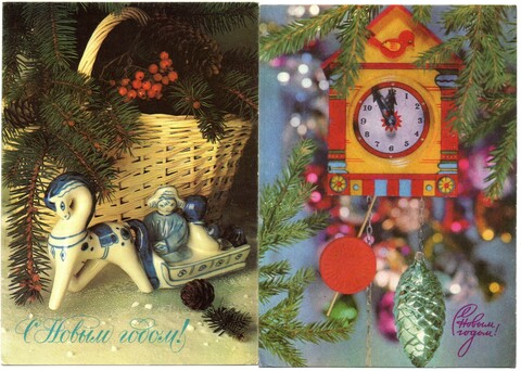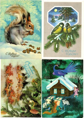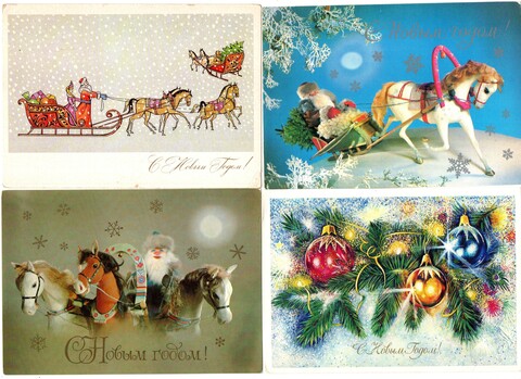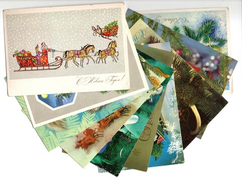 Подборка поздравительных Новогодних открыток — 10 штук— разные художники —чистые, без повторов, времен СССР