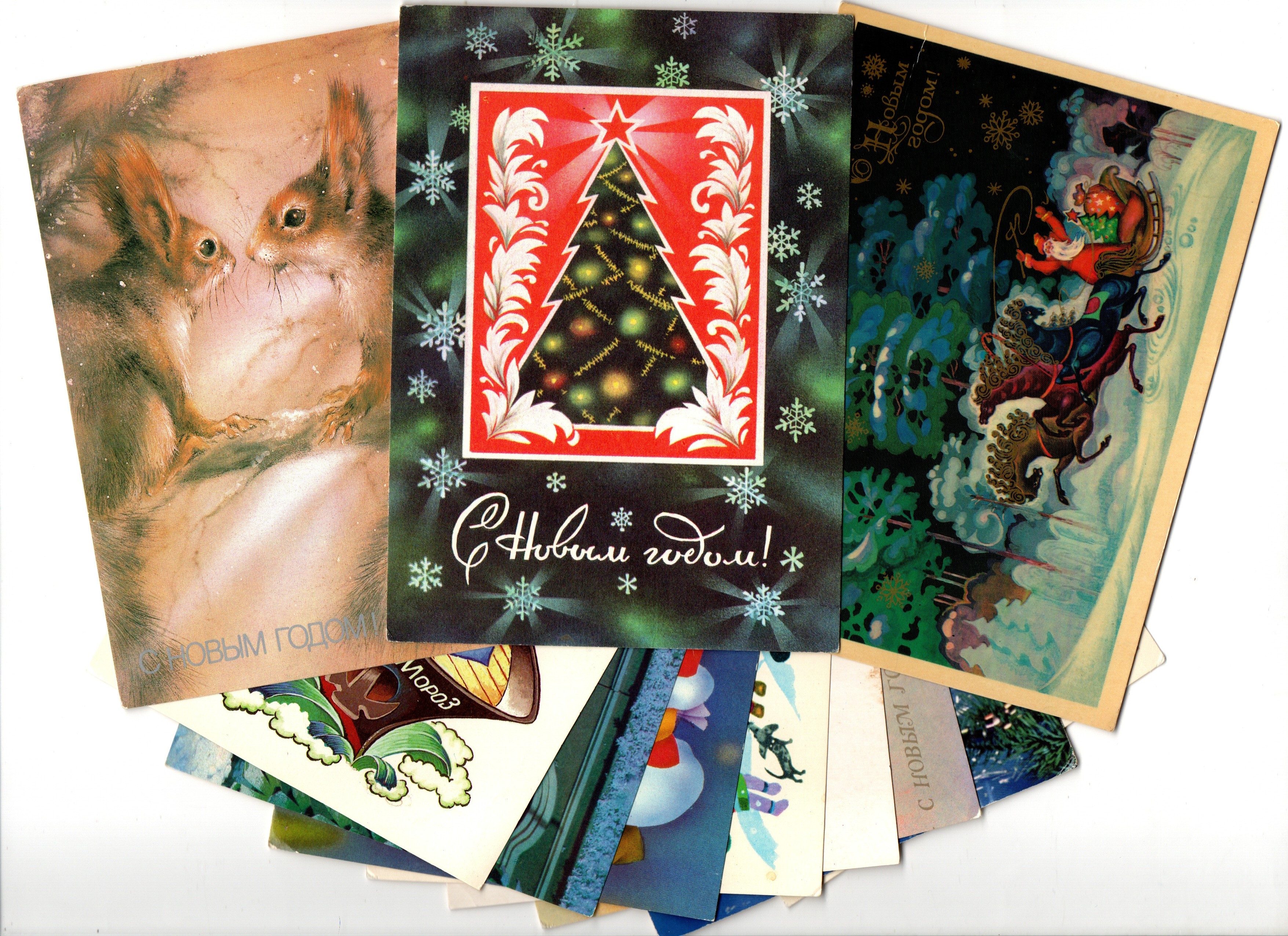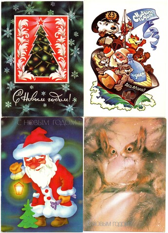 Подборка поздравительных новогодних открыток — 11 штук— разные художники, Четвериков и др — чистые, без повторов времен СССР