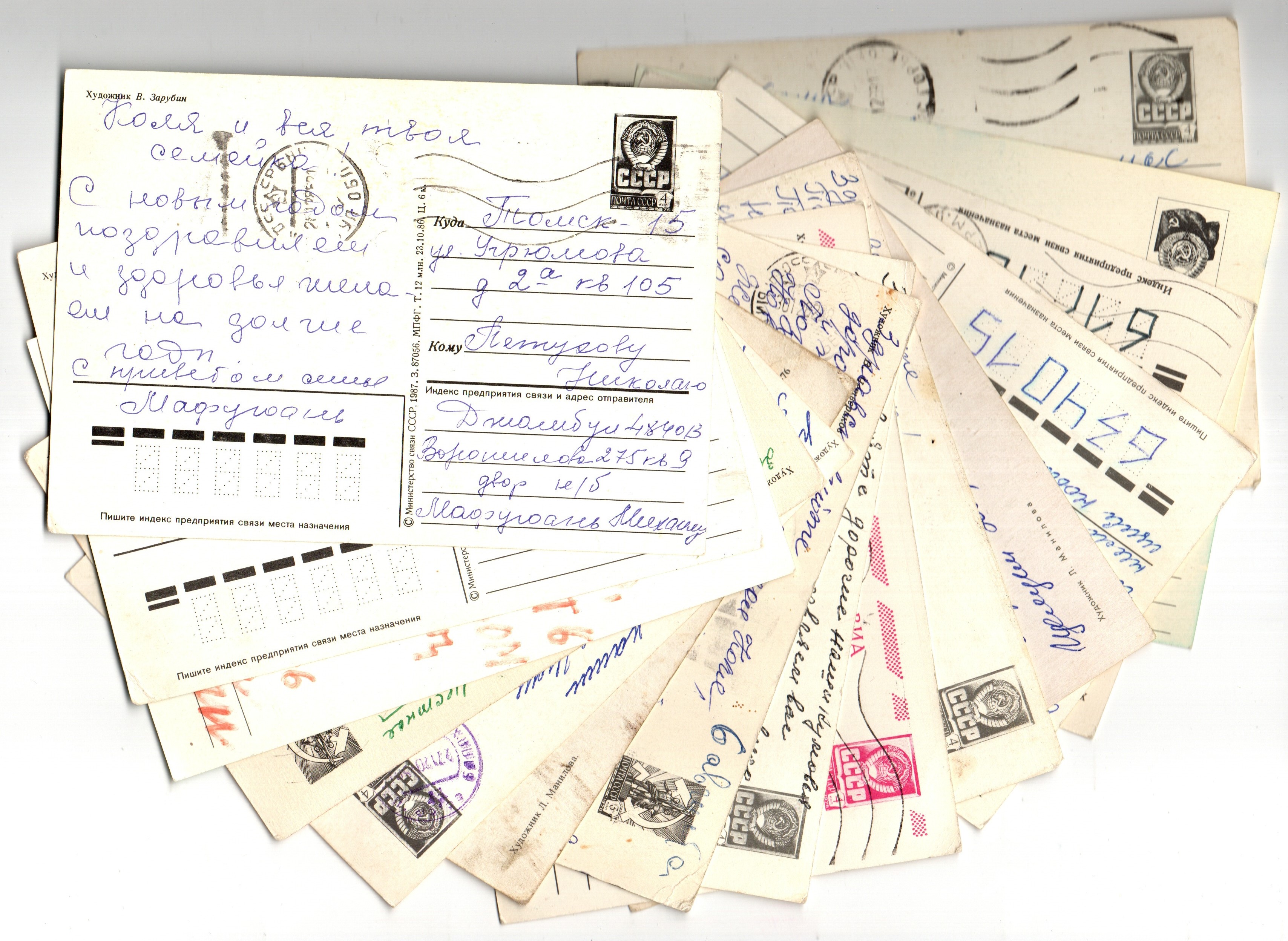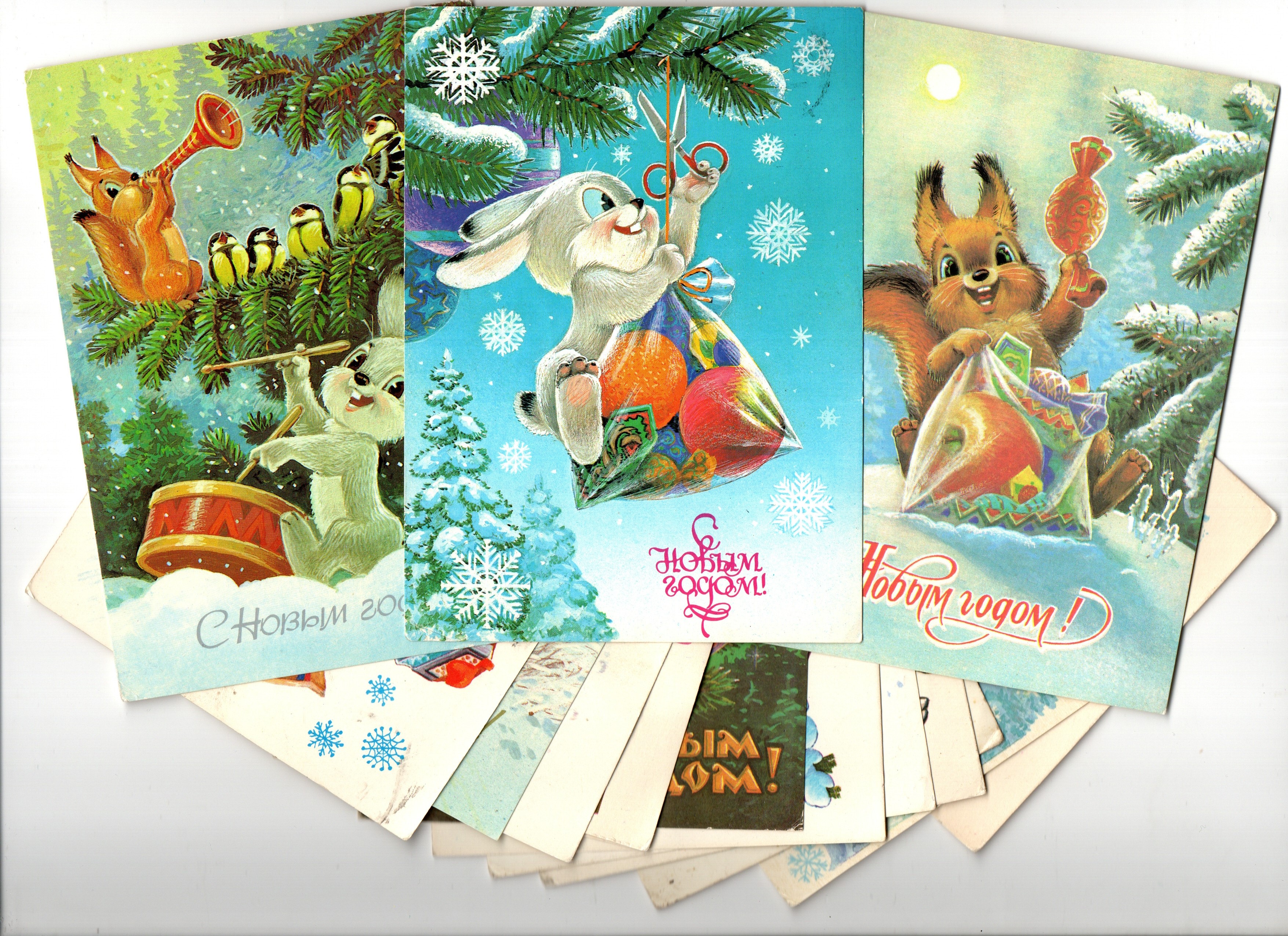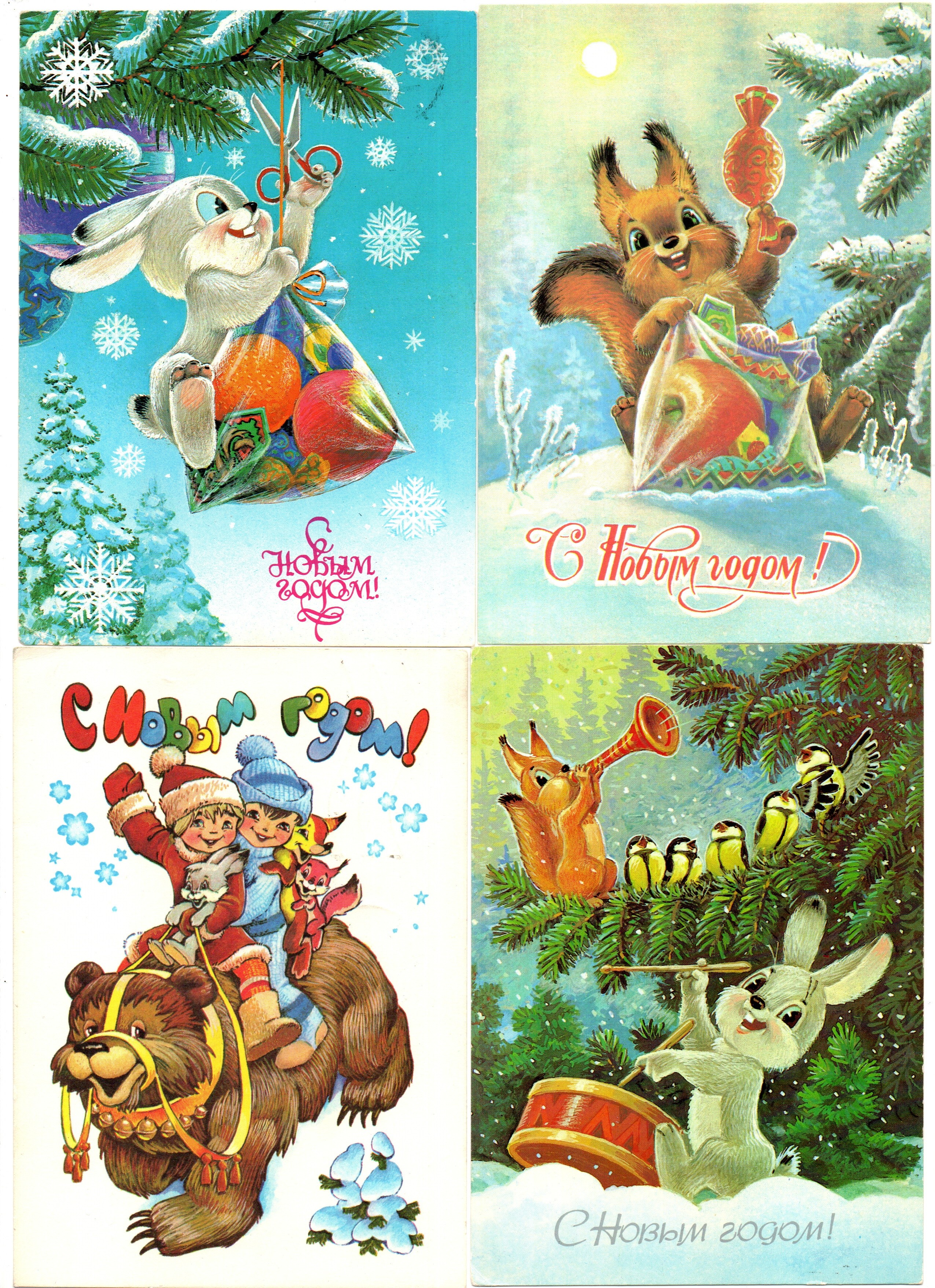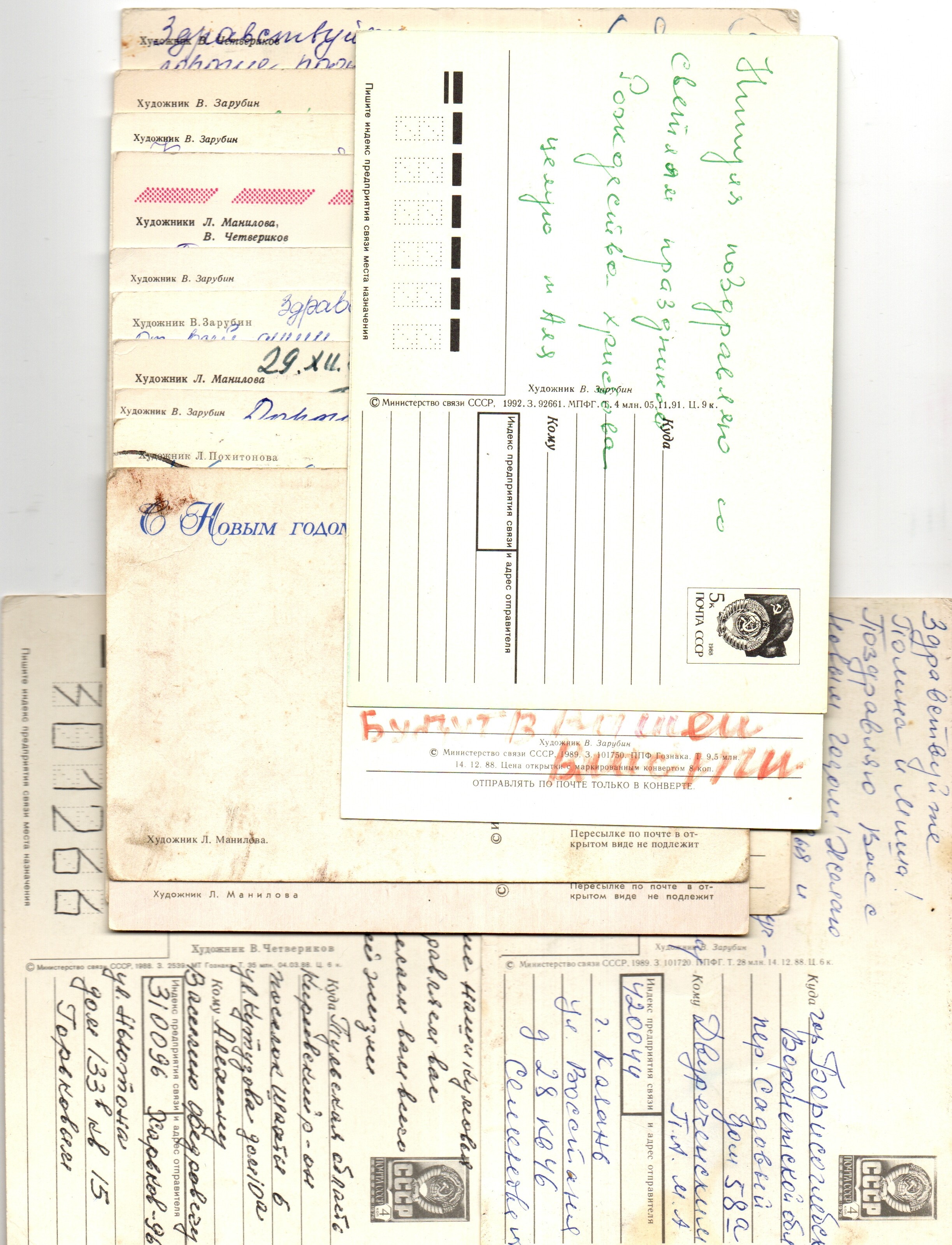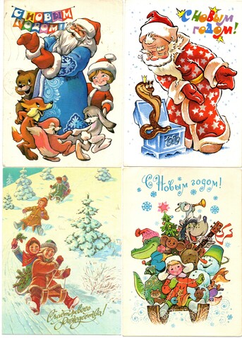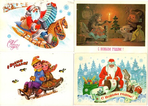 Подборка поздравительных новогодних открыток — 15 штук— художники Зарубин, Манилова, Четвериков — подписаны, без повторов времен СССР