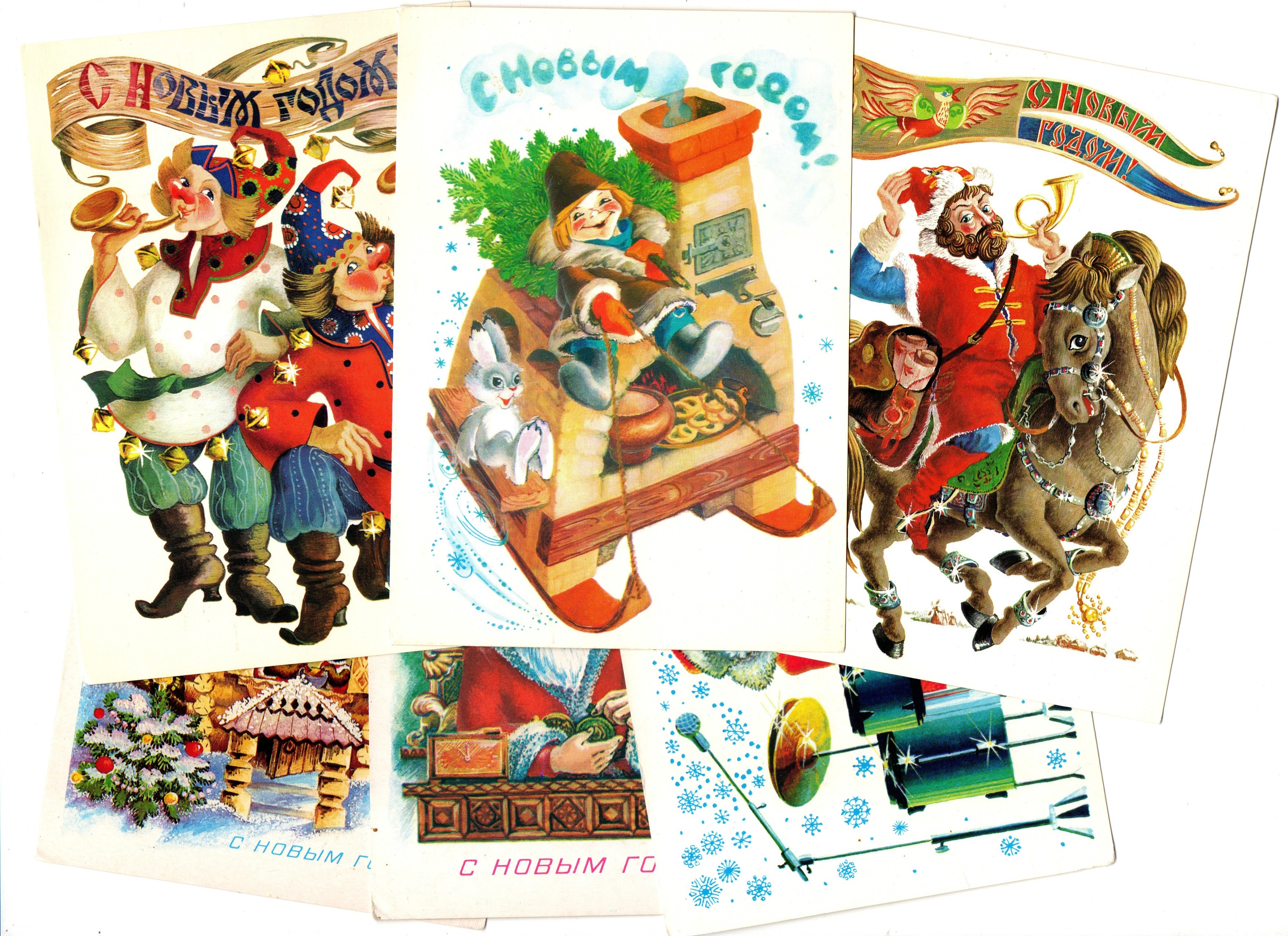 Подборка поздравительных новогодних открыток — 6 штук— Художник Похитонова — чистые, без повторов времен СССР