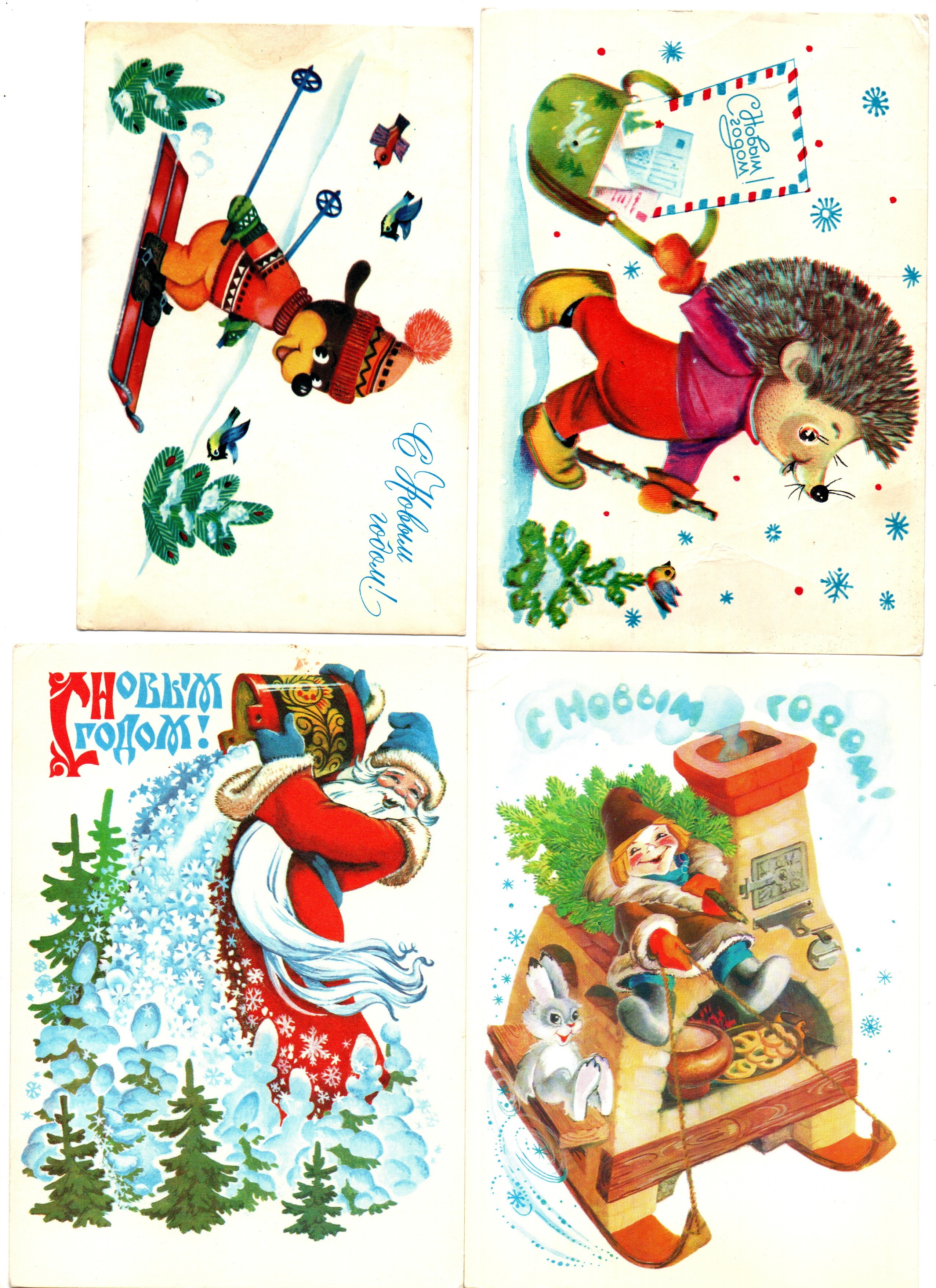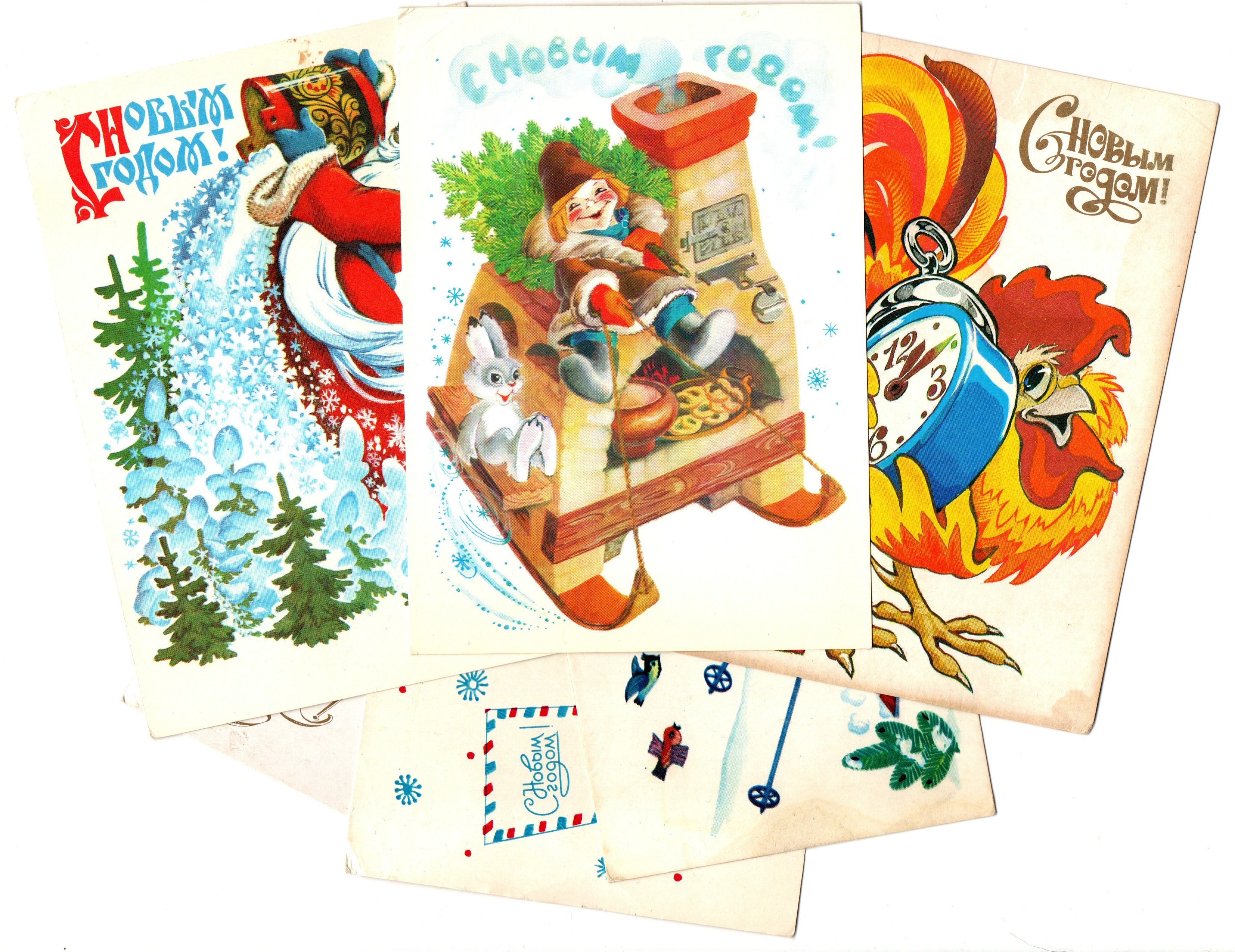 Подборка поздравительных Новогодних открыток — 6 штук— разные художники —чистые, без повторов, времен СССР
