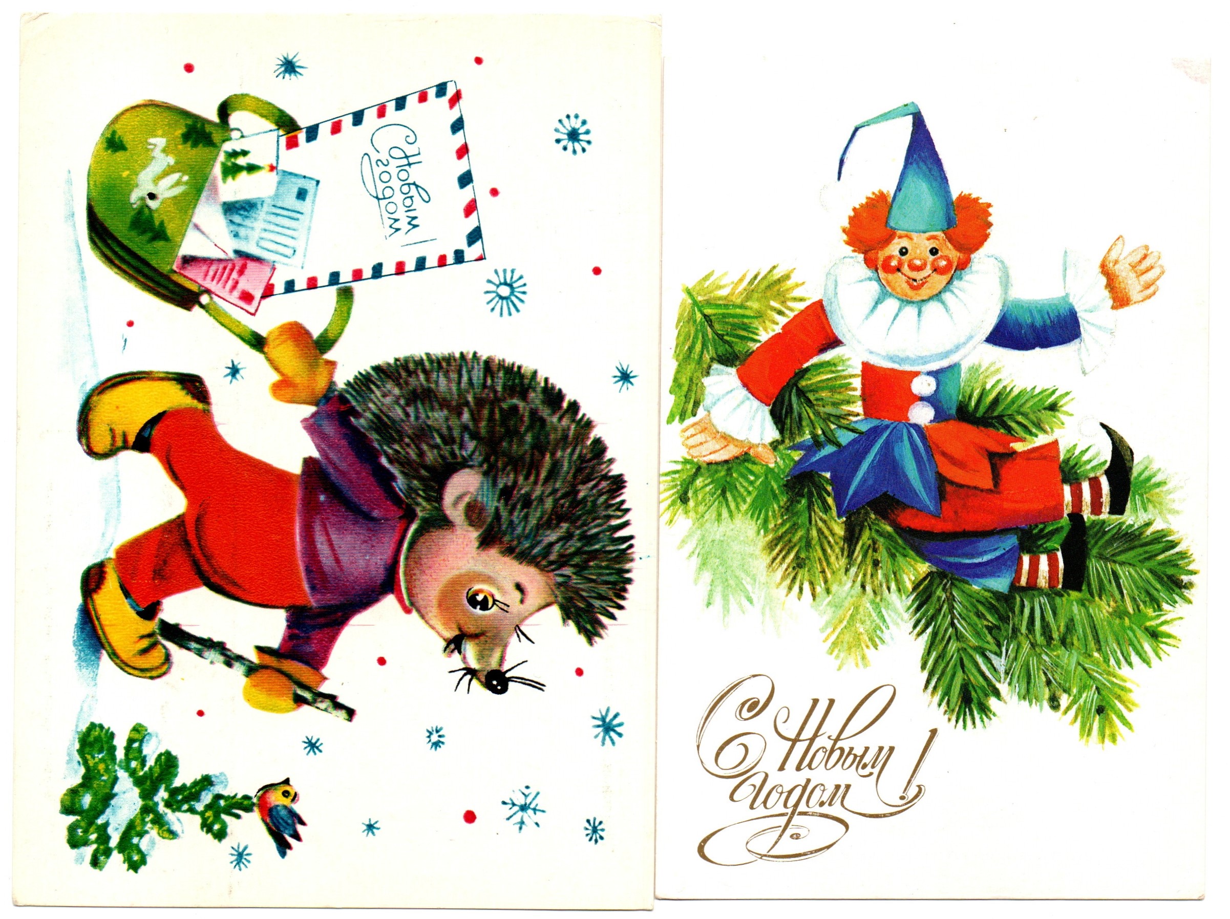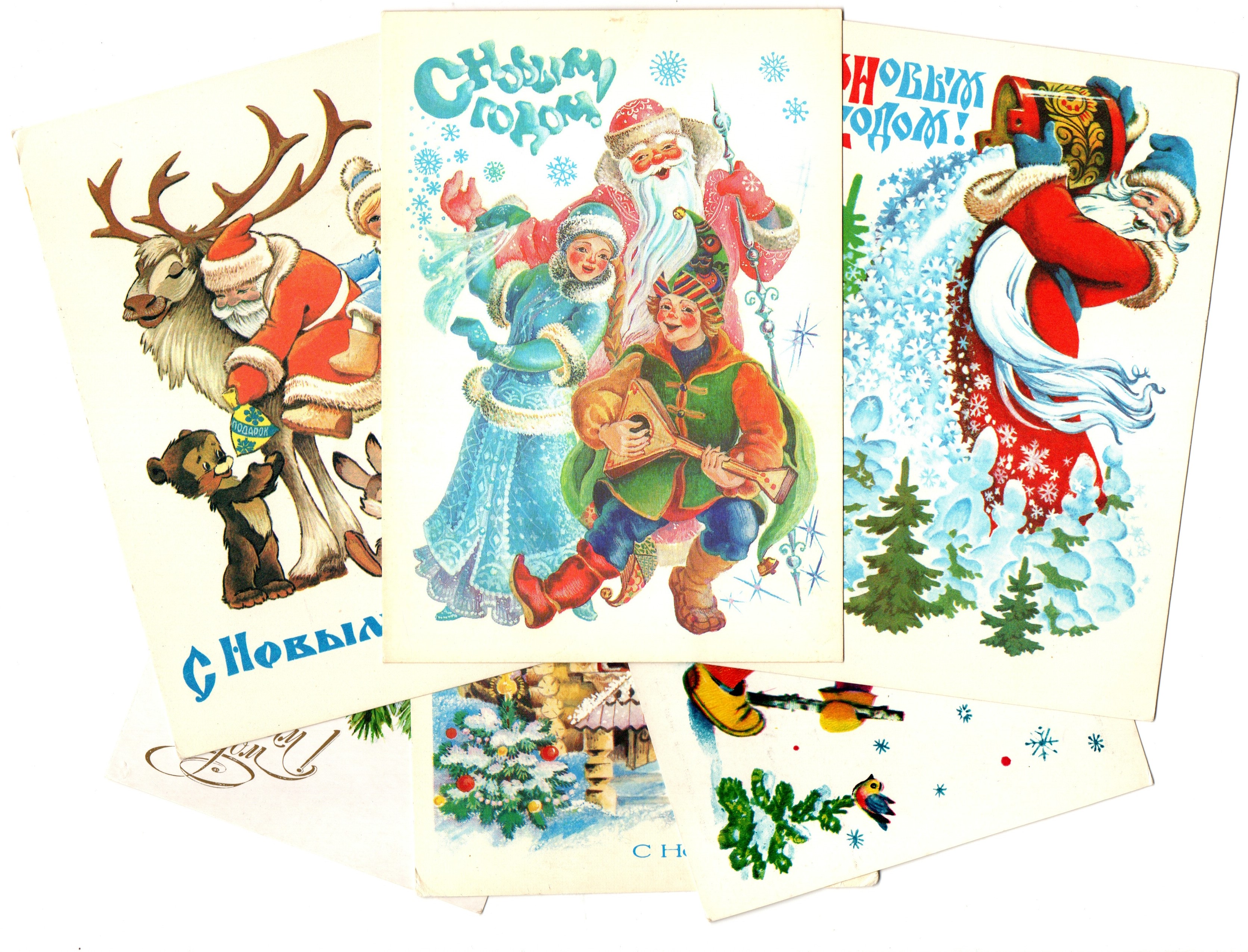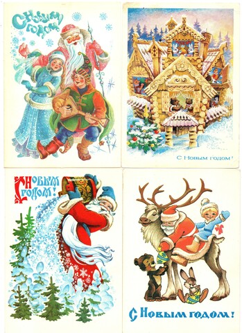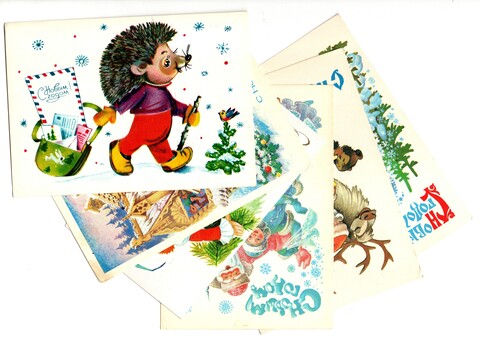 Подборка поздравительных Новогодних открыток — 6 штук— разные художники —чистые, без повторов, времен СССР