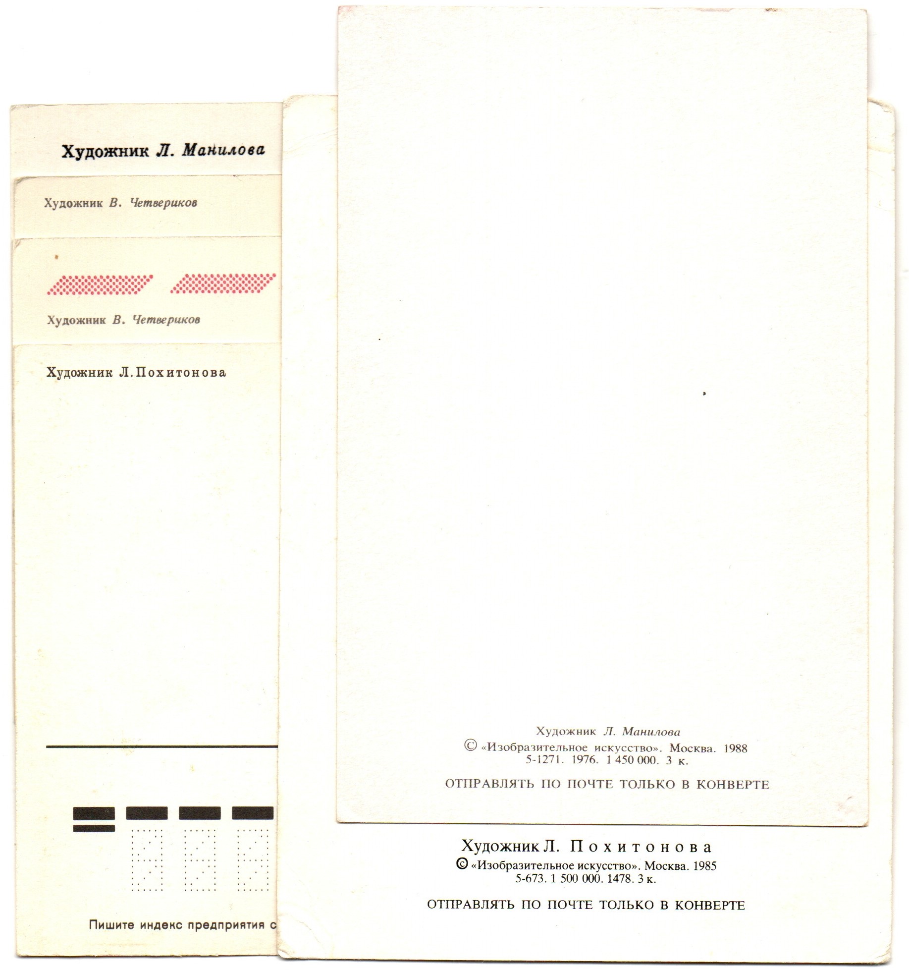 Оригинальная подборка раритетных Новогодних поздравительных открыток — 6 штук — разные художники Похитонова, Четвериков, Манилова — чистые, без повторов, времён СССР 1960-1990 гг. Каждая открытка эксклюзивна и создана талантливыми художниками Советского Союза. Старинные открытки имеют неповторимый стиль СССР и набирают все больше и больше популярности среди коллекционеров. Советские открытки С Новым годом отлично подойдут в личную коллекцию и на подарок коллекционерам открыток. Состояние и комплектация на фото.