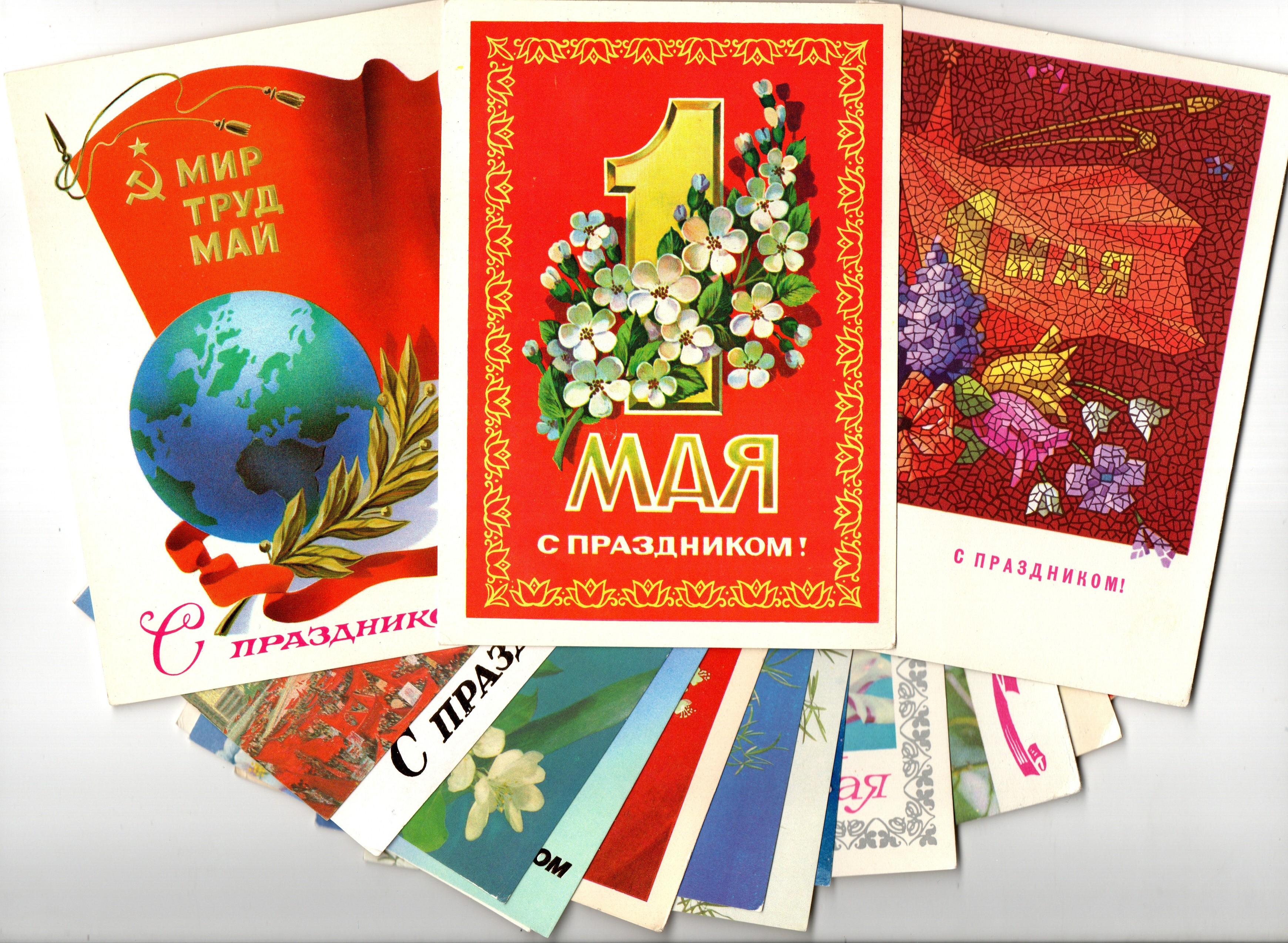 Подборка поздравительных открыток - 1 мая - Советская агитация - 15 штук — разные — чистые, без повторов - СССР