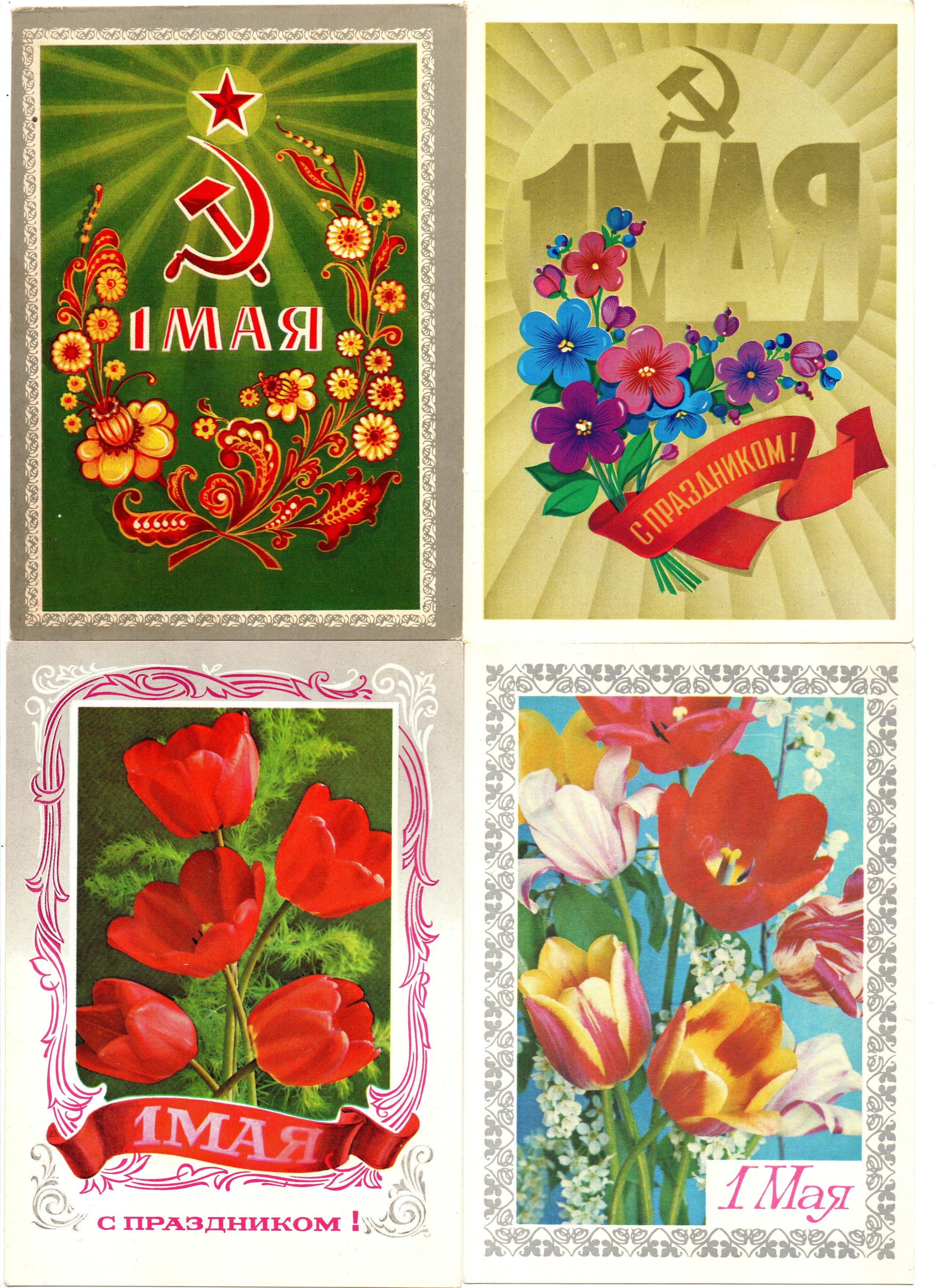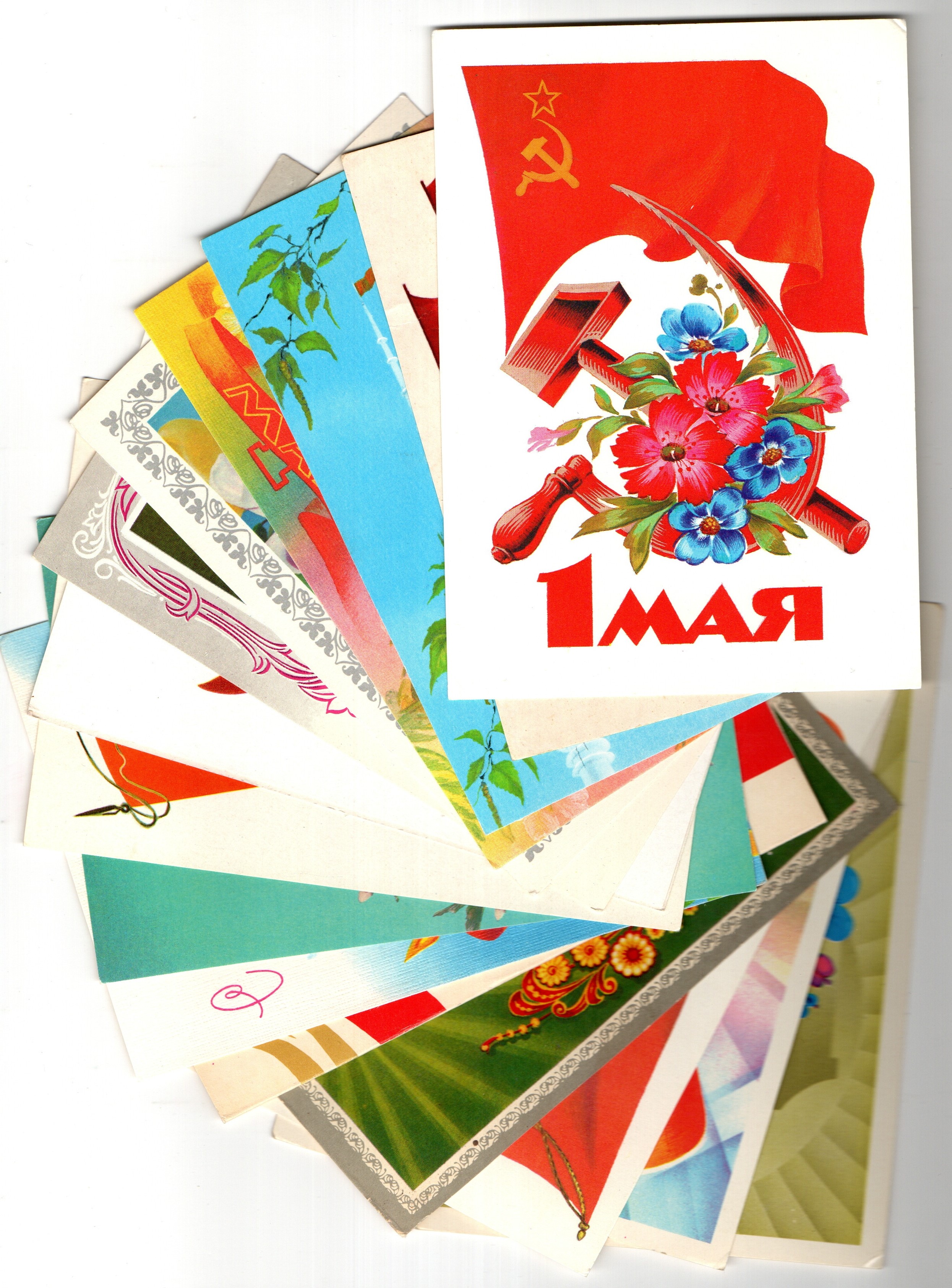 Подборка поздравительных открыток - 1 мая - Советская агитация - 15 штук — разные — чистые, без повторов - СССР