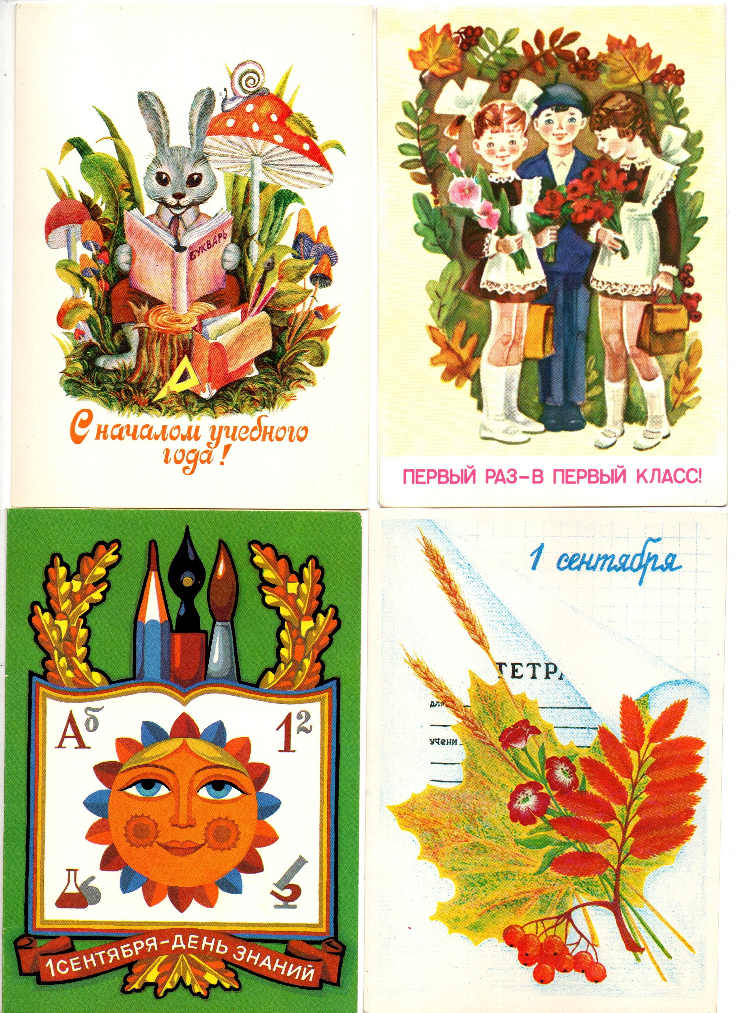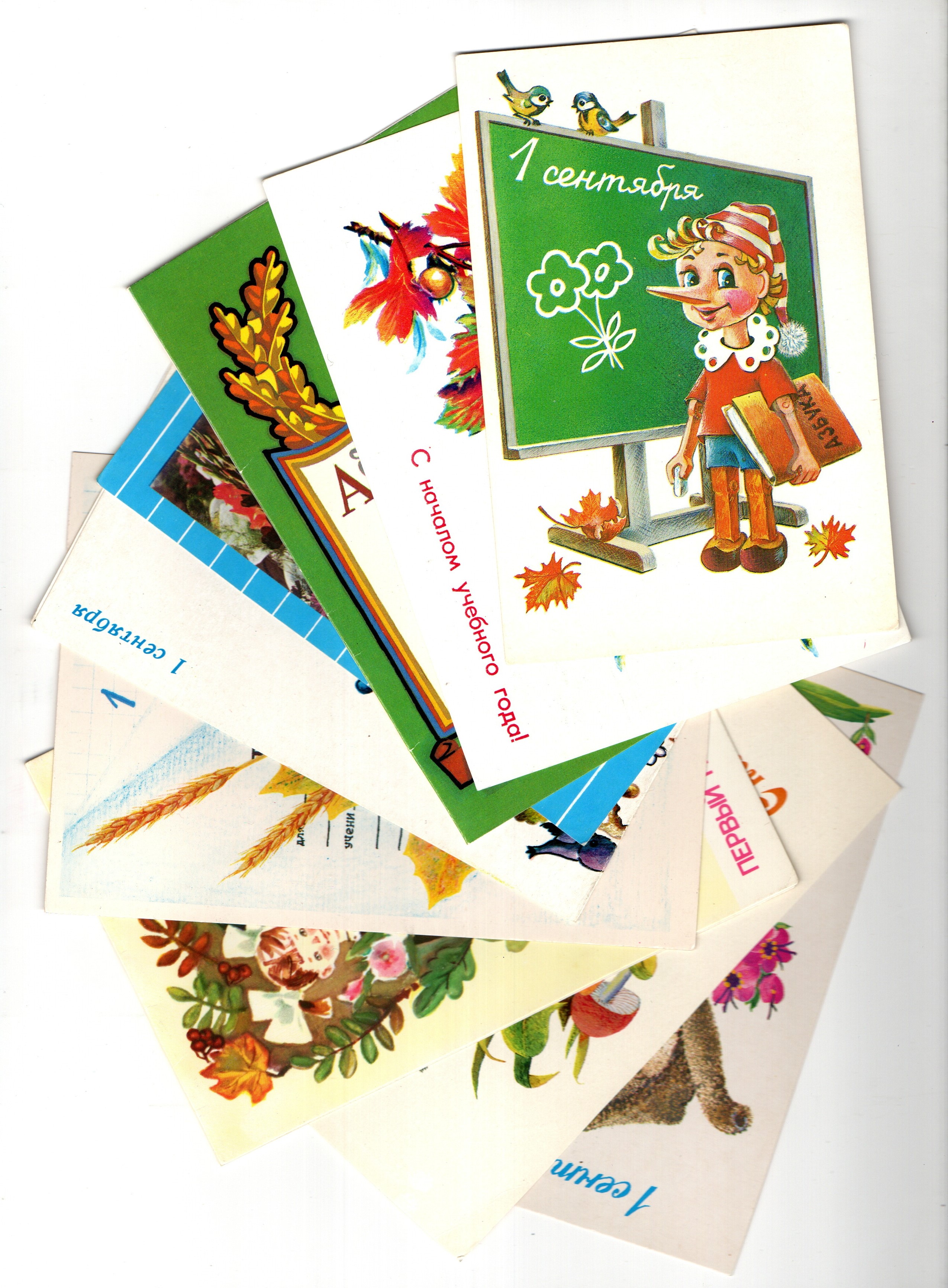 Подборка поздравительных открыток - 1 сентября - День знаний - 9 штук — разные художники — чистые, без повторов - СССР