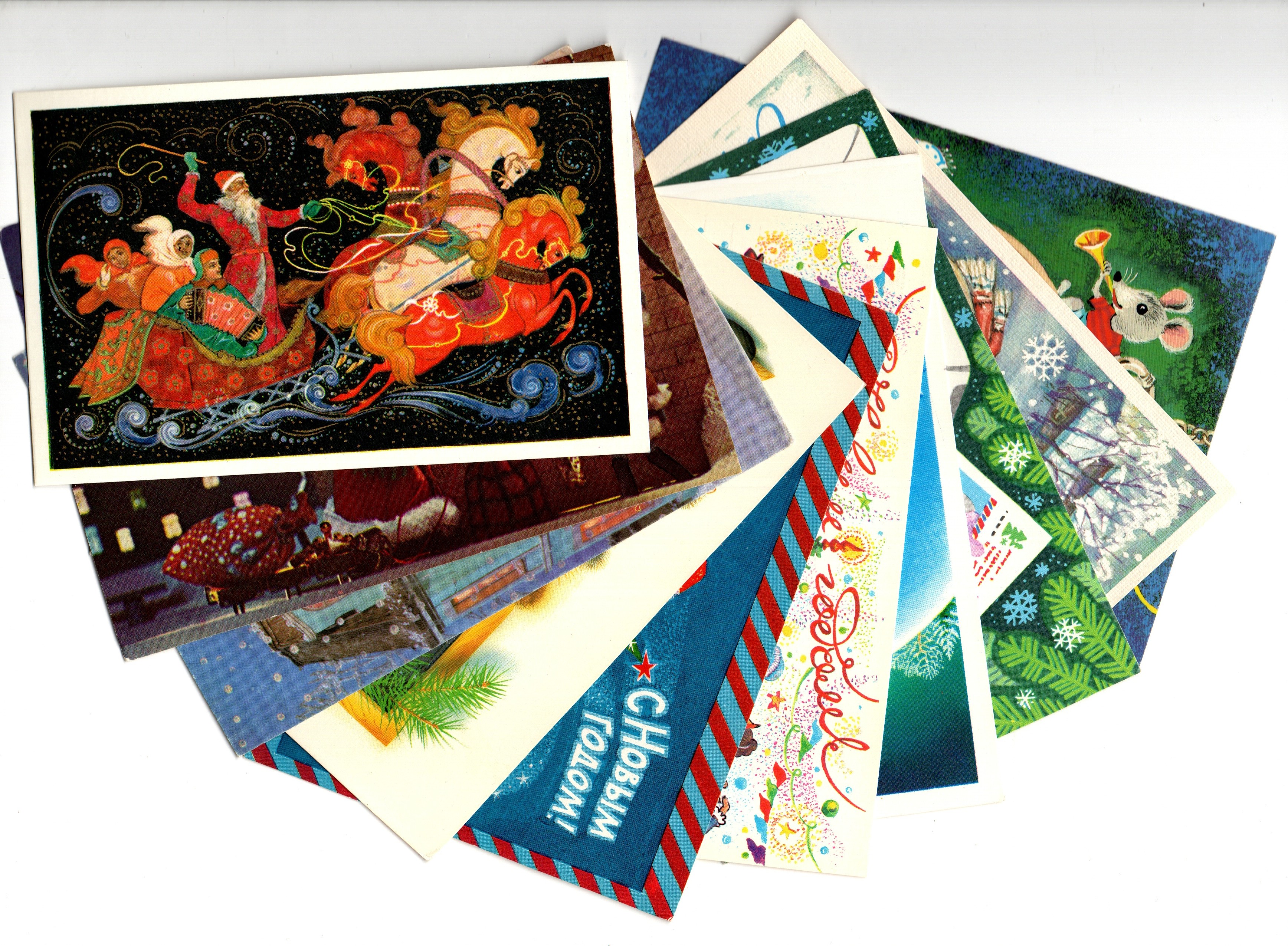 Оригинальная подборка раритетных Новогодних поздравительных открыток — 10 штук — разные художники : Похитонова, Андрианов, Достян, Комлев, Ларичкин, Шалито, Поклада, Ренков, Куприянов, Любезнов— чистые, без повторов, времён СССР. Каждая открытка эксклюзивна и создана талантливыми художниками Советского Союза. Старинные открытки имеют неповторимый стиль СССР и набирают все больше и больше популярности среди коллекционеров.
