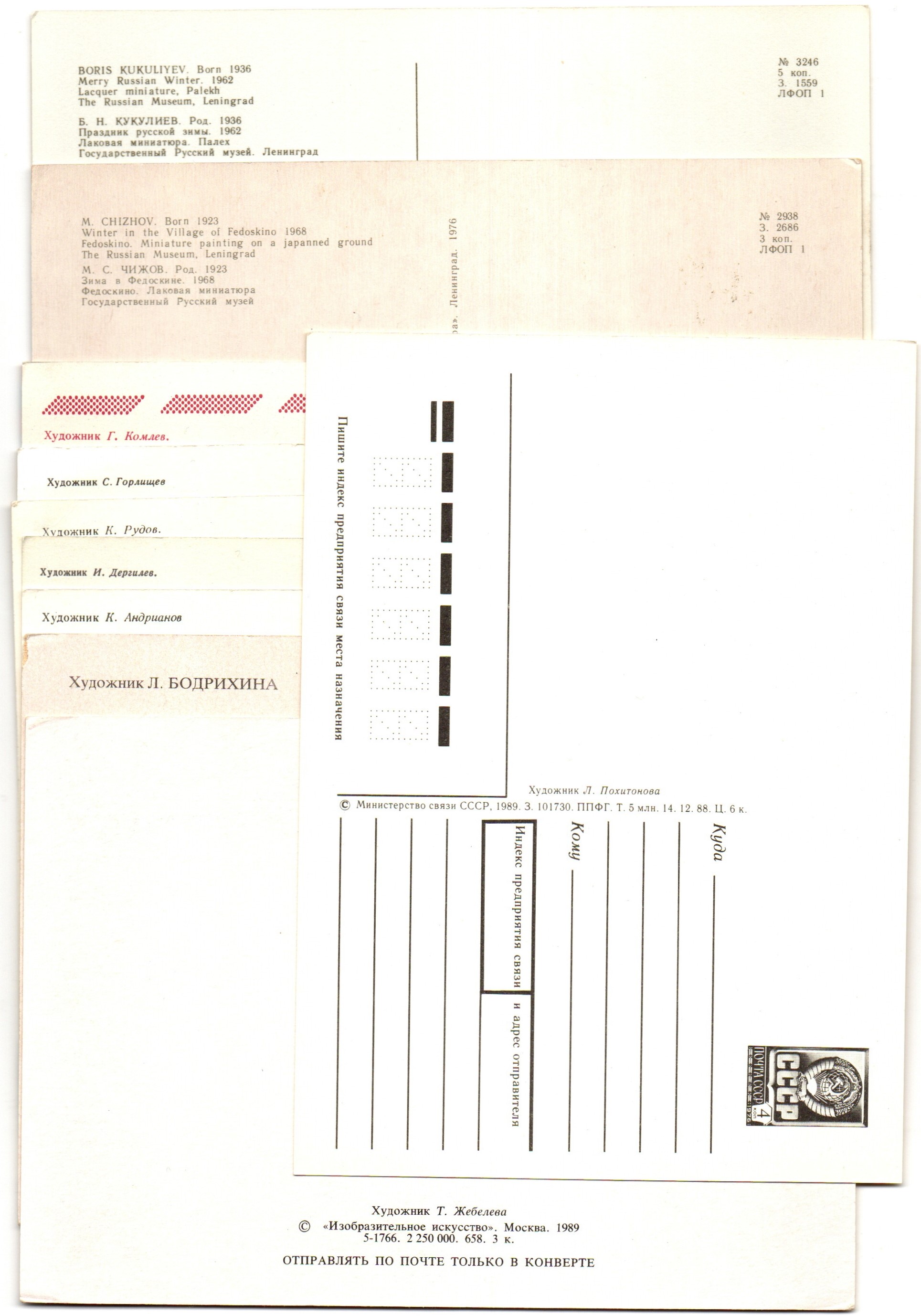 Оригинальная подборка раритетных Новогодних поздравительных открыток — 10 штук — разные художники : Похитонова, Чижов, Кукулиев, Андрианов (палех), Жебелева, Горлищев, Комлев, Дергилев, Бодрихина, Рудов— чистые, без повторов, времён СССР. Каждая открытка эксклюзивна и создана талантливыми художниками Советского Союза. Старинные открытки имеют неповторимый стиль СССР и набирают все больше и больше популярности среди коллекционеров.