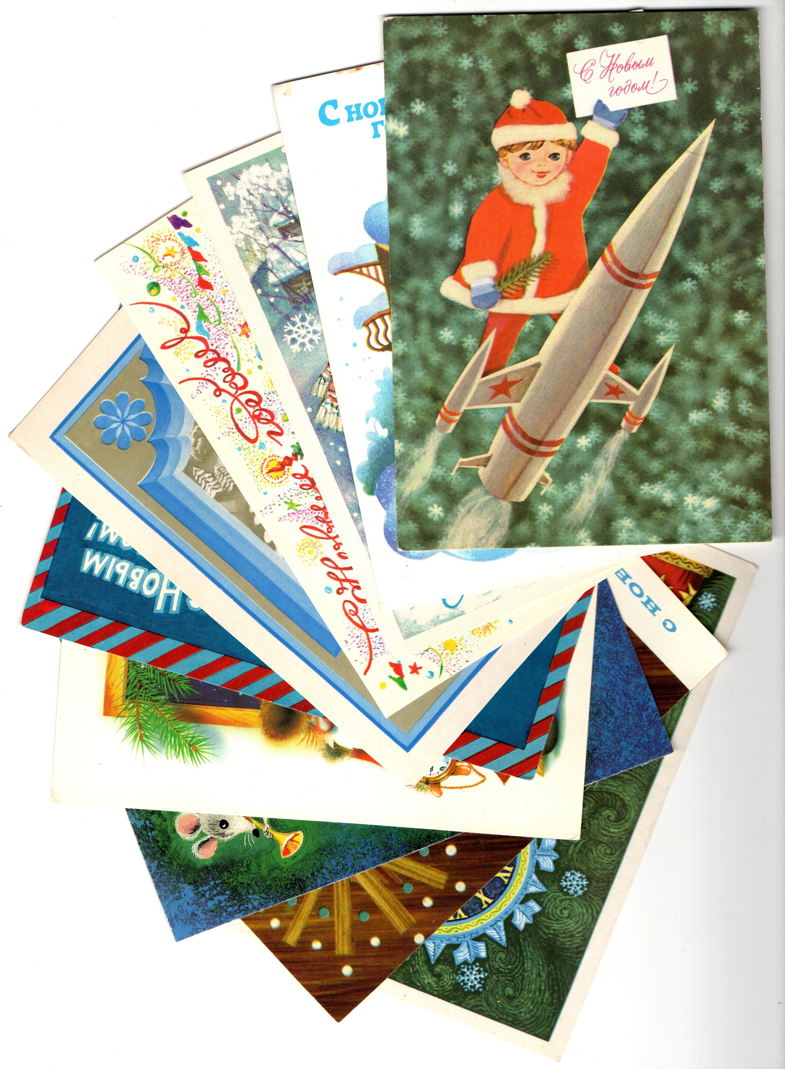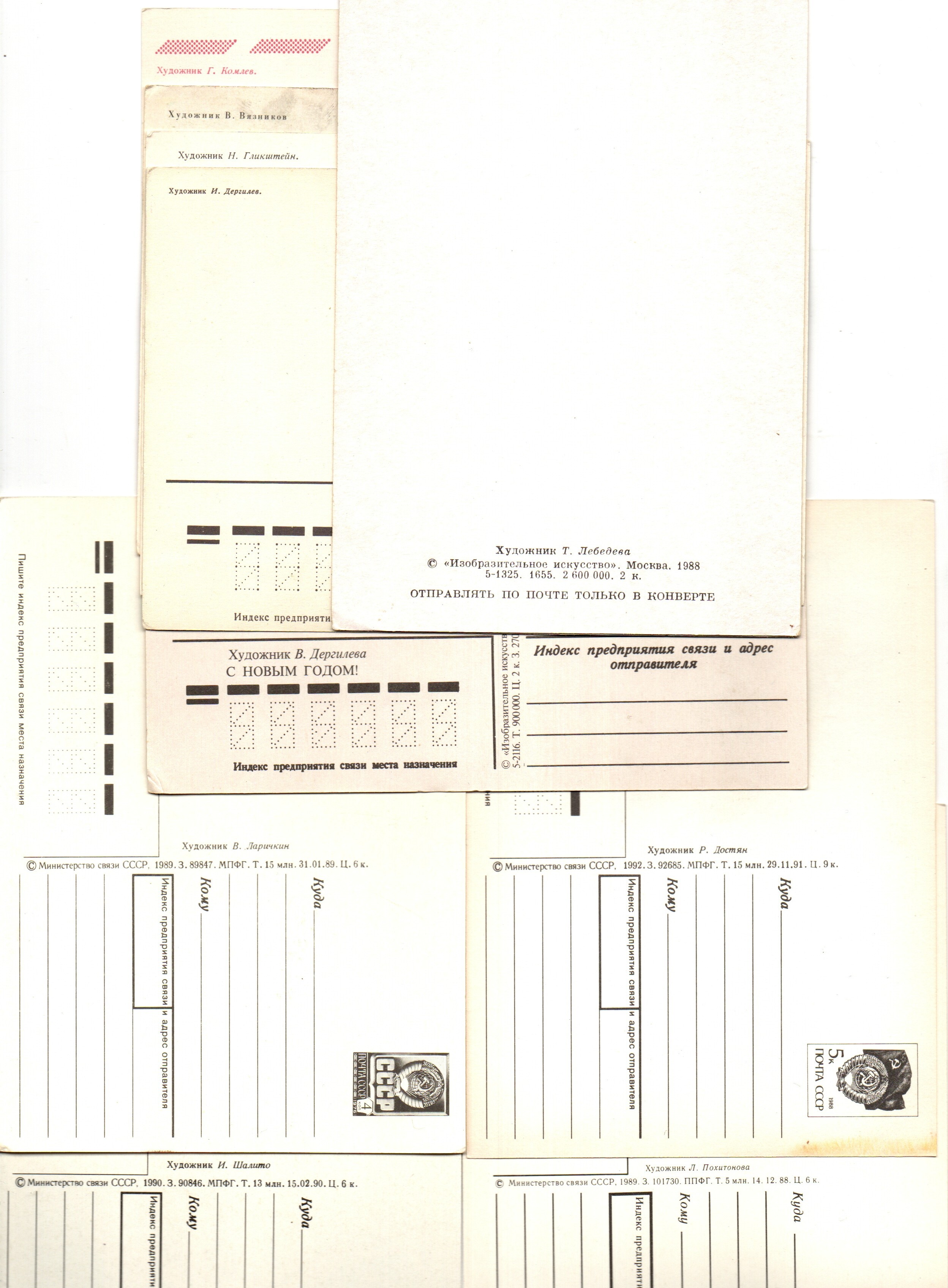 Оригинальная подборка раритетных Новогодних поздравительных открыток — 10 штук — разные художники : Похитонова, Гликштейн, Достян, Лебедева, Вязников, Шалито, Дергилев, Дергилева, Ларичкин, Комлев— чистые, без повторов, времён СССР. Каждая открытка эксклюзивна и создана талантливыми художниками Советского Союза. Старинные открытки имеют неповторимый стиль СССР и набирают все больше и больше популярности среди коллекционеров.