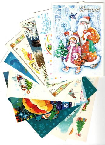 Оригинальная подборка раритетных Новогодних поздравительных открыток — 10 штук —  разные художники — чистые, без повторов, времён СССР. Каждая открытка эксклюзивна и создана талантливыми художниками Советского Союза. Старинные открытки имеют неповторимый стиль СССР и набирают все больше и больше популярности среди коллекционеров.