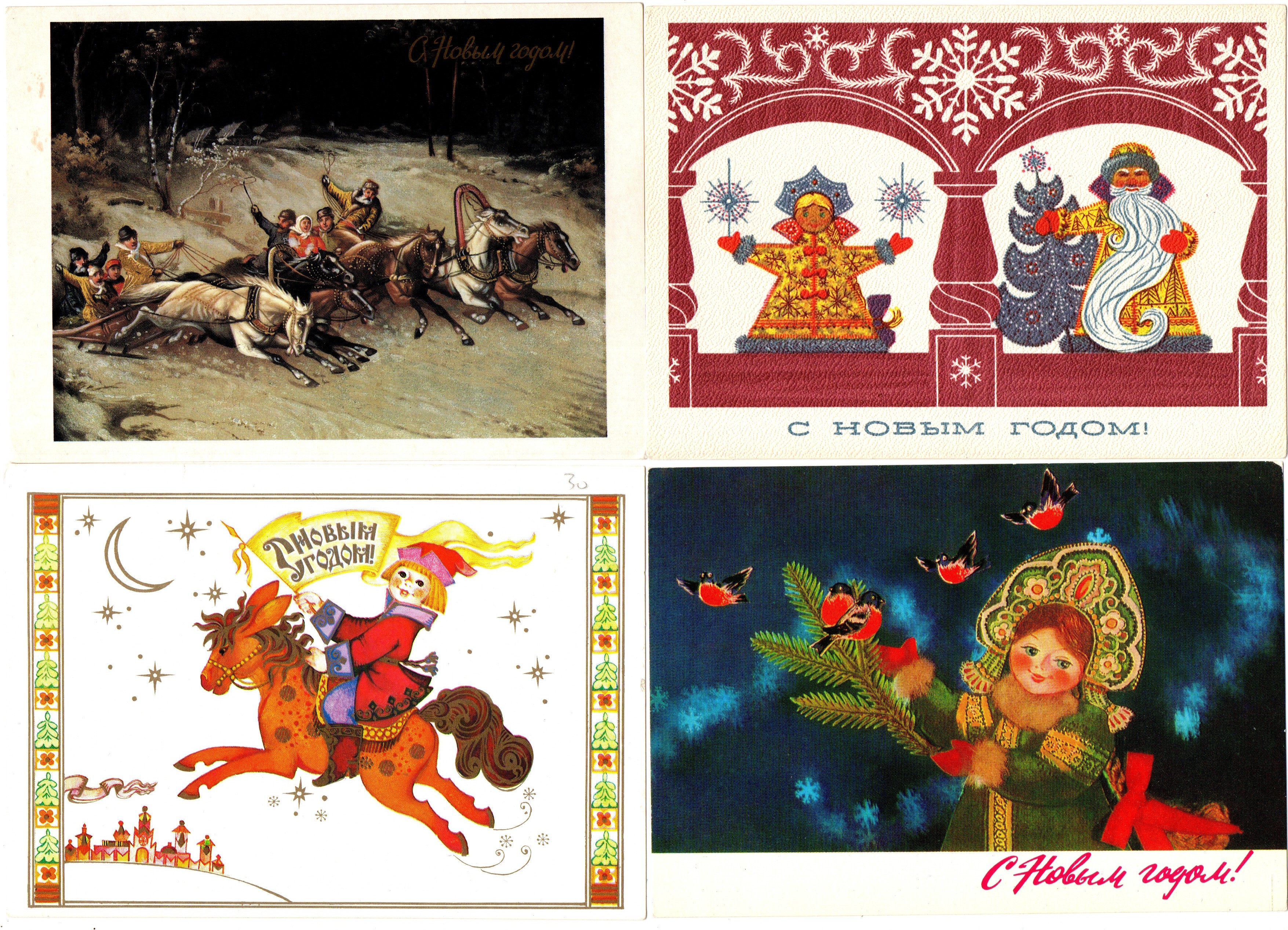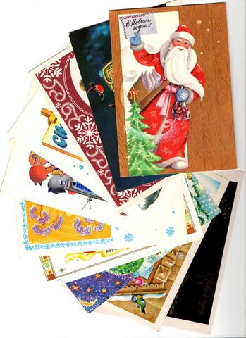 Подборка поздравительных Новогодних открыток — 10 штук— разные художники —чистые, без повторов, времен СССР