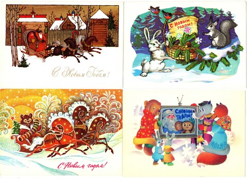 Советские открытки С Новым годом отлично подойдут в личную коллекцию и на подарок коллекционерам открыток.