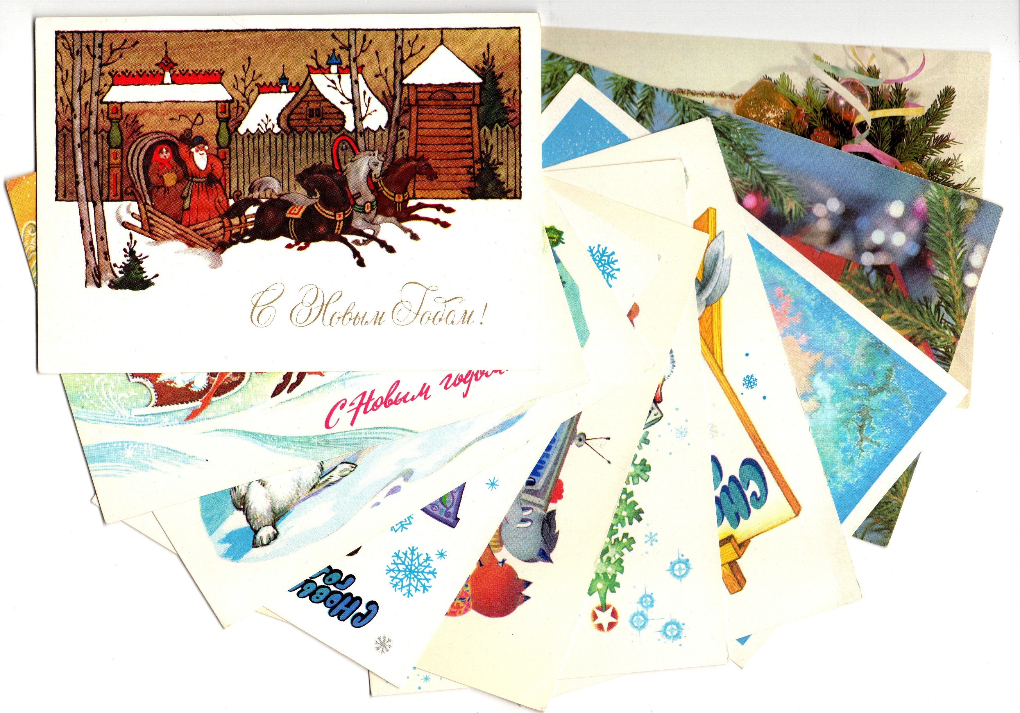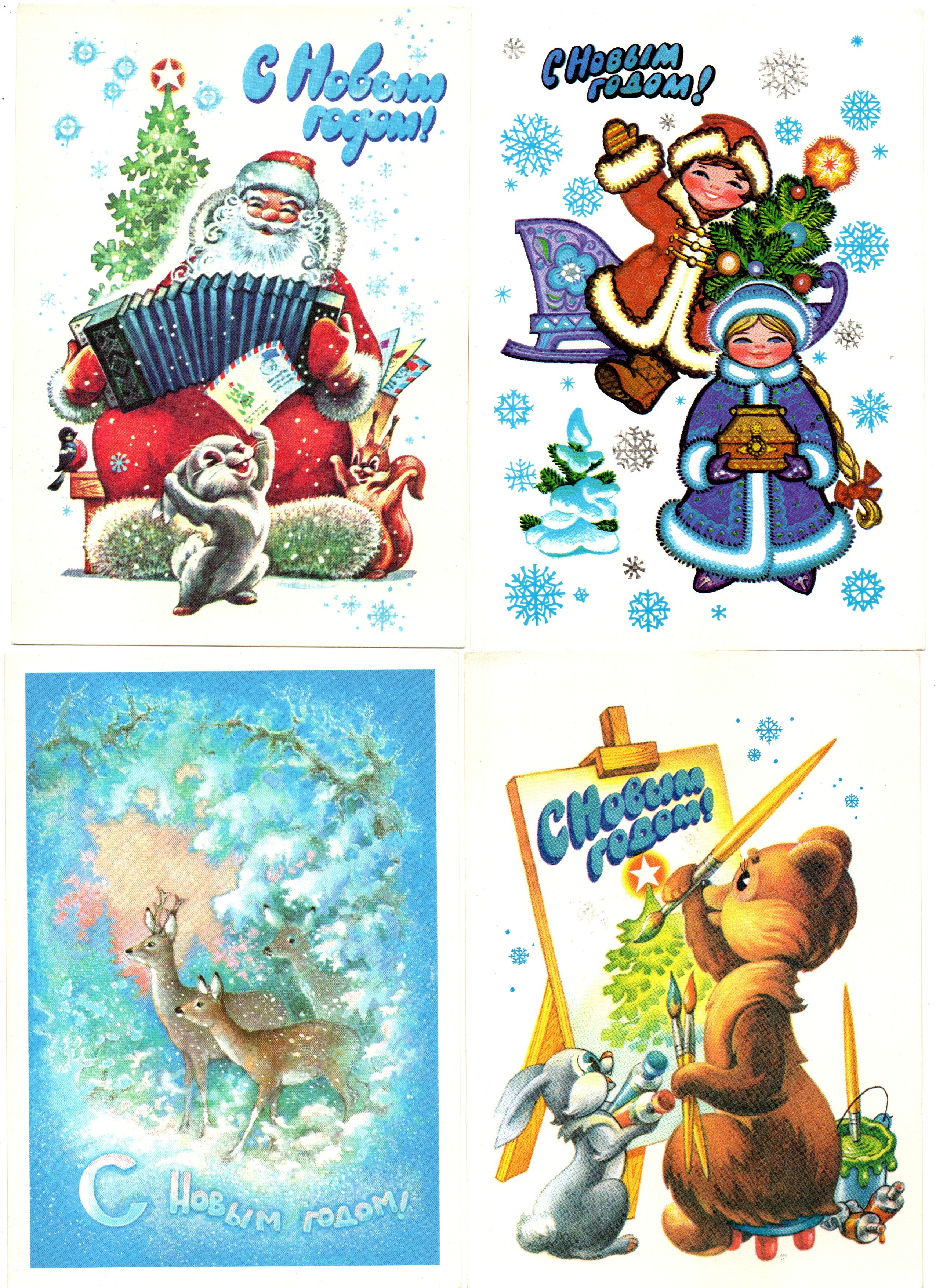 Подборка поздравительных Новогодних открыток — 10 штук — разные художники —чистые, без повторов, винтаж времен СССР