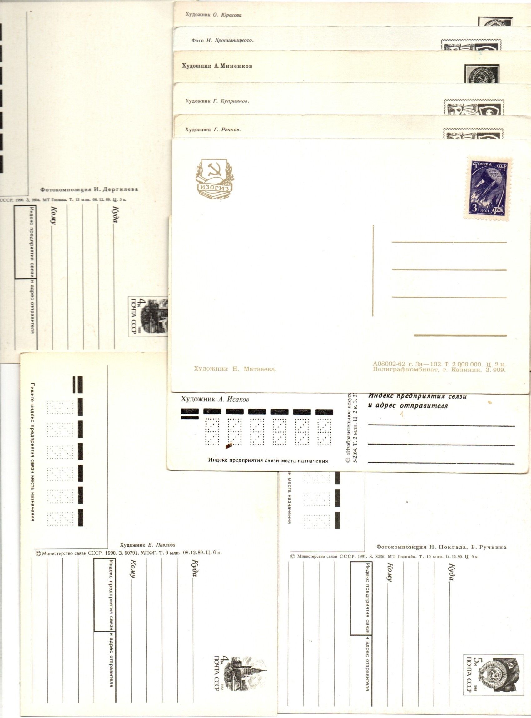 Подборка поздравительных открыток — 10 штук— разные художники — чистые, без повторов