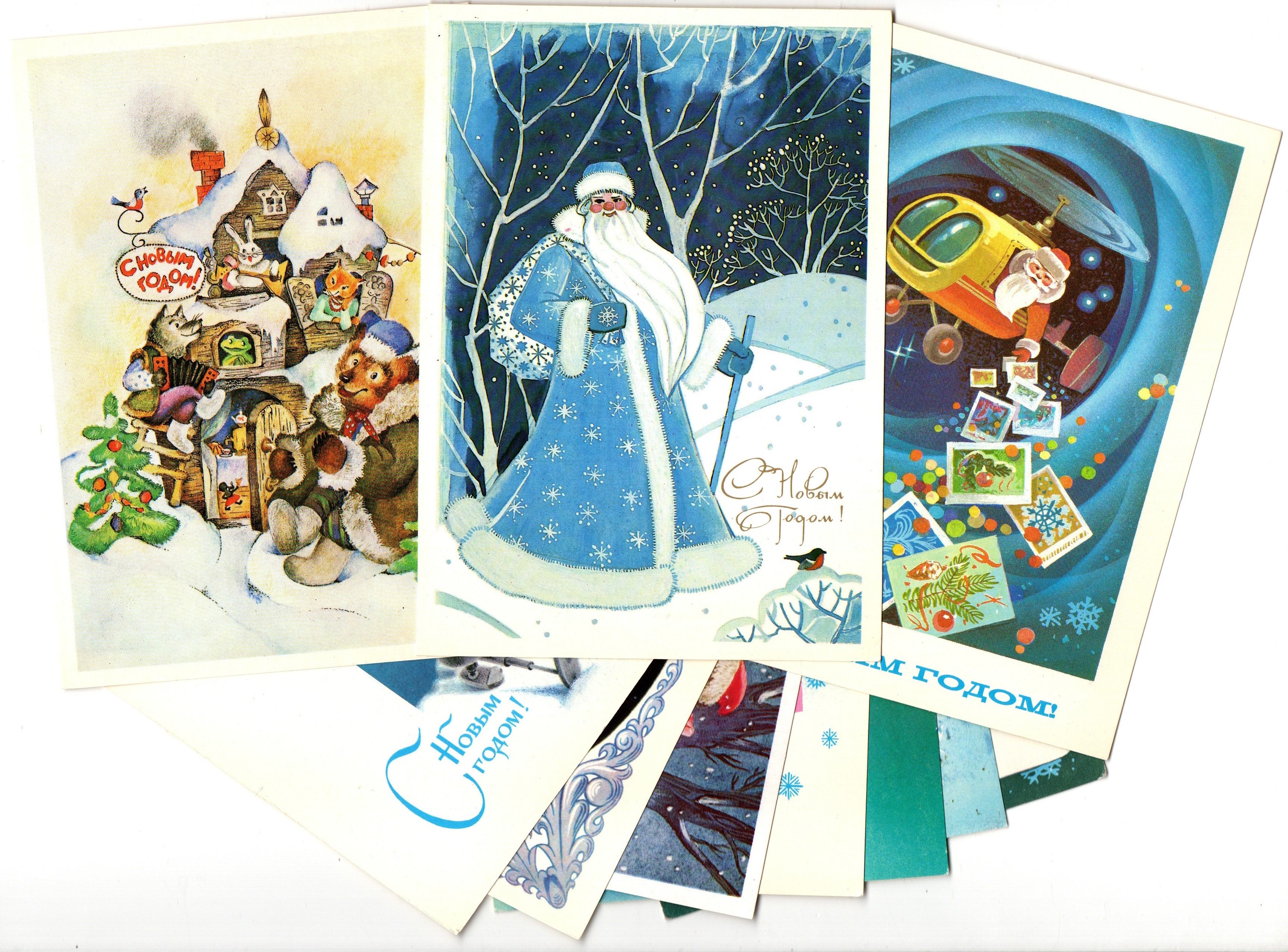 Оригинальная подборка раритетных Новогодних поздравительных открыток — 10 штук — разные художники — чистые, без повторов, времён СССР. Каждая открытка эксклюзивна и создана талантливыми художниками Советского Союза. Старинные открытки имеют неповторимый стиль СССР и набирают все больше и больше популярности среди коллекционеров.
