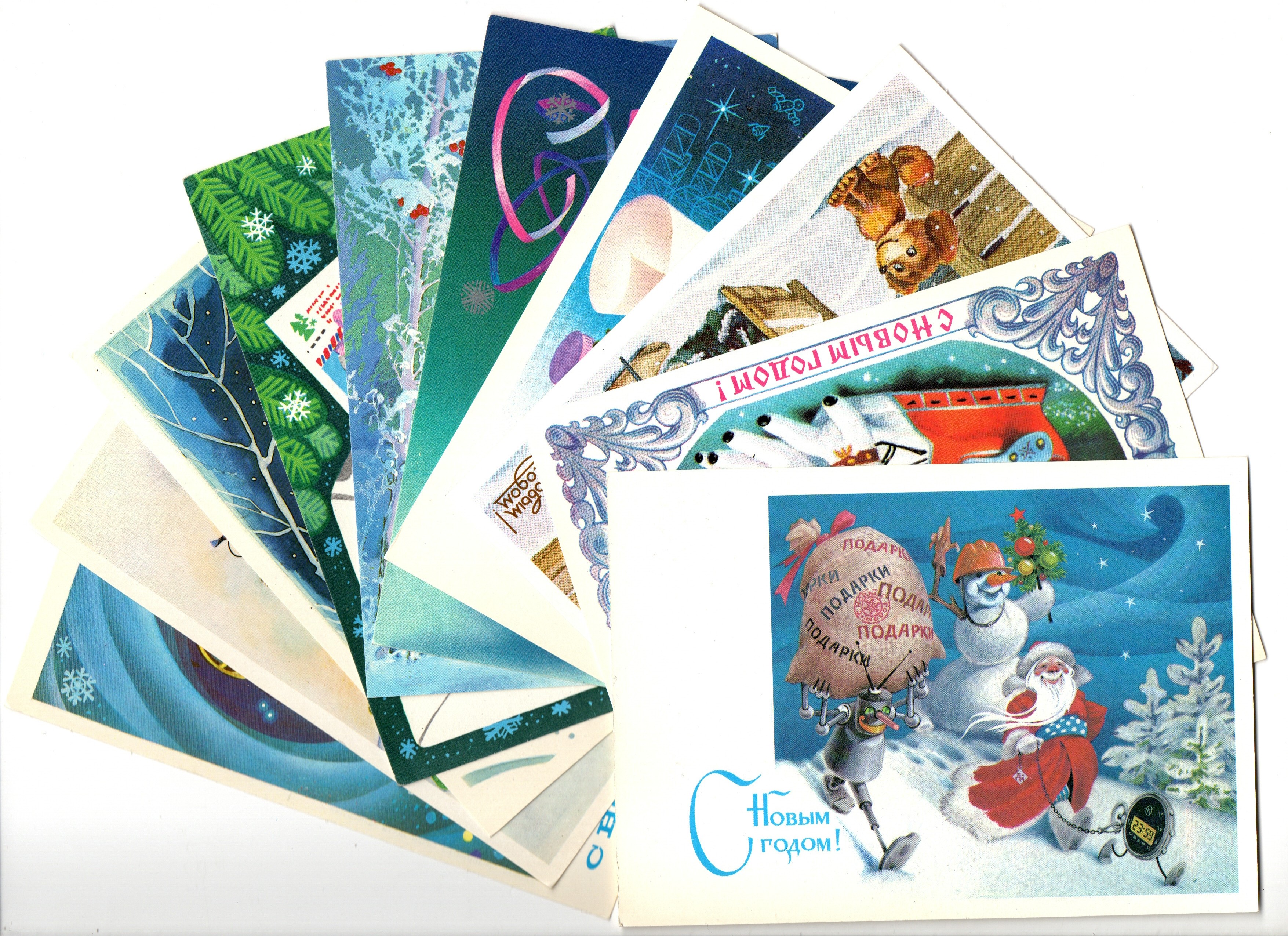 Подборка поздравительных Новогодних открыток — 10 штук— разные художники —чистые, без повторов, винтаж времен СССР