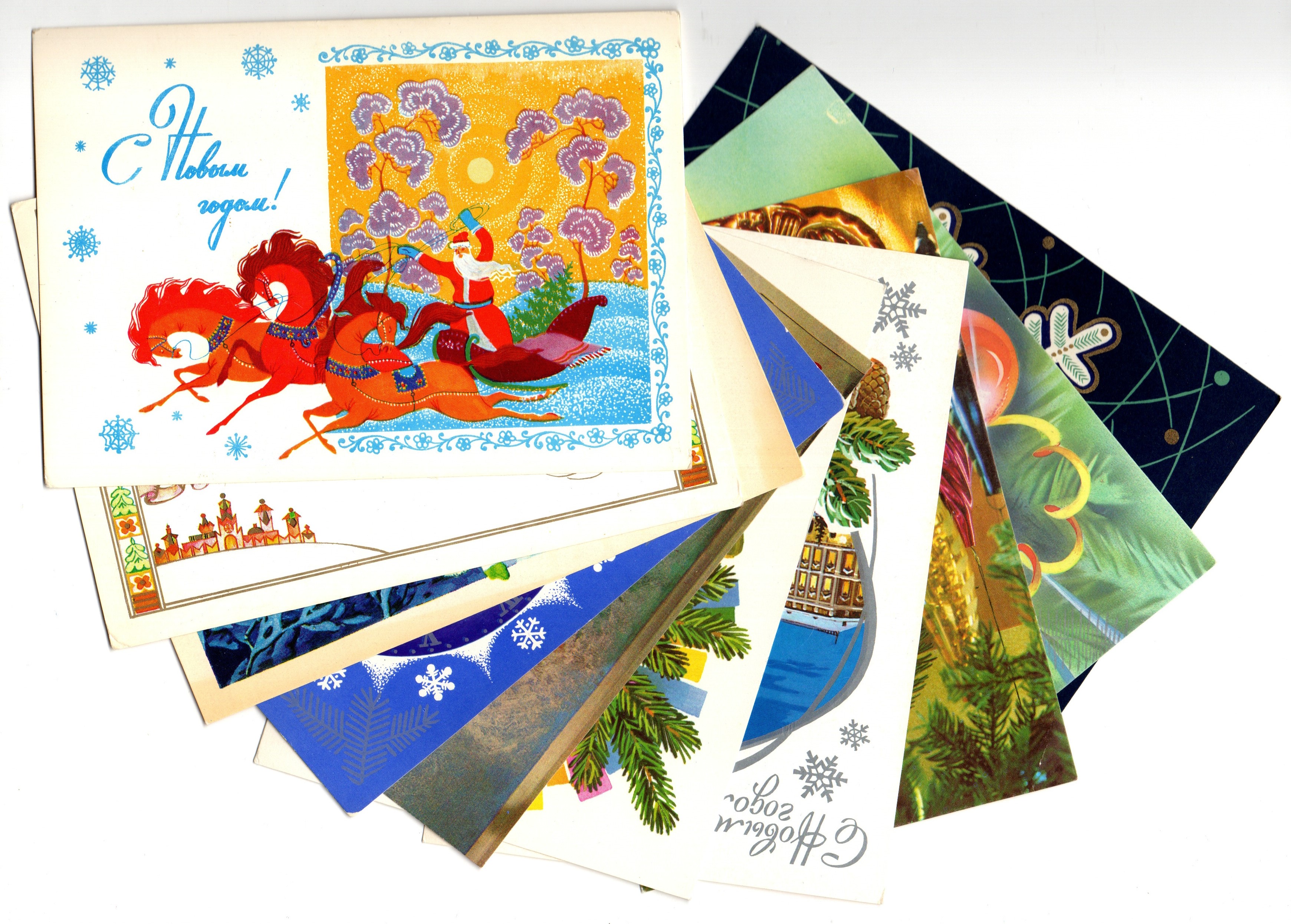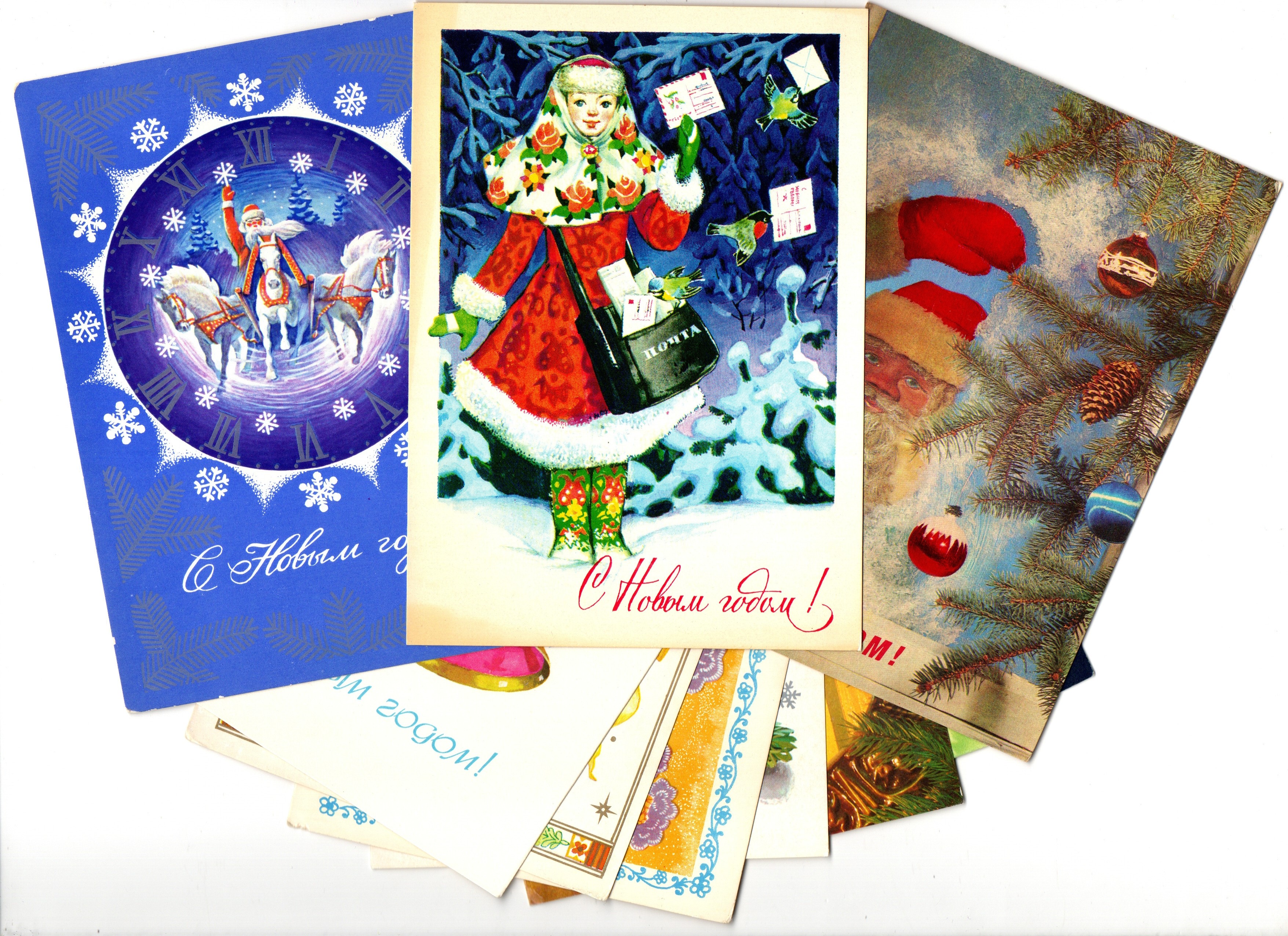 Оригинальная подборка раритетных Новогодних поздравительных открыток — 10 штук —  разные художники — чистые, без повторов, времён СССР. Каждая открытка эксклюзивна и создана талантливыми художниками Советского Союза. Старинные открытки имеют неповторимый стиль СССР и набирают все больше и больше популярности среди коллекционеров.