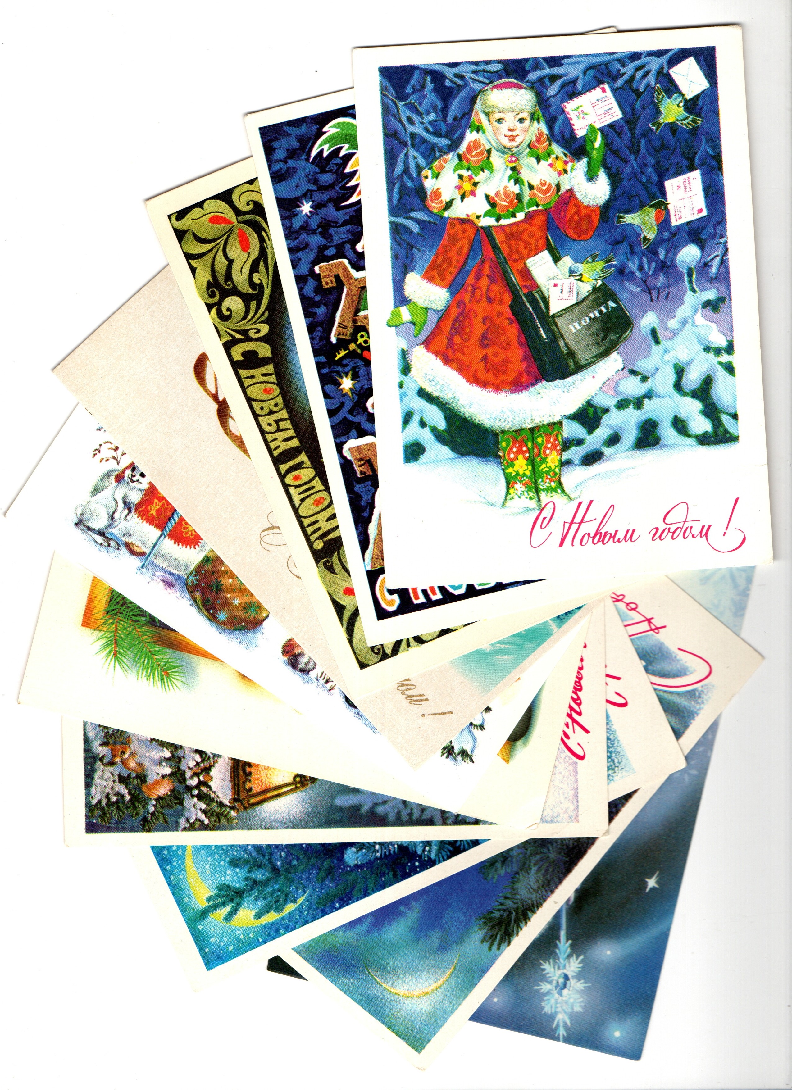Оригинальная подборка раритетных Новогодних поздравительных открыток — 10 штук — разные художники — чистые, без повторов, времён СССР. Каждая открытка эксклюзивна и создана талантливыми художниками Советского Союза. Старинные открытки имеют неповторимый стиль СССР и набирают все больше и больше популярности среди коллекционеров.
