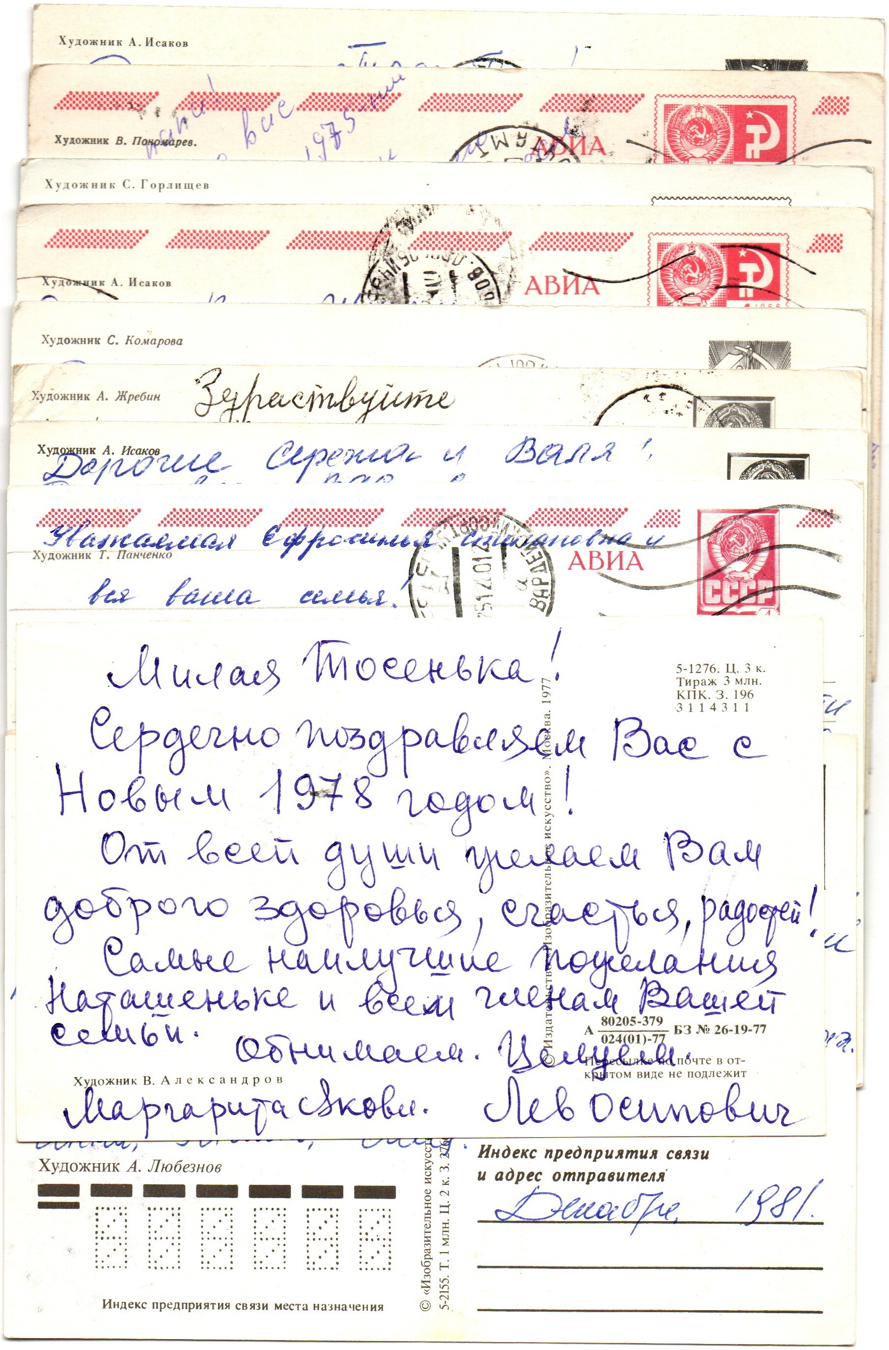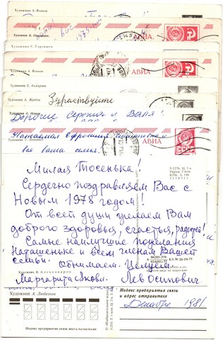 Оригинальная подборка раритетных Новогодних поздравительных открыток — 10 штук — разные художники— подписаны, без повторов, времён СССР. Каждая открытка эксклюзивна и создана талантливыми художниками Советского Союза. Старинные открытки имеют неповторимый стиль СССР и набирают все больше и больше популярности среди коллекционеров.