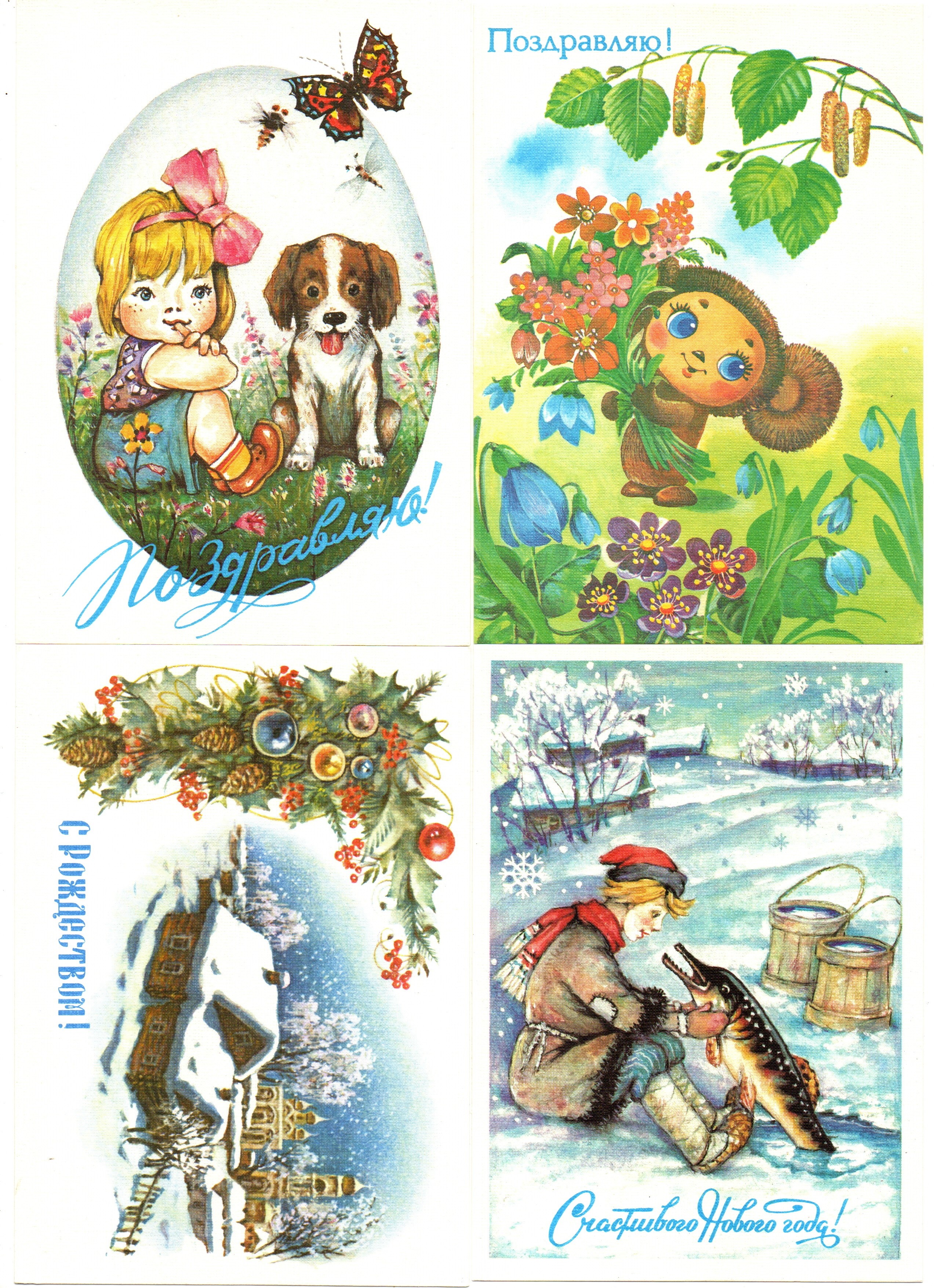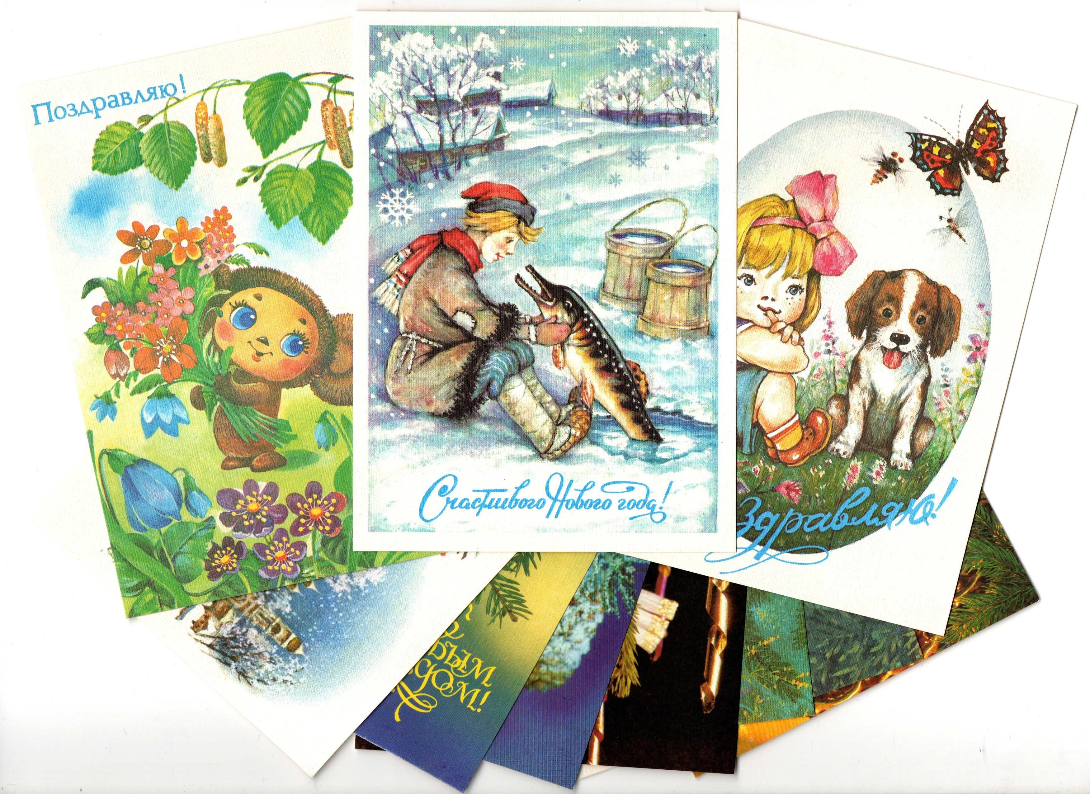 Подборка винтажных поздравительных открыток — 10 штук