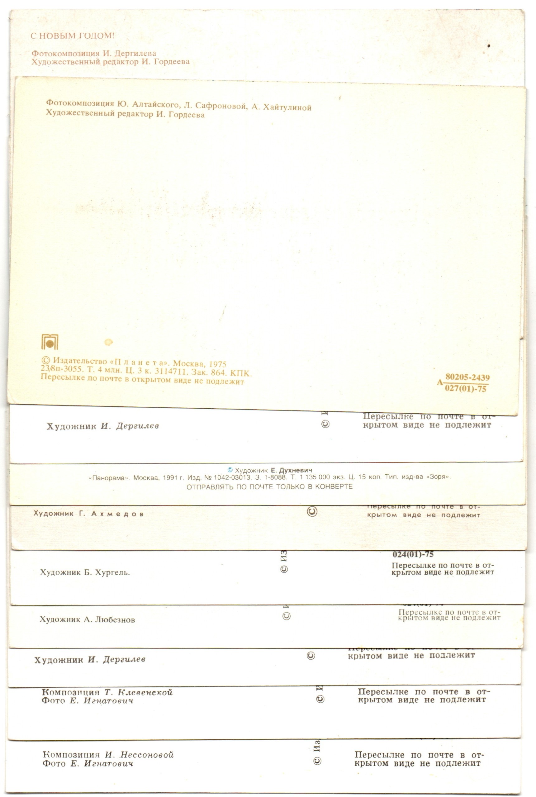 Подборка поздравительных Новогодних открыток — 10 штук— разные художники—чистые, без повторов, винтаж времен СССР