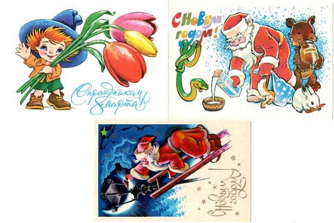 Подборка поздравительных открыток — 11 штук — художник Четвериков — чистые, без повторов