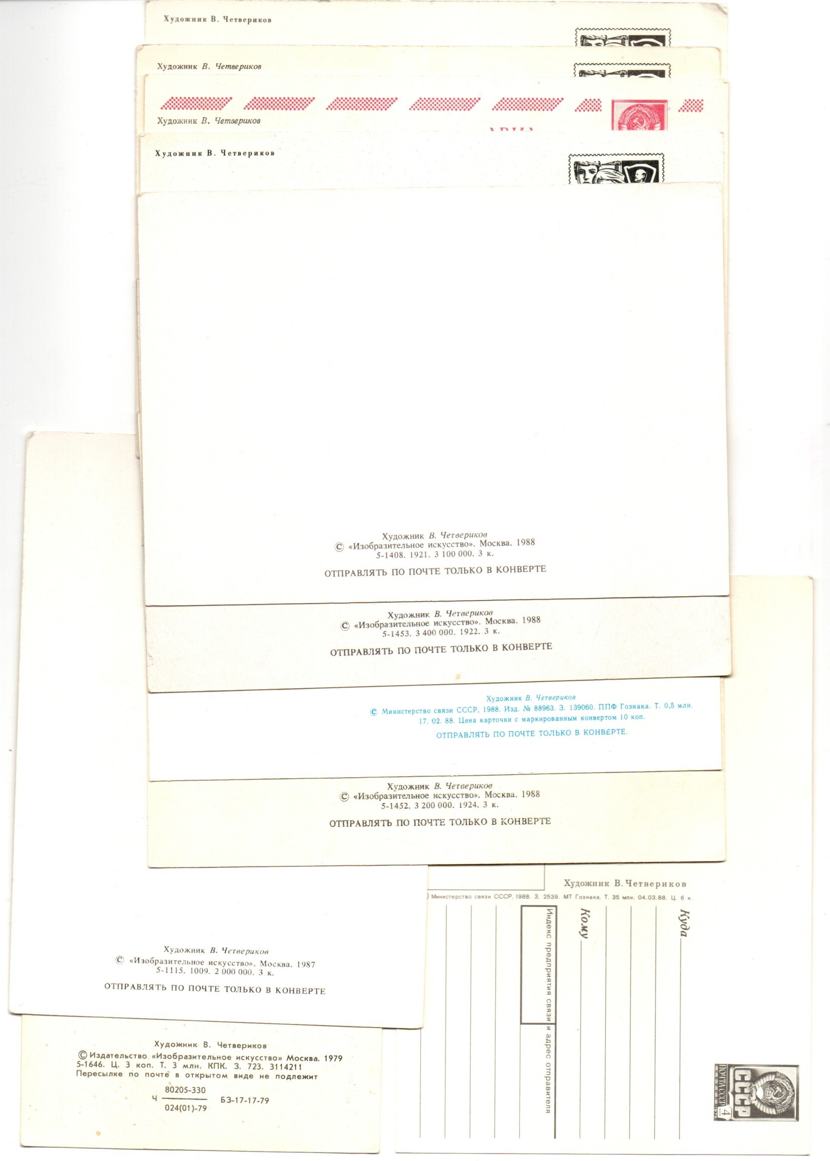 Подборка поздравительных открыток — 11 штук— художник Четвериков — чистые, без повторов